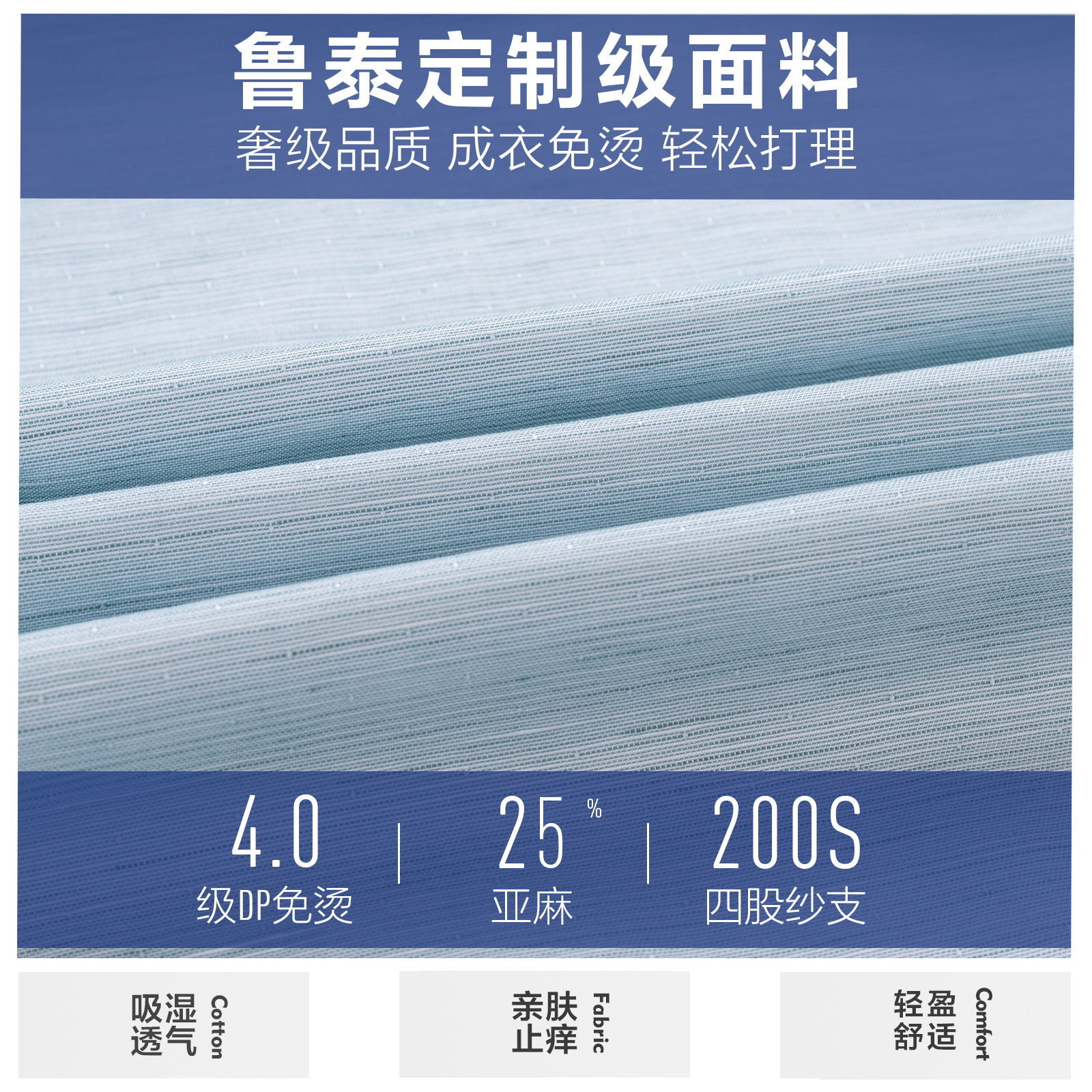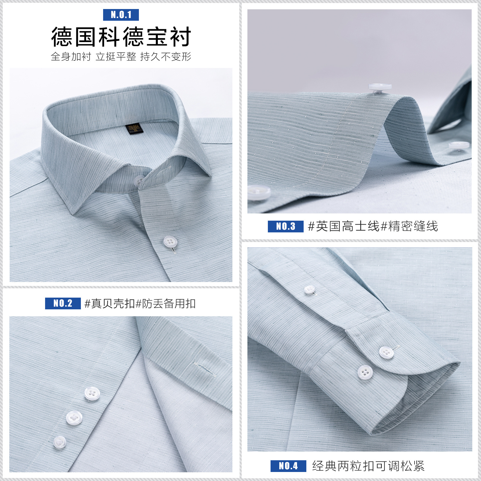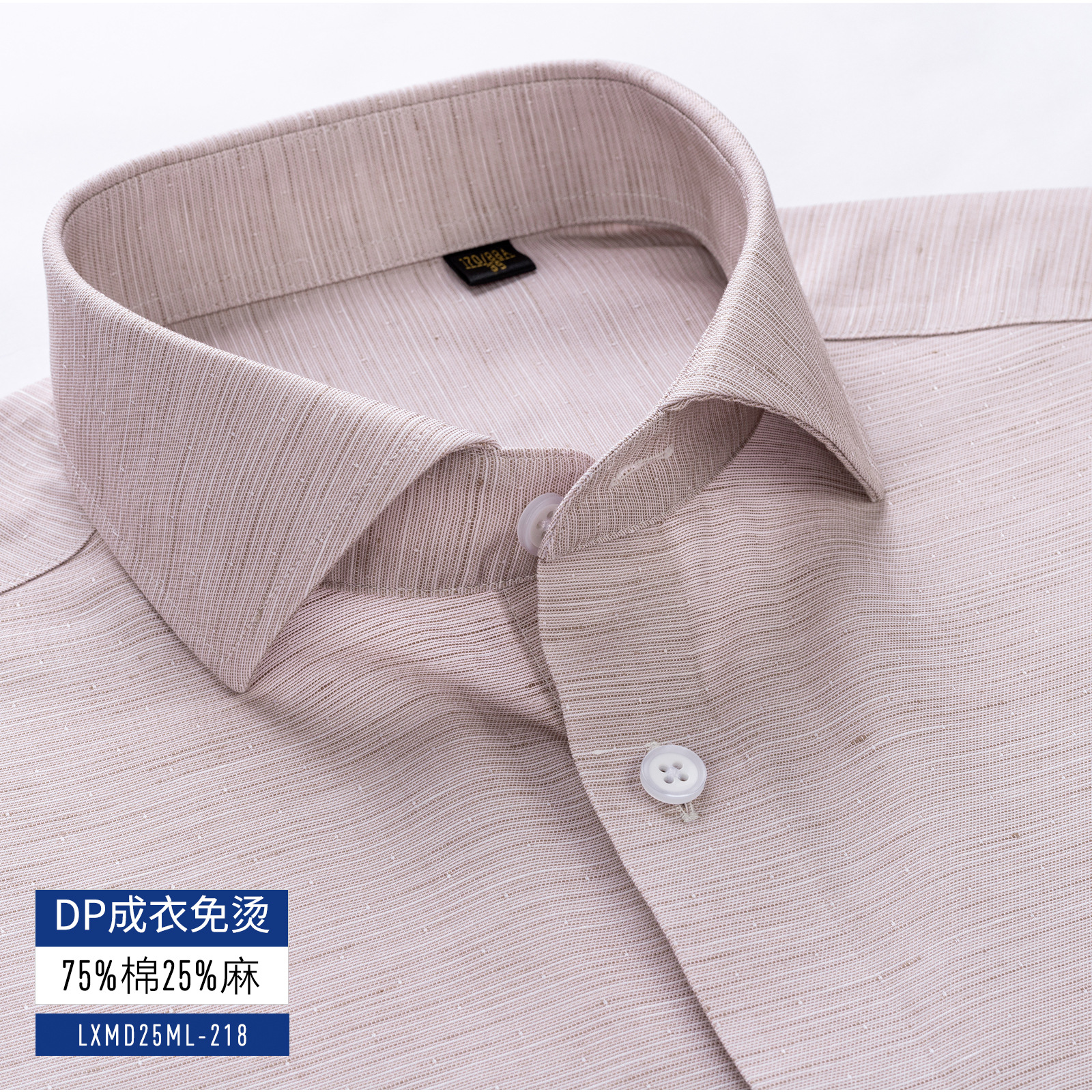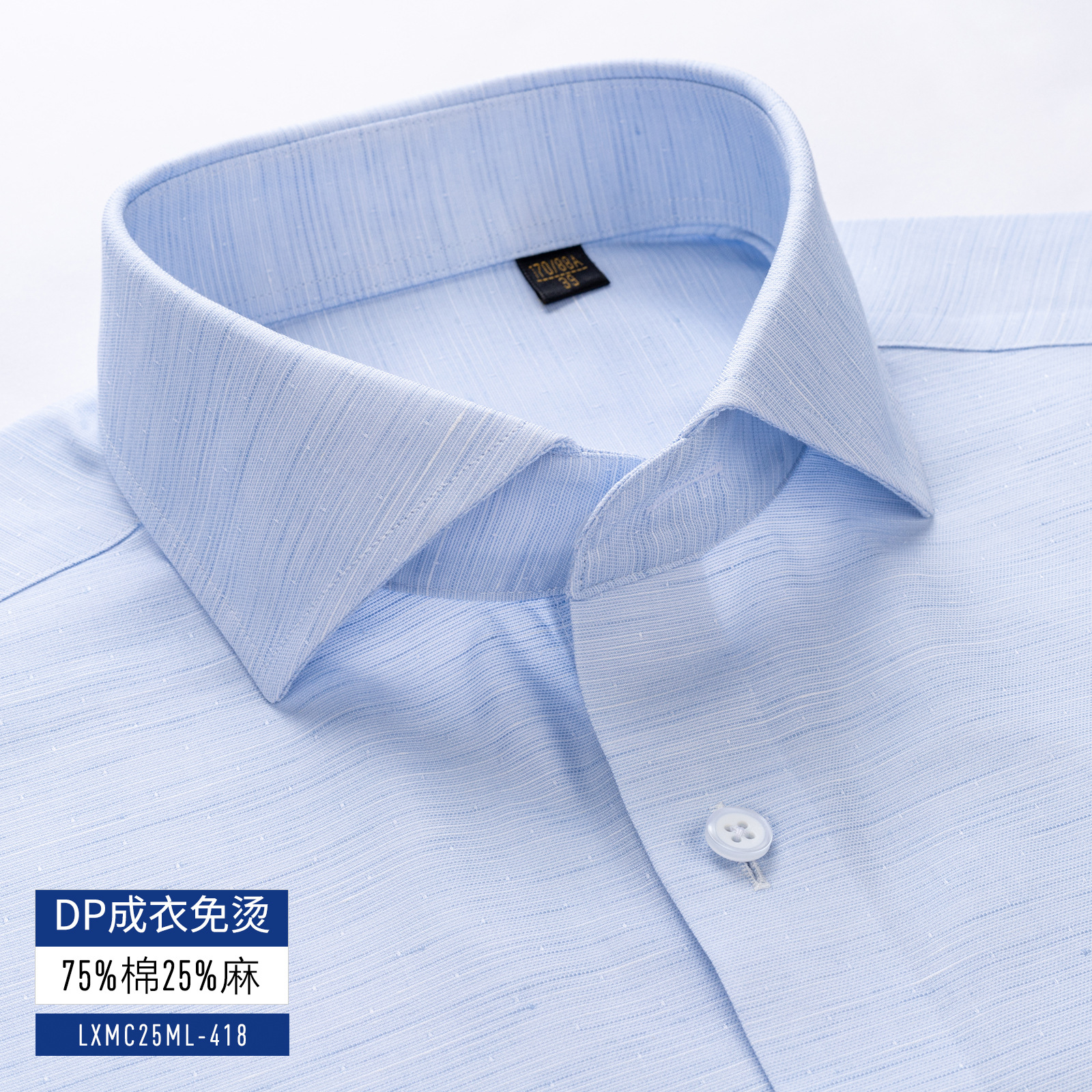 衬衫男士长袖休闲棉麻DP成衣免烫短袖衬衣男绿色200支4股亚麻抗皱