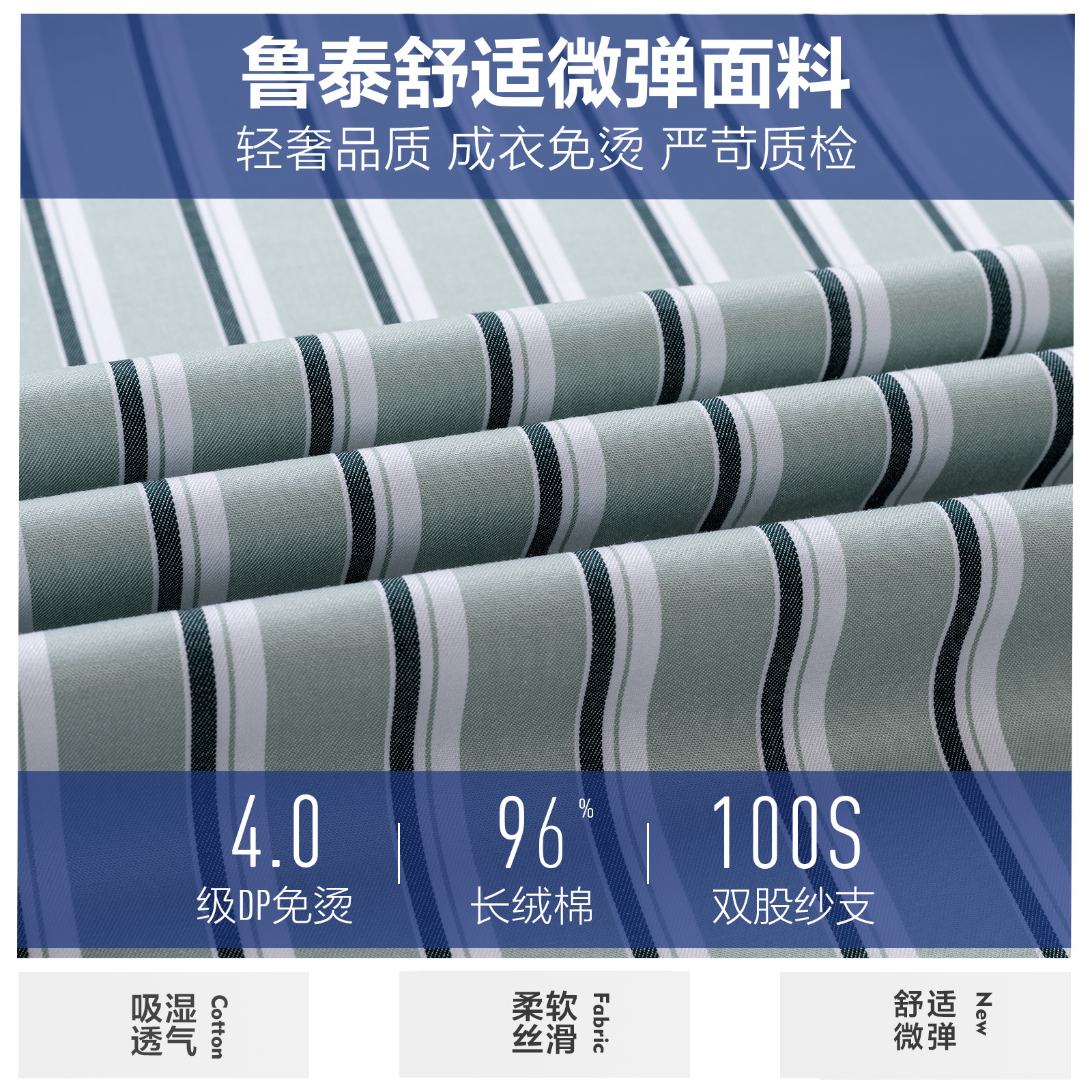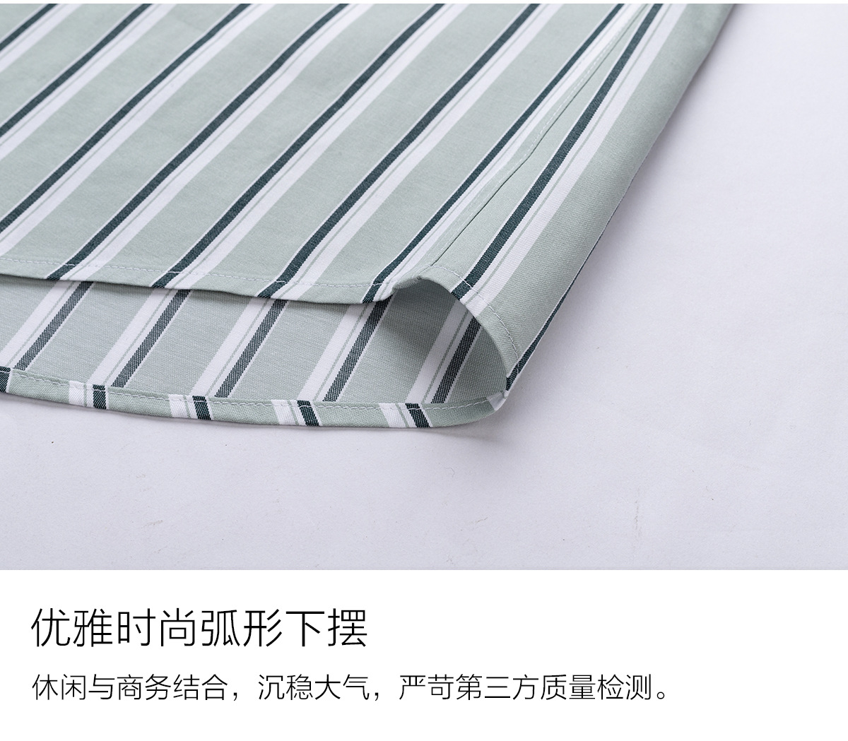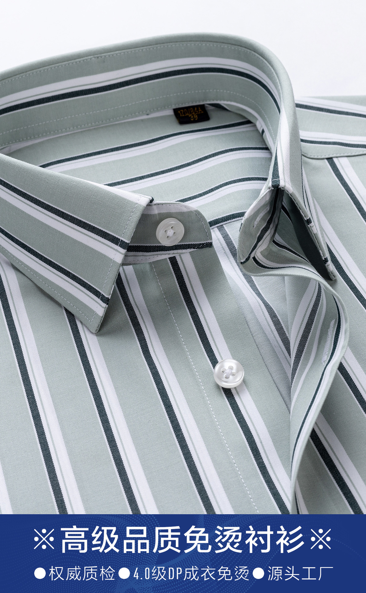 新款休闲男士衬衫长袖DP成衣免烫绿白粗条纹衬衣男式舒适弹力100S