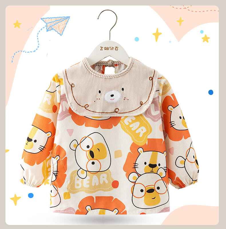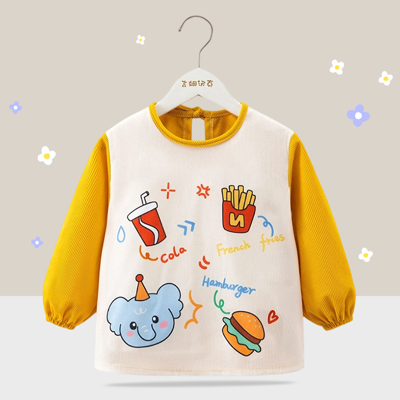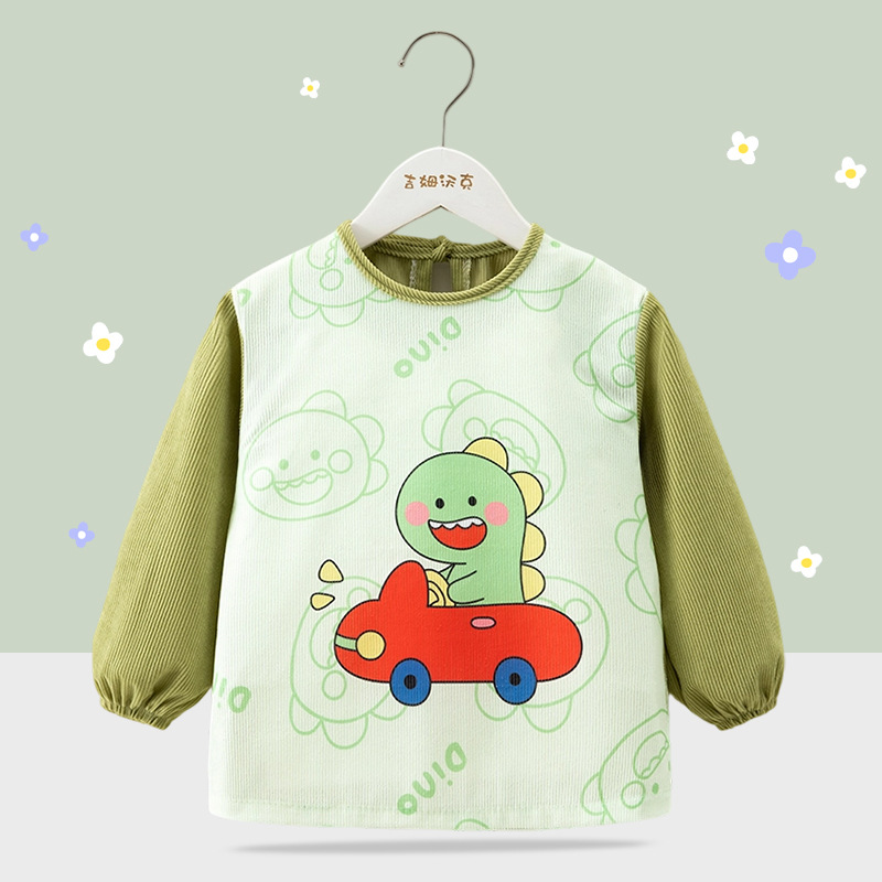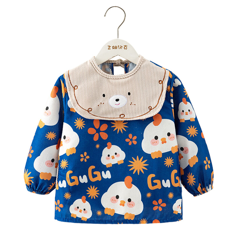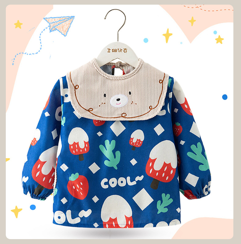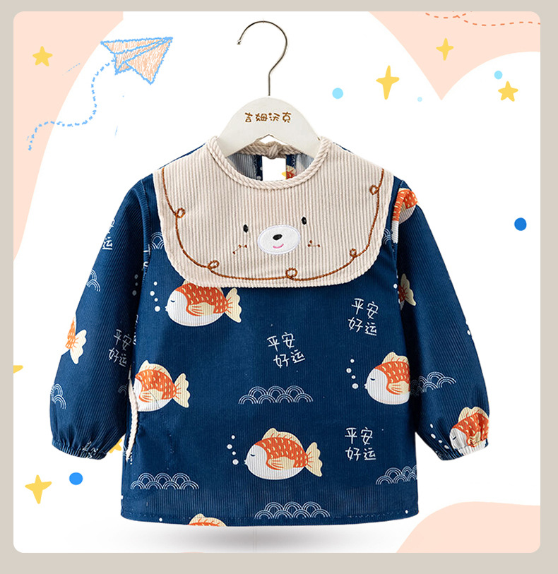 儿童罩衣秋冬季灯芯绒婴儿吃饭围兜罩衣宝宝防水防脏长袖反穿衣