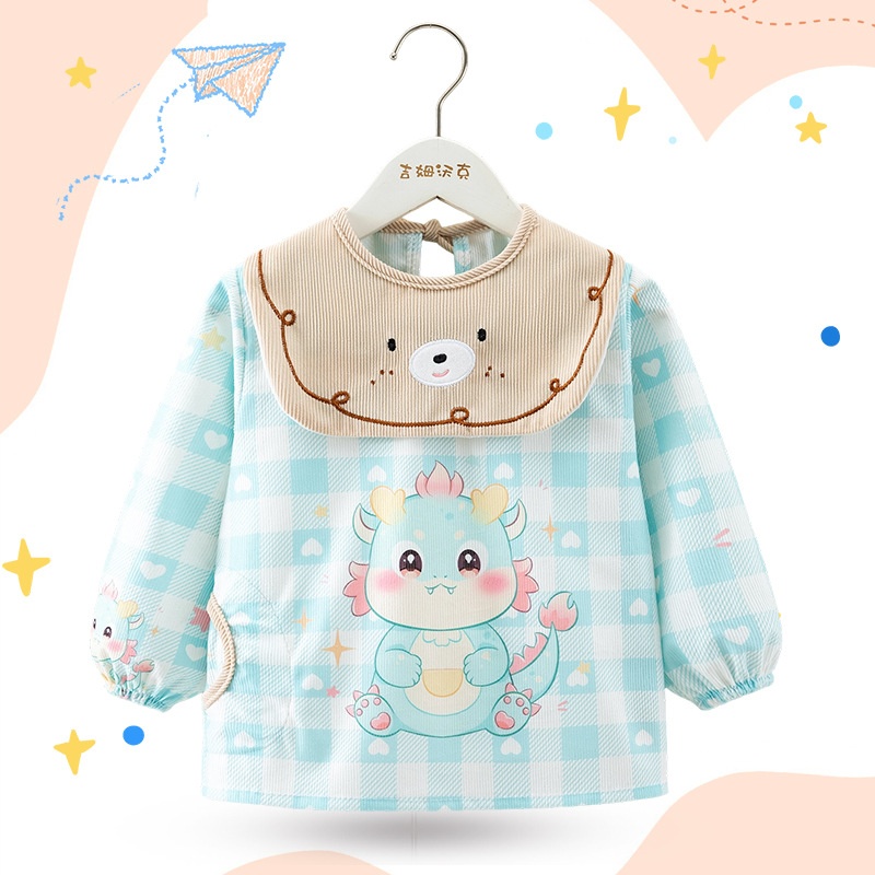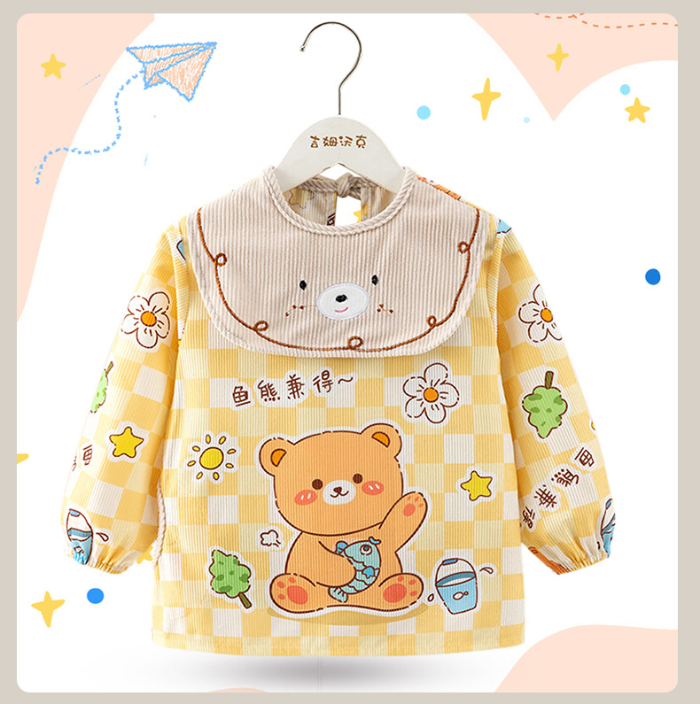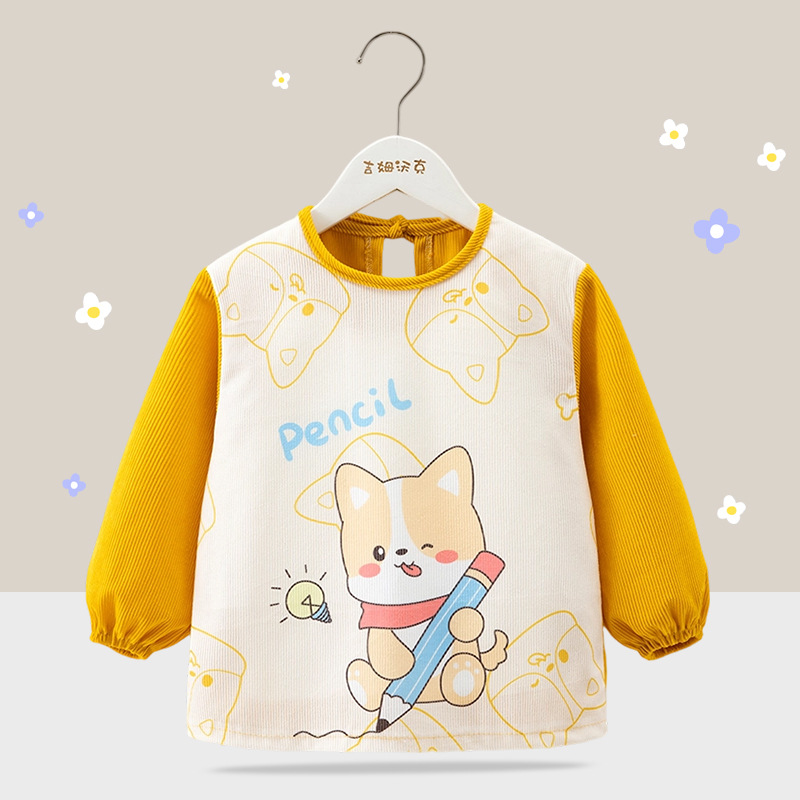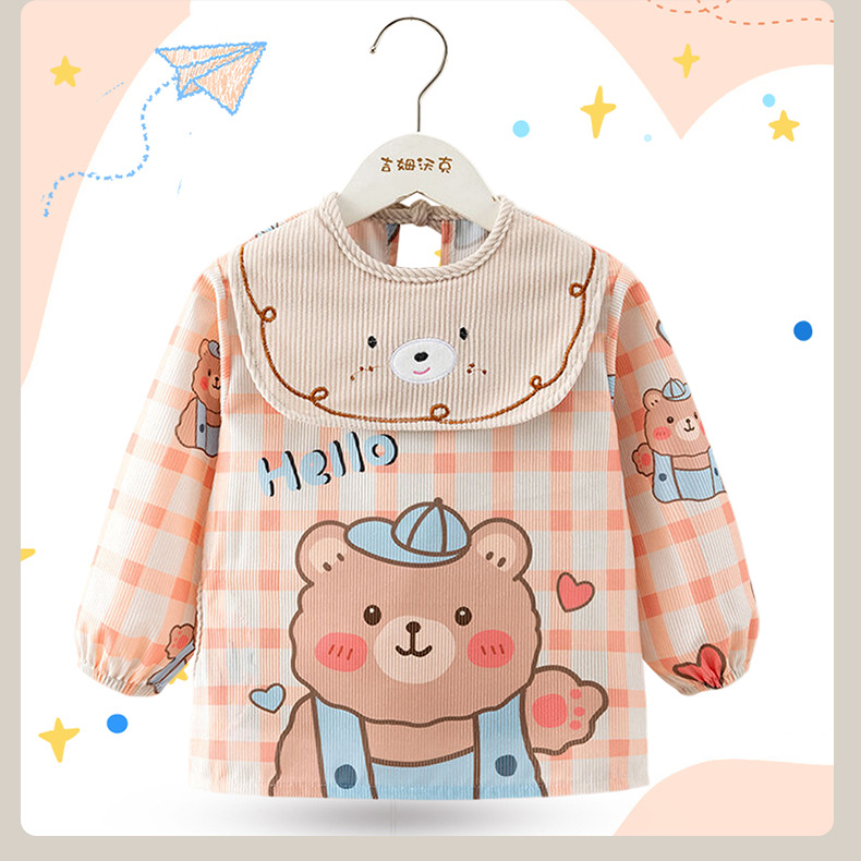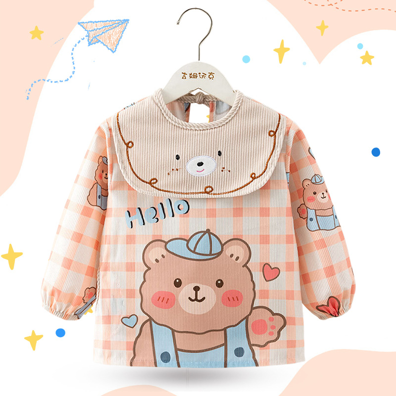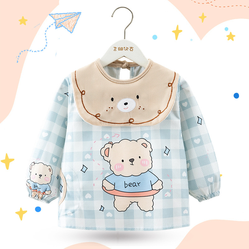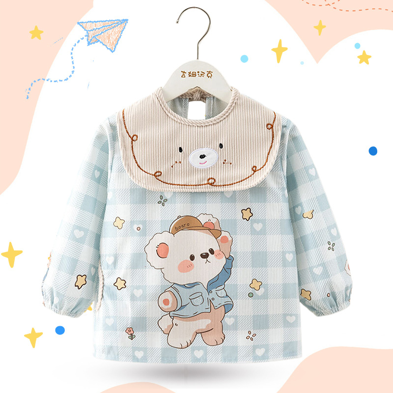 儿童罩衣秋冬季灯芯绒婴儿吃饭围兜罩衣宝宝防水防脏长袖反穿衣