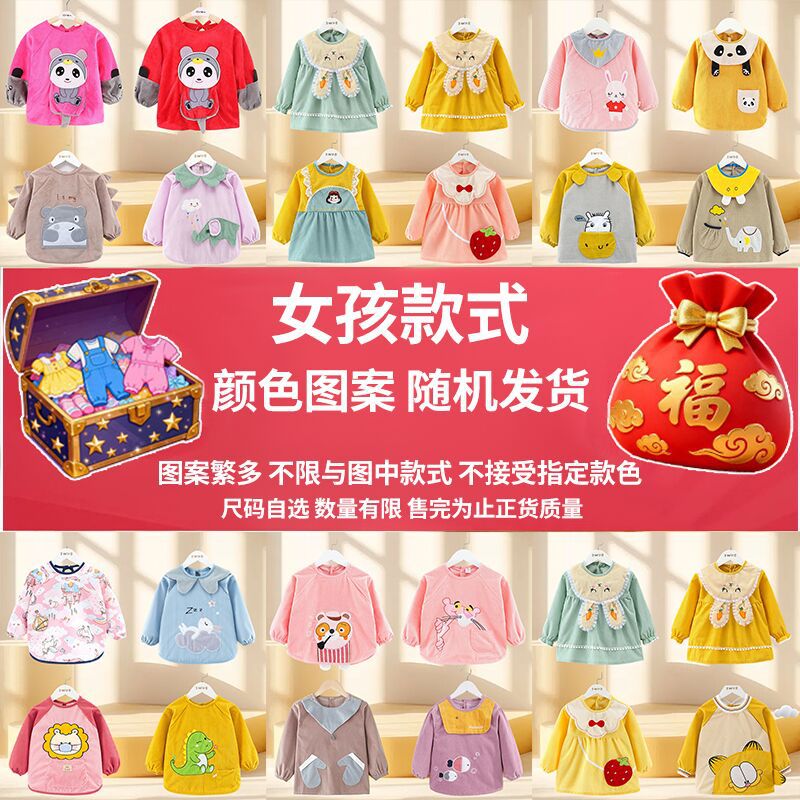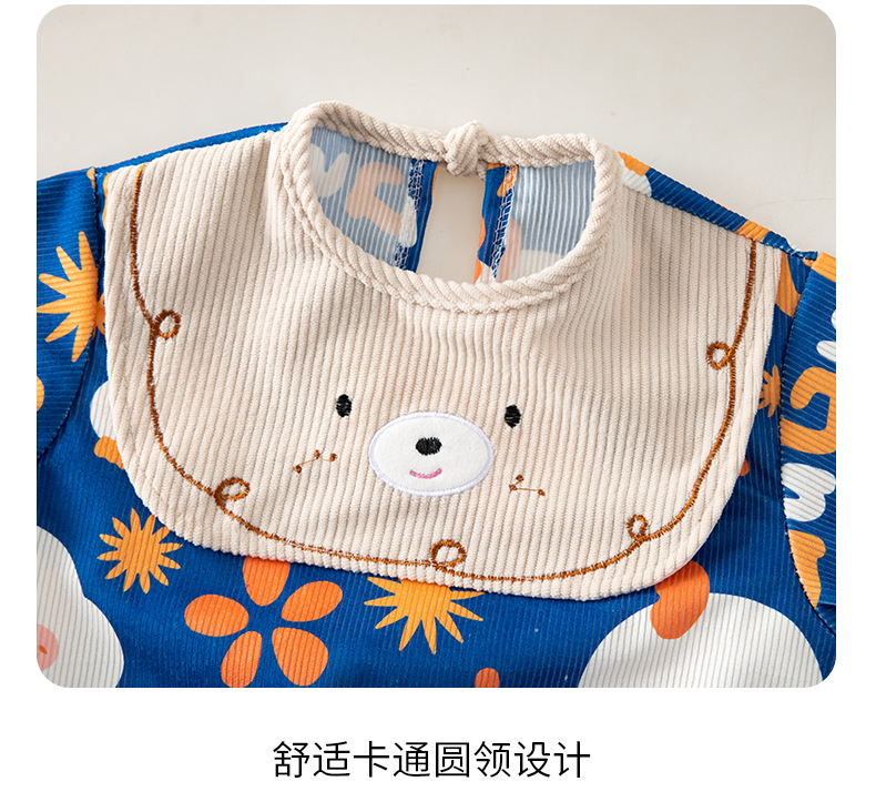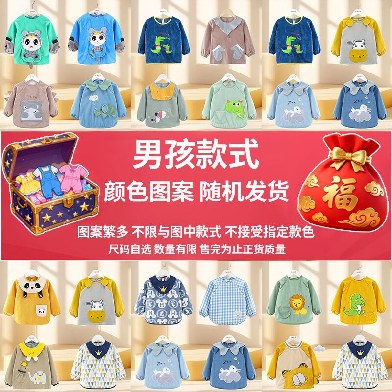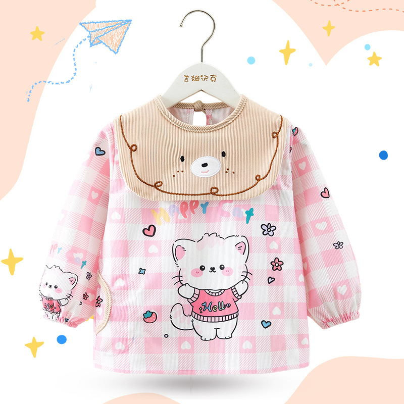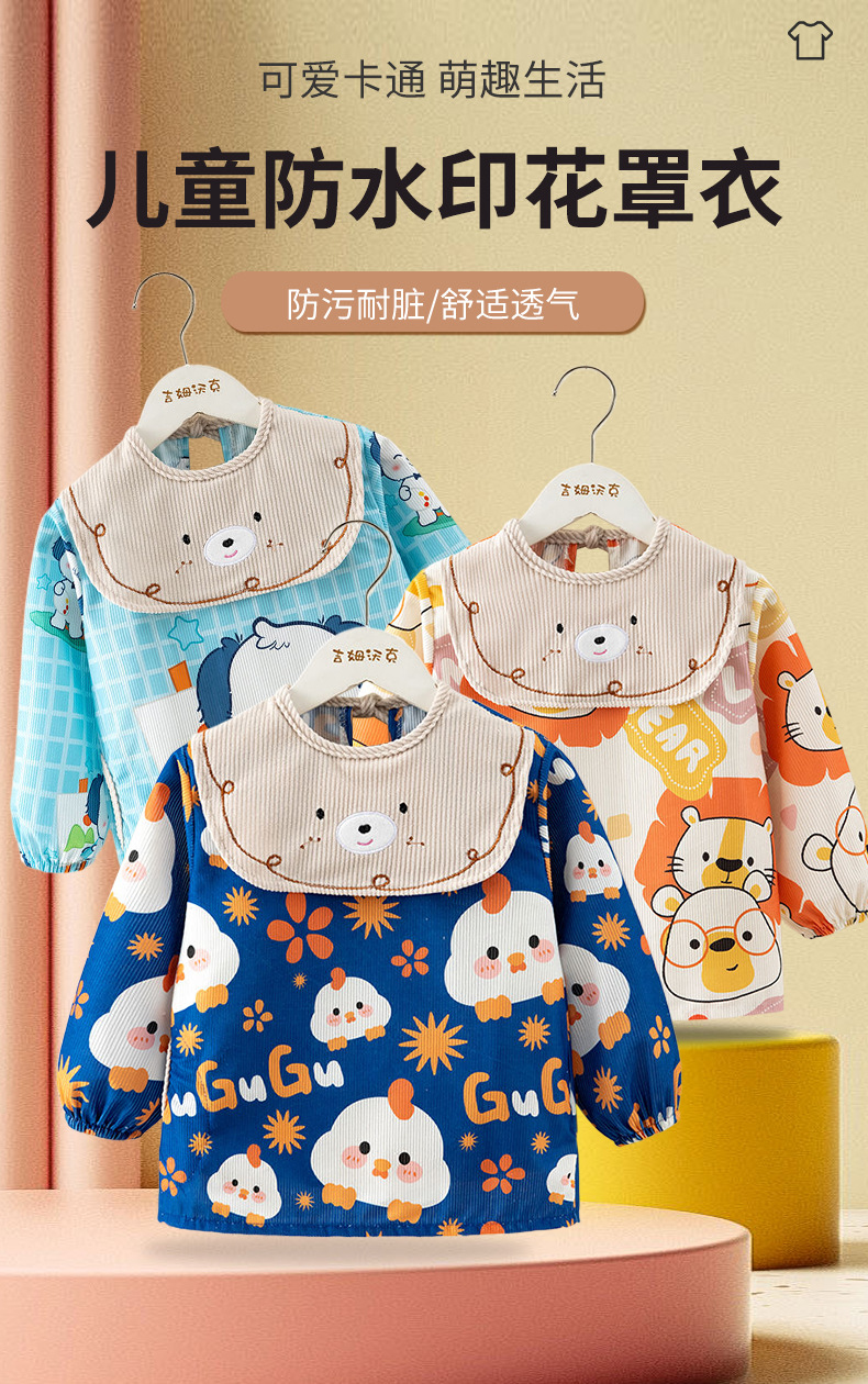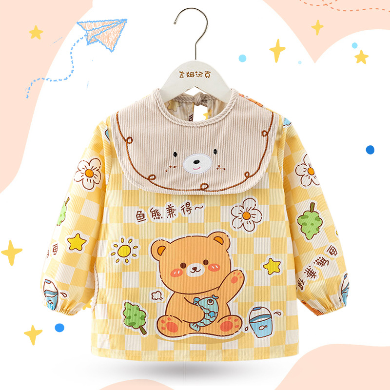 儿童罩衣秋冬季灯芯绒婴儿吃饭围兜罩衣宝宝防水防脏长袖反穿衣
