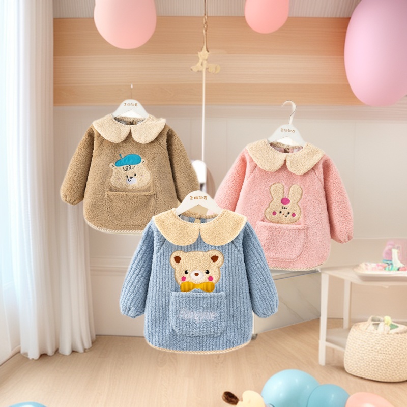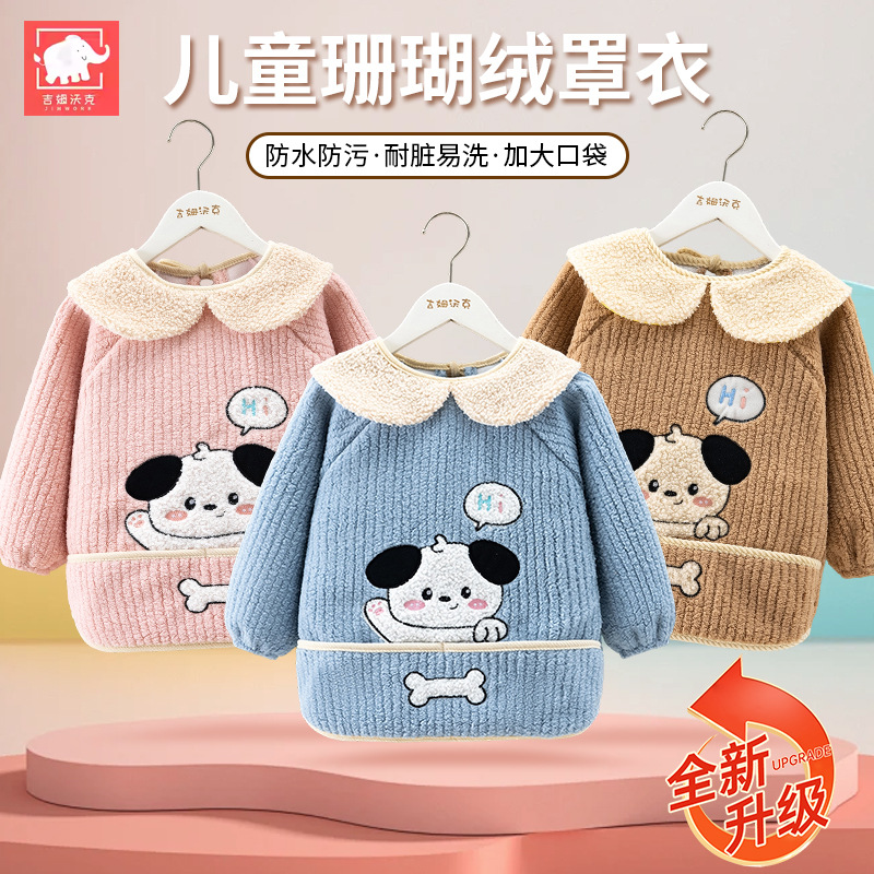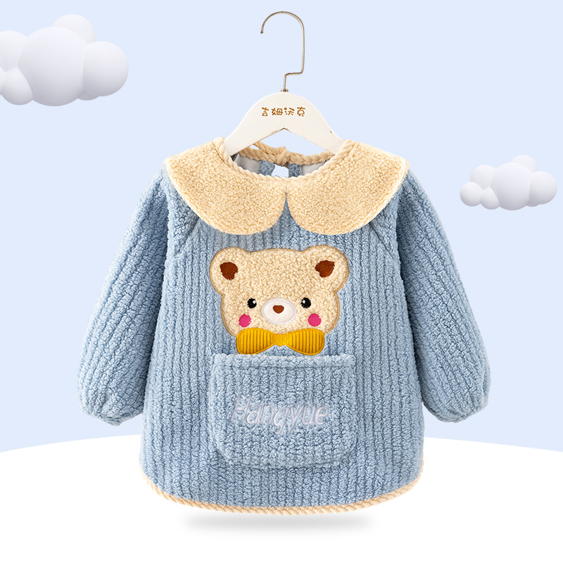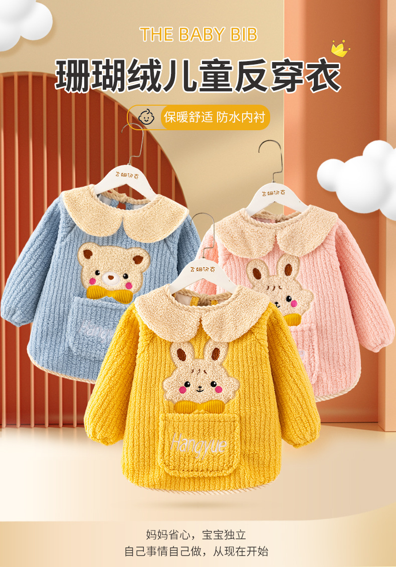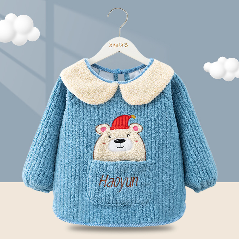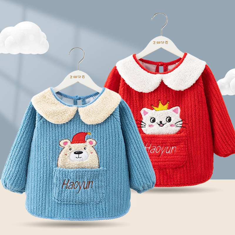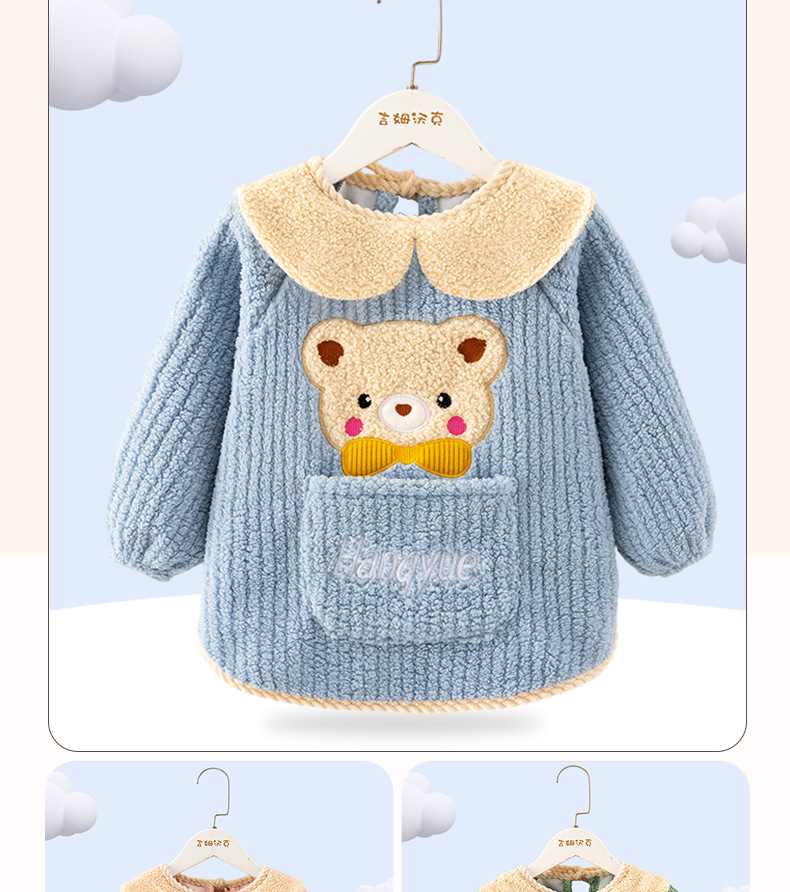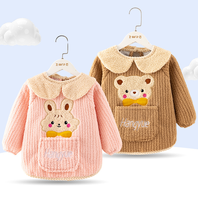 秋冬季加厚泰迪绒防水防污保暖男女宝宝儿童婴儿高颜值柔软罩衣