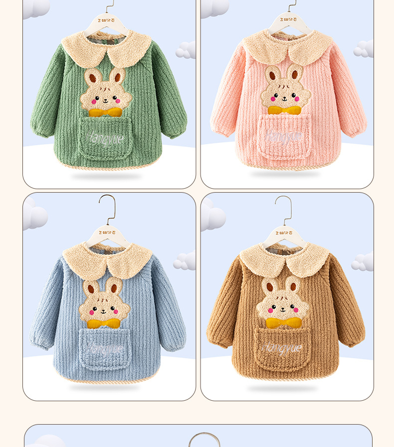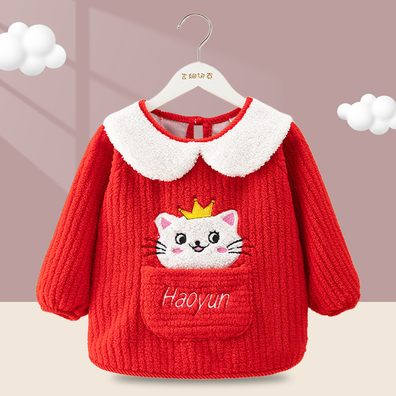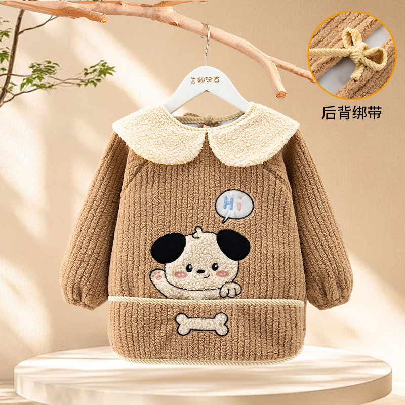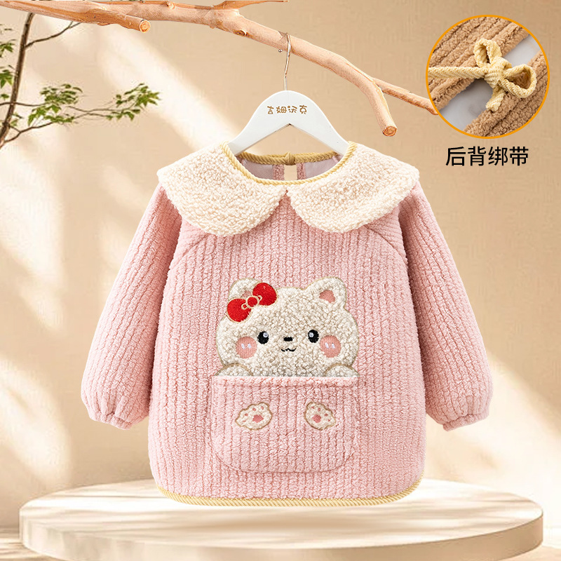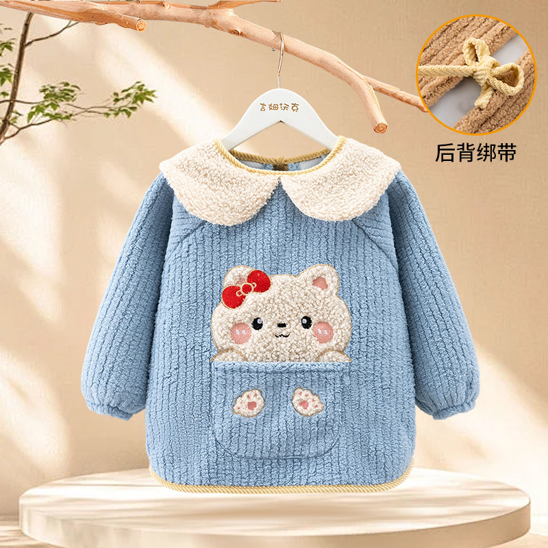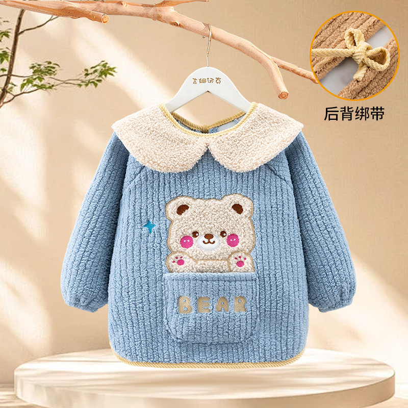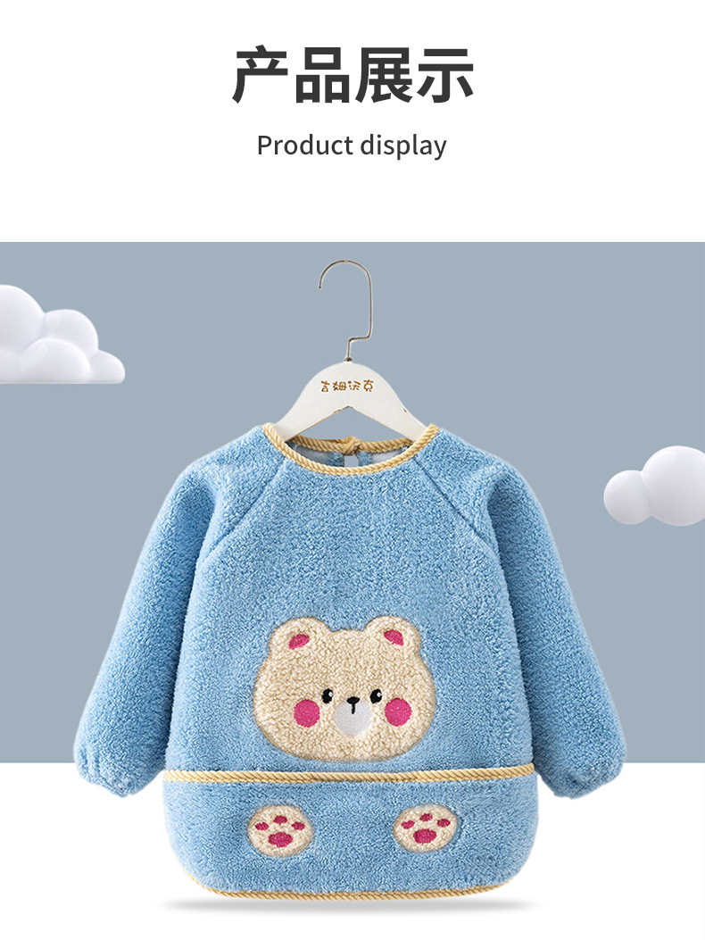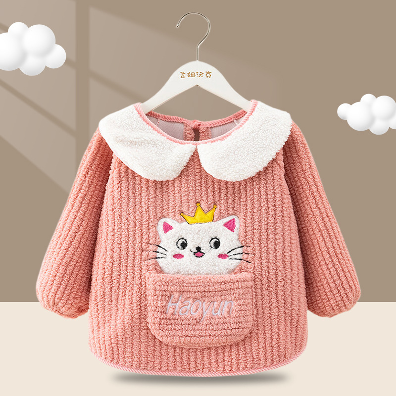 秋冬季加厚泰迪绒防水防污保暖男女宝宝儿童婴儿高颜值柔软罩衣