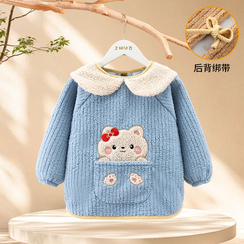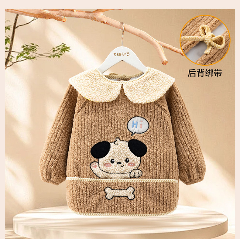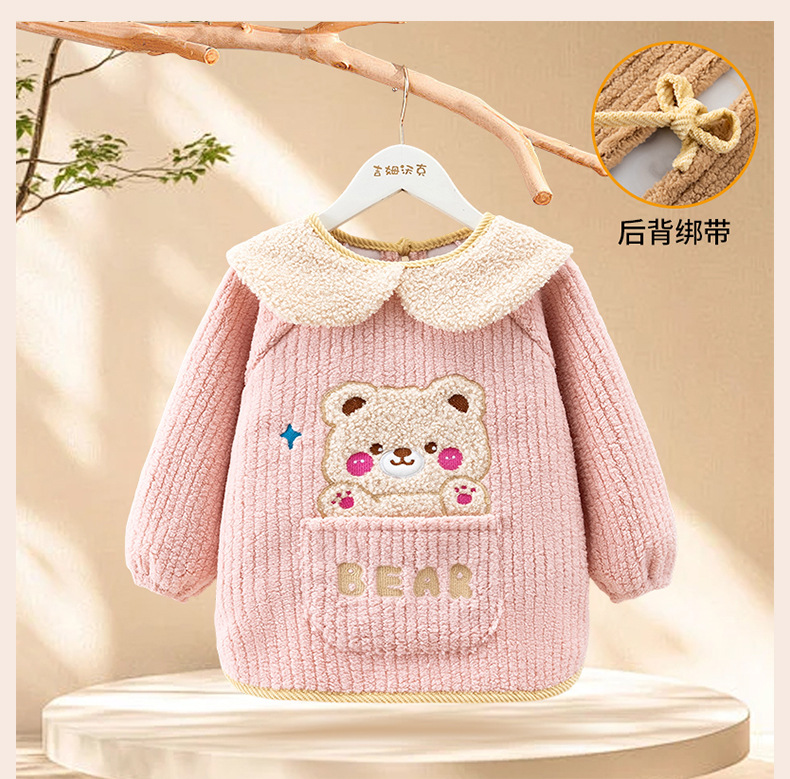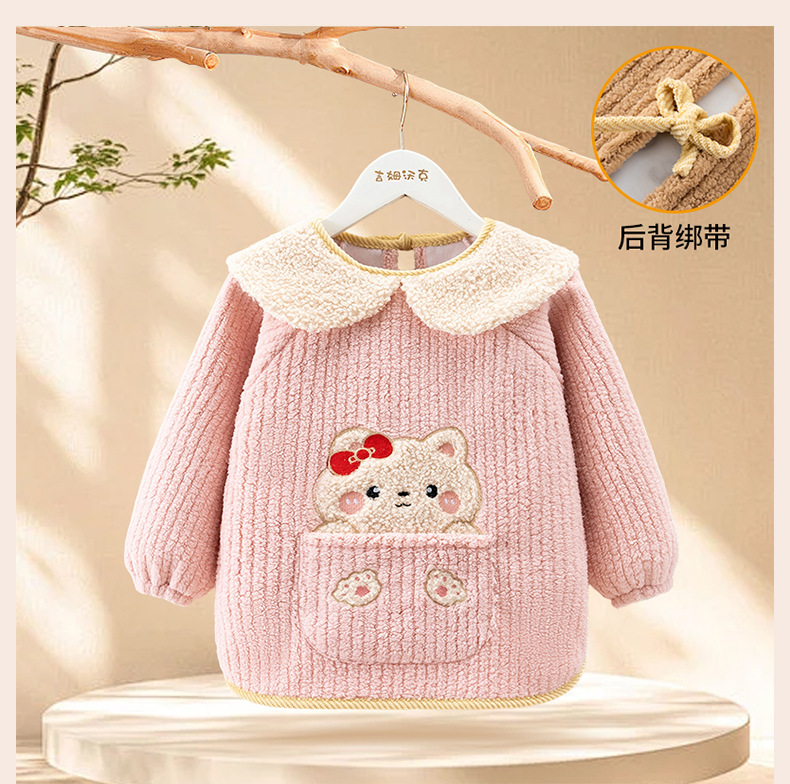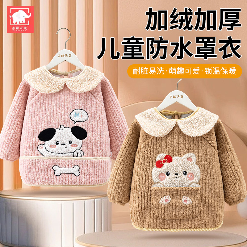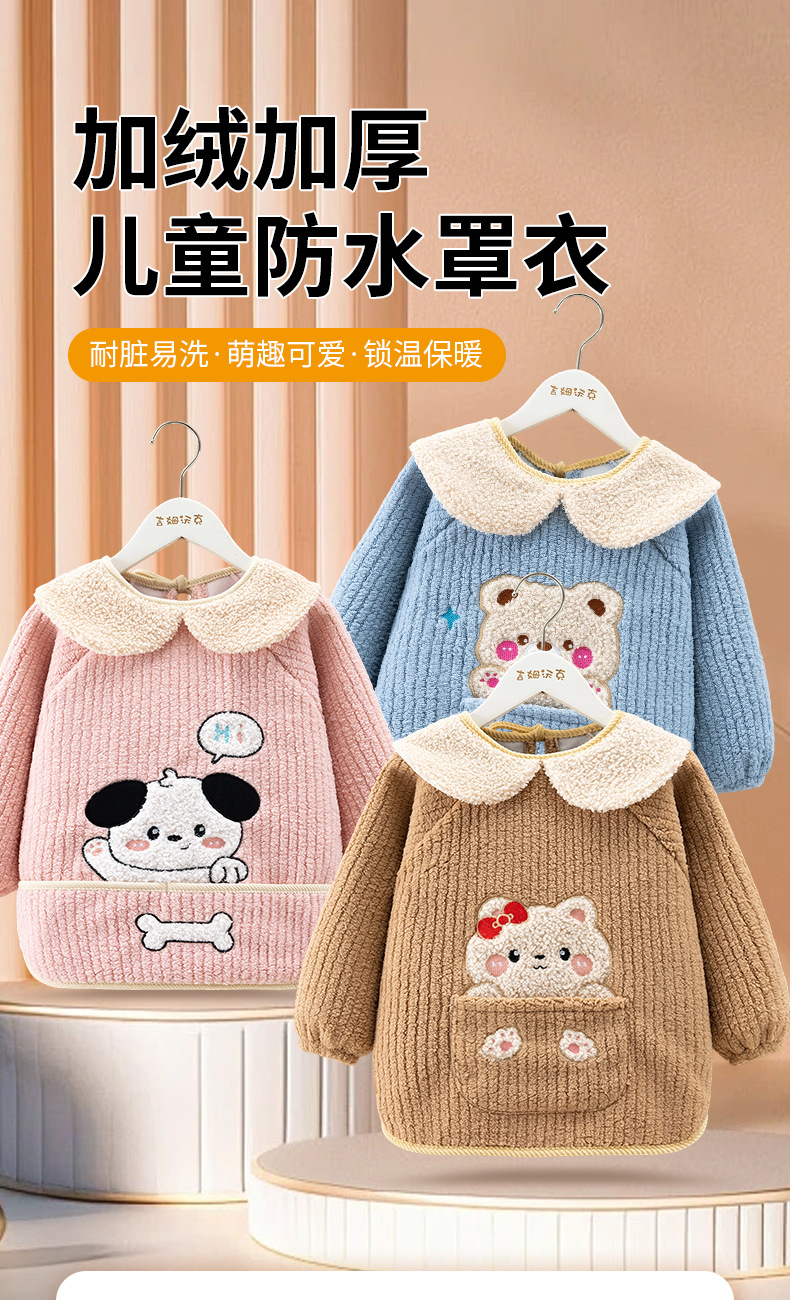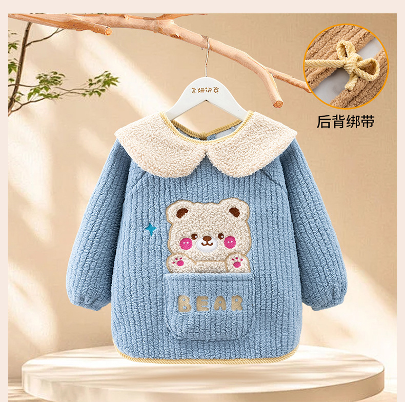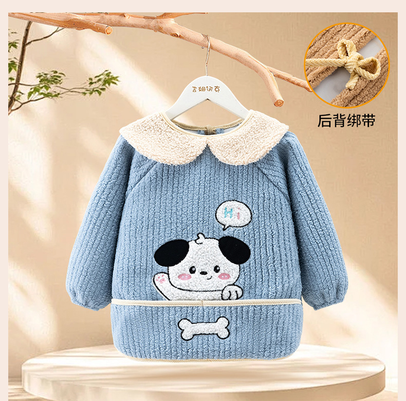秋冬宝宝罩衣加厚珊瑚绒防水防污男女宝宝儿童婴儿高颜值柔软罩衣