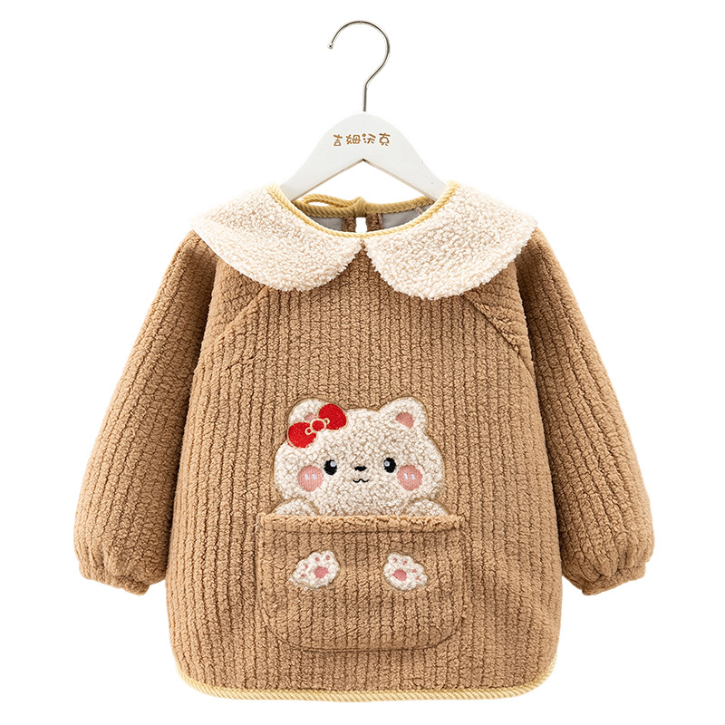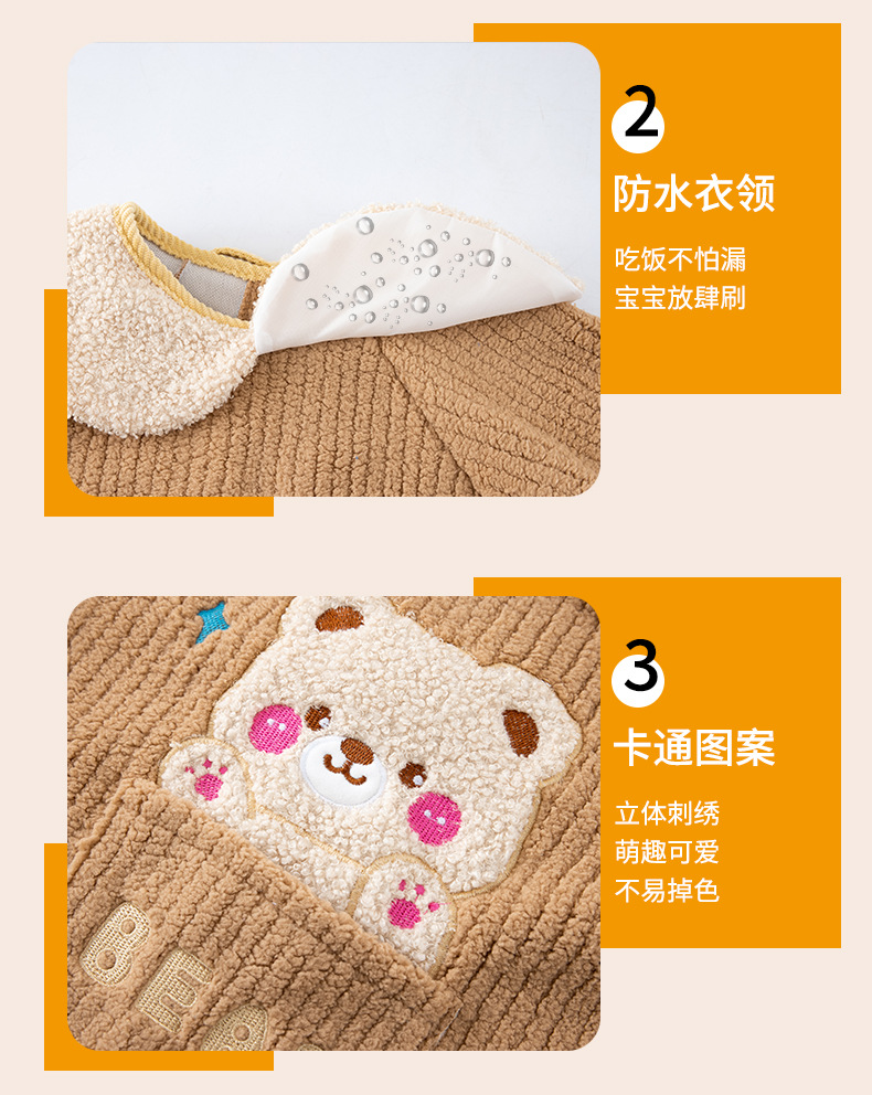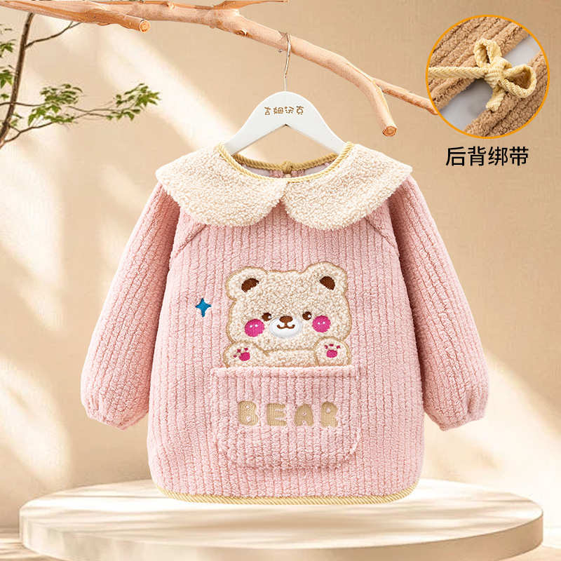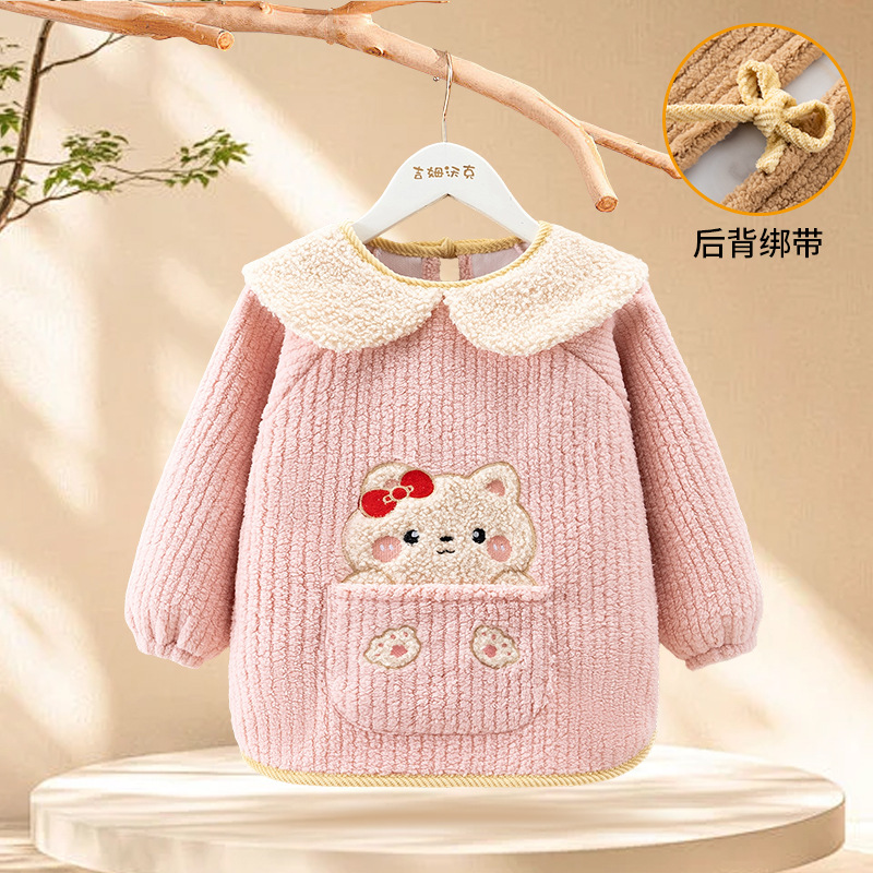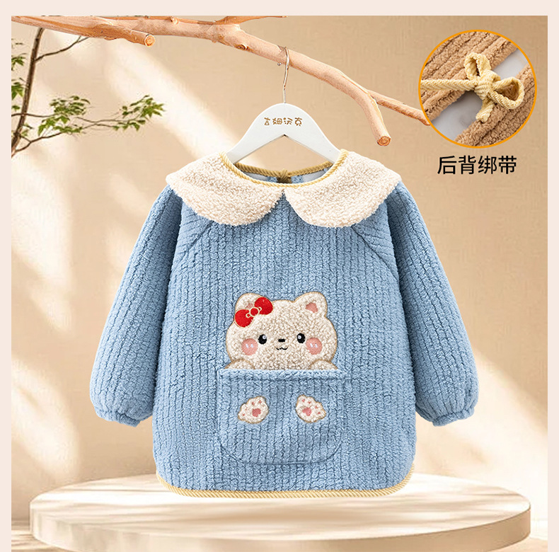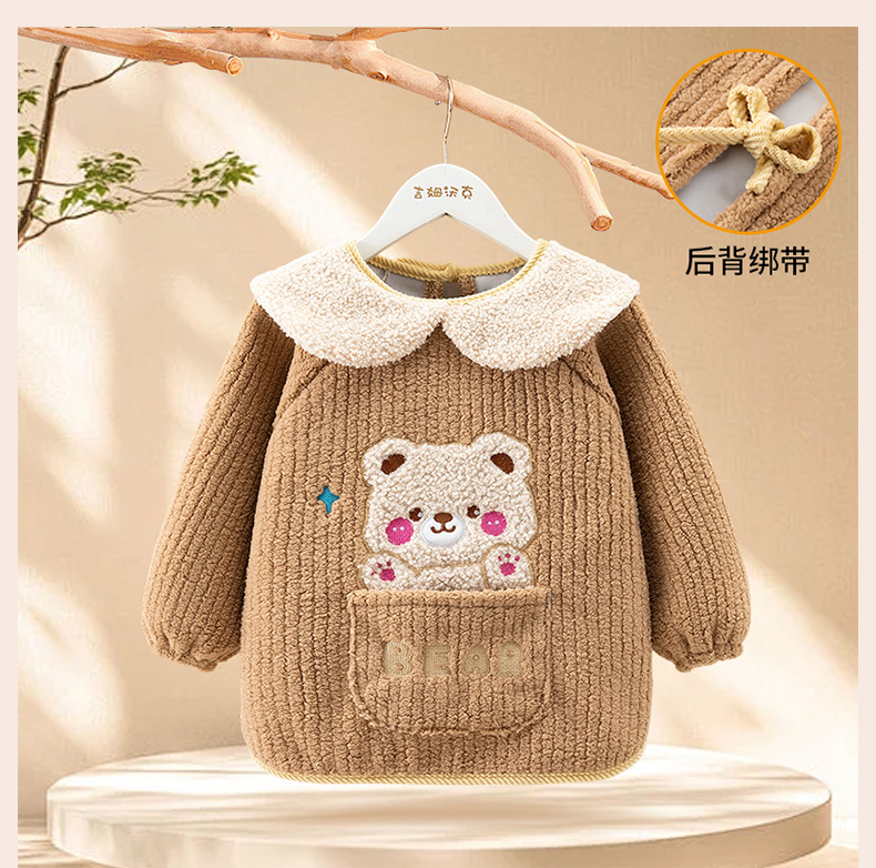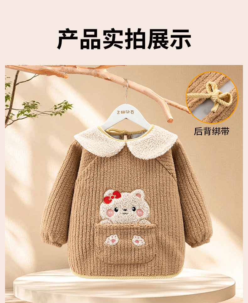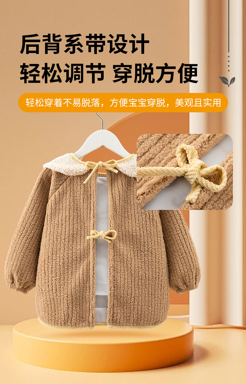 秋冬宝宝罩衣加厚珊瑚绒防水防污男女宝宝儿童婴儿高颜值柔软罩衣