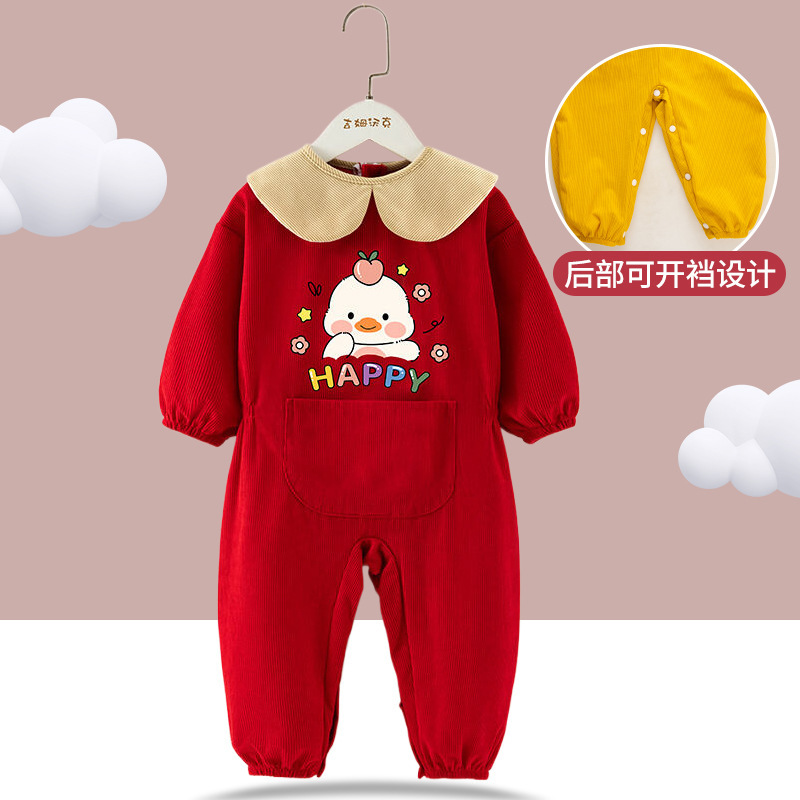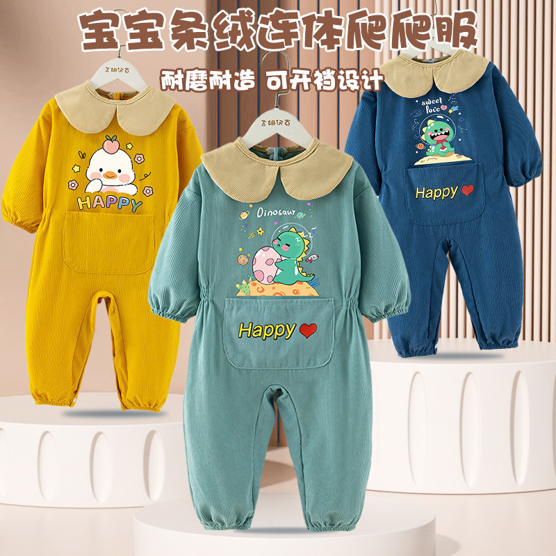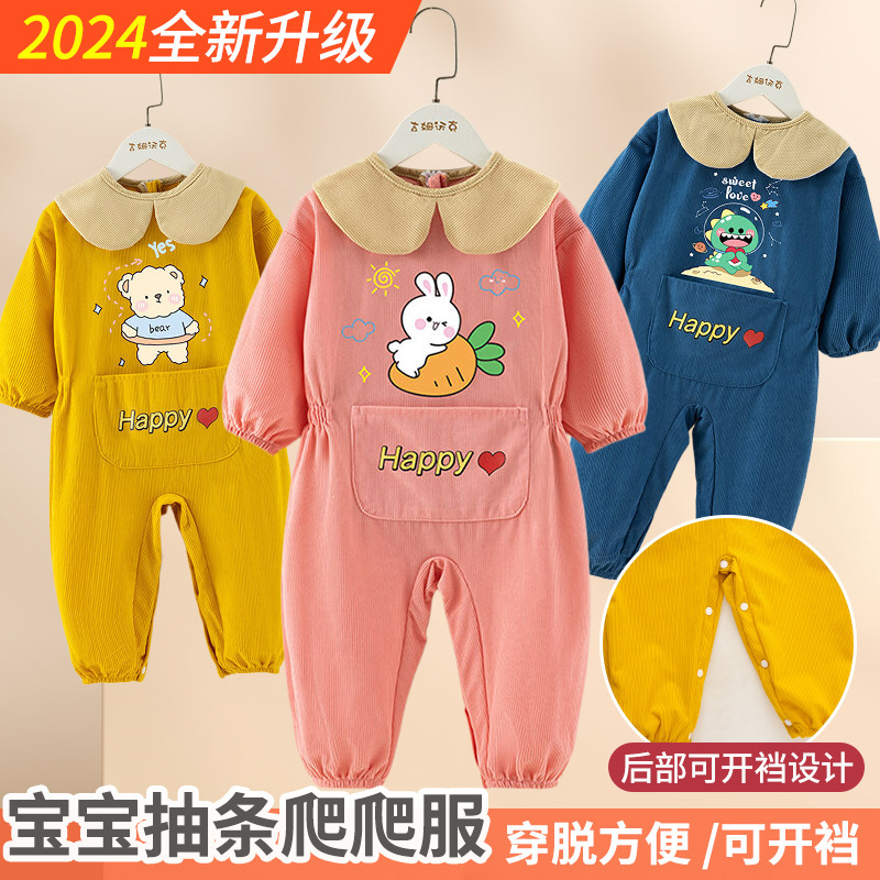 宝宝爬爬服连体罩衣爬行服婴儿一体护衣儿童全身户外防脏哈服秋冬
