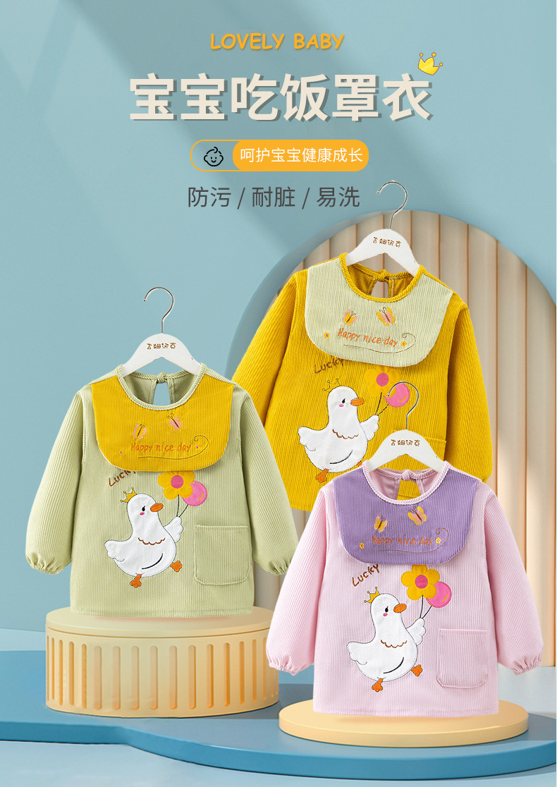 宝宝罩衣防水防脏洋气女男宝围兜吃饭衣外穿婴儿儿童围裙反穿衣