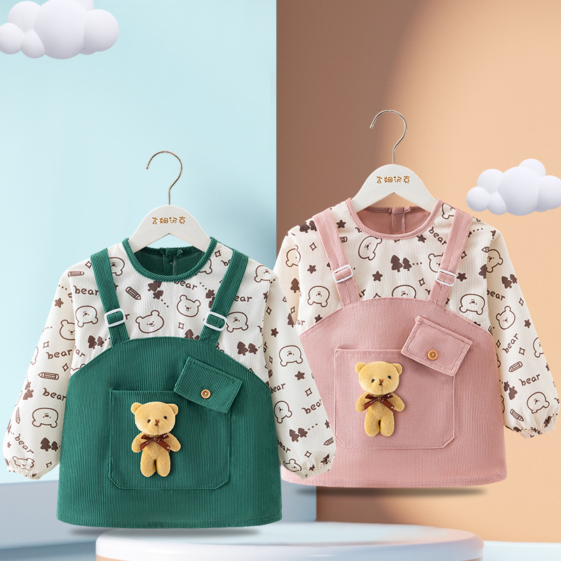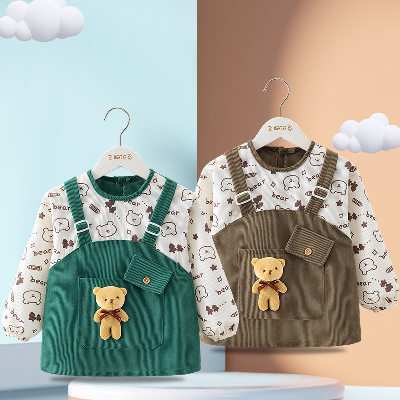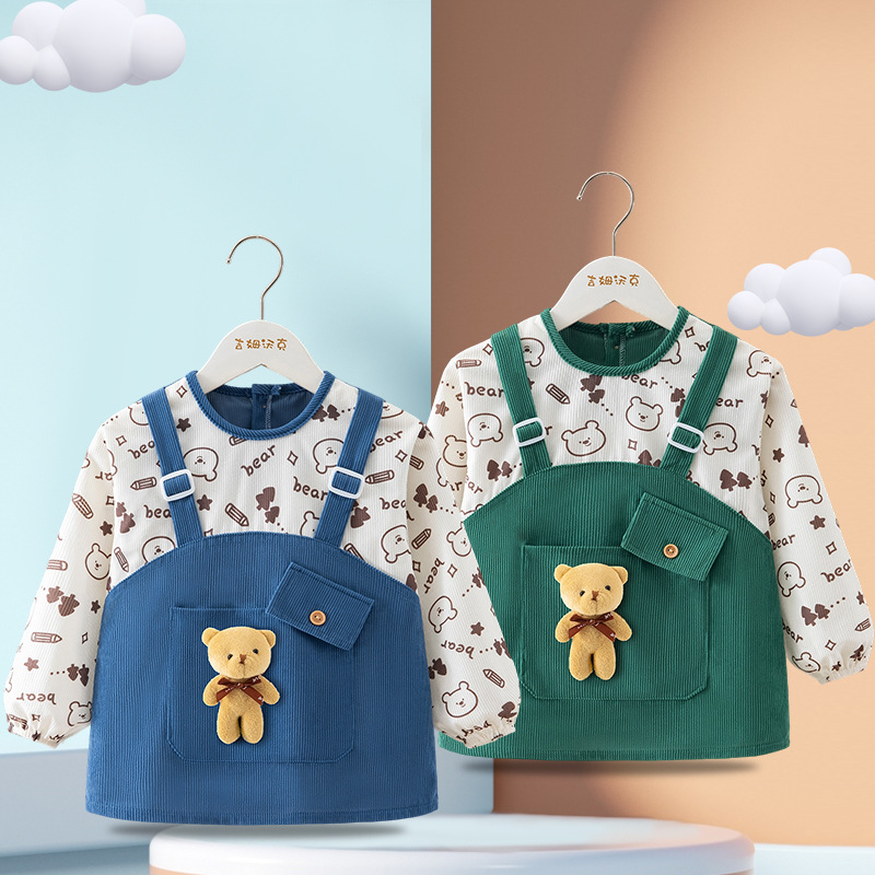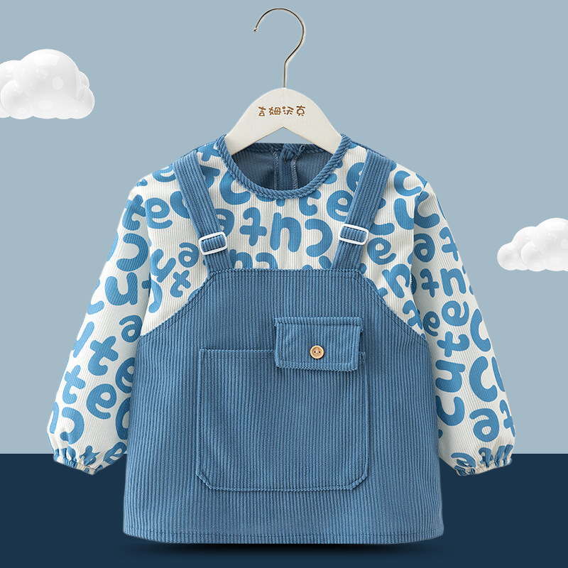 儿童罩衣宝宝吃饭围兜防水防脏饭兜男童围裙秋冬季洋气女童反穿衣