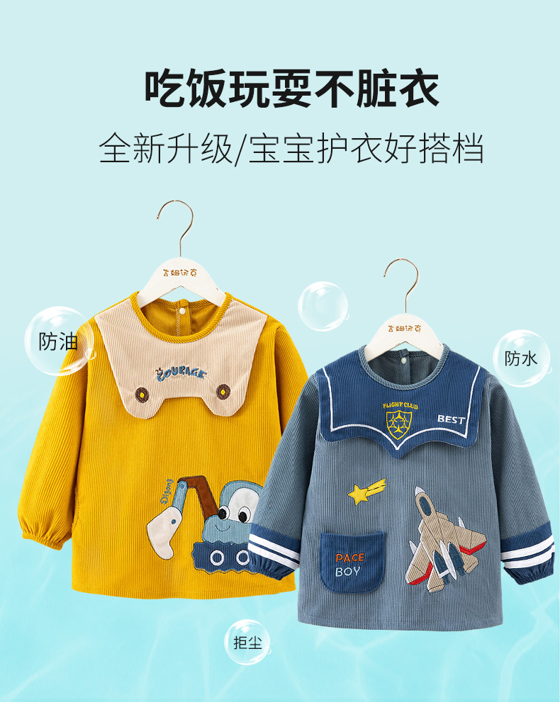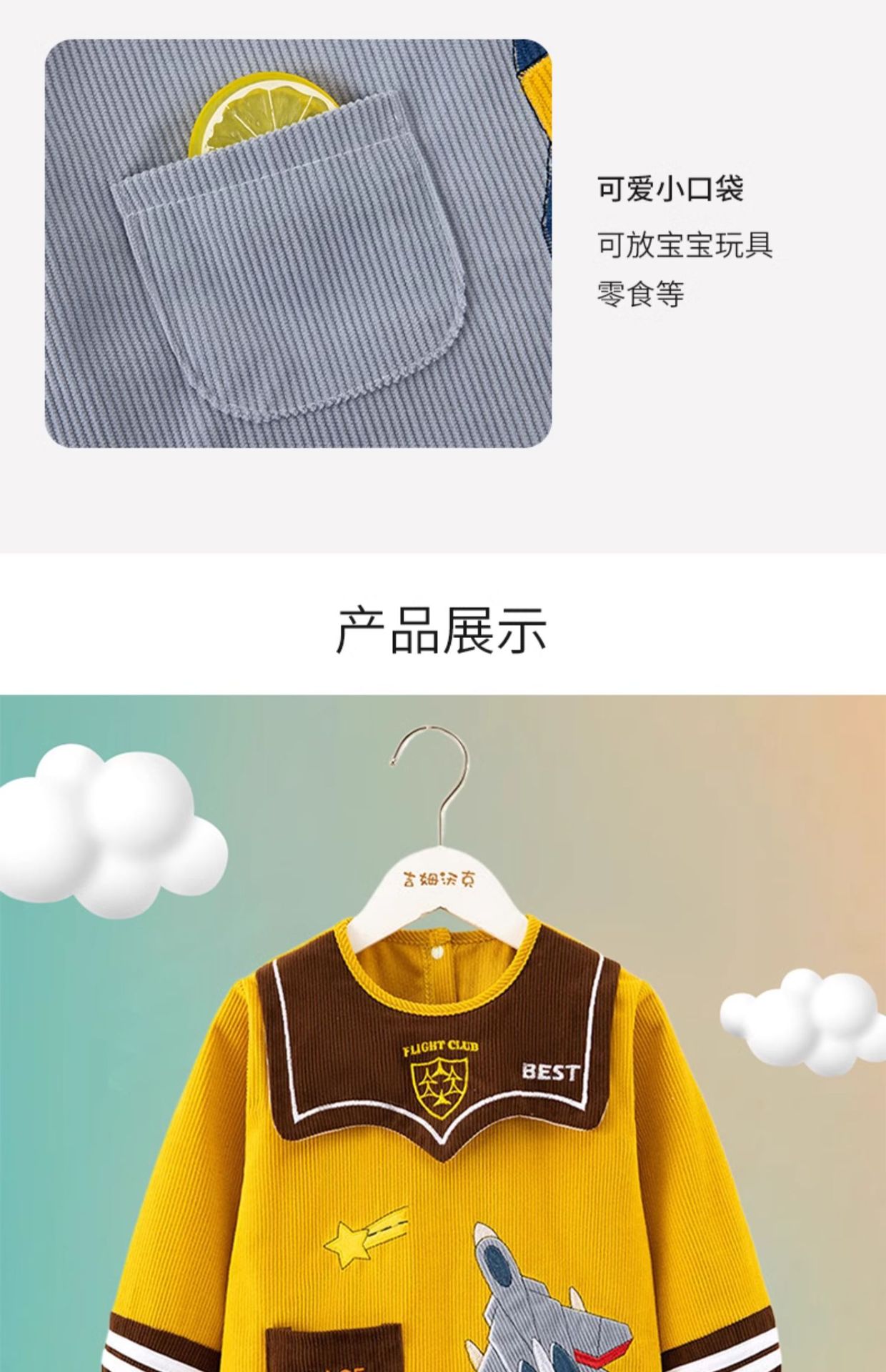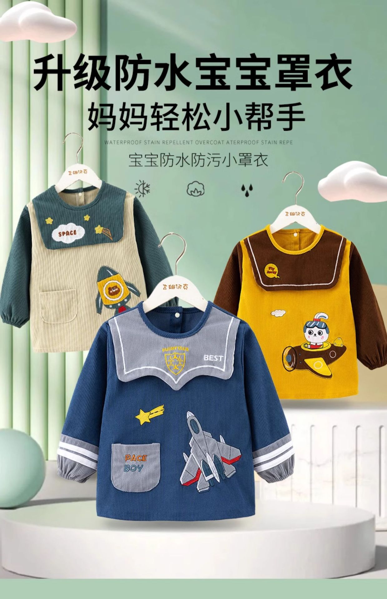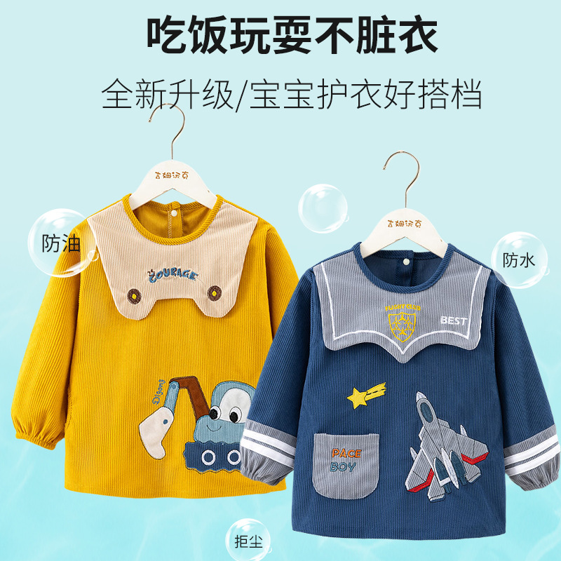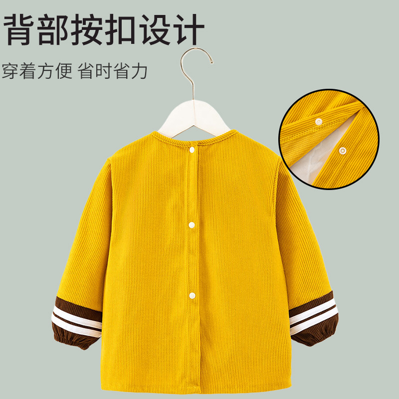 儿童罩衣宝宝吃饭围兜秋冬灯芯绒男宝宝围裙防水防脏幼儿园外穿衣
