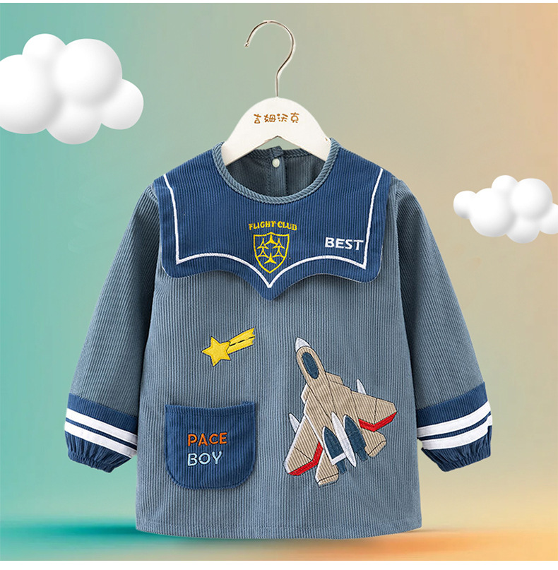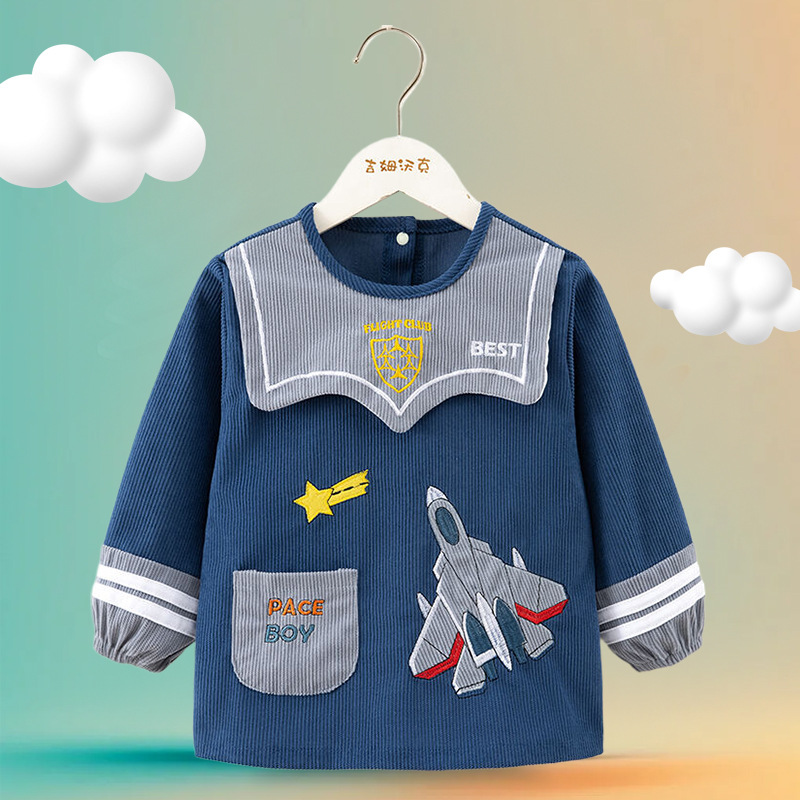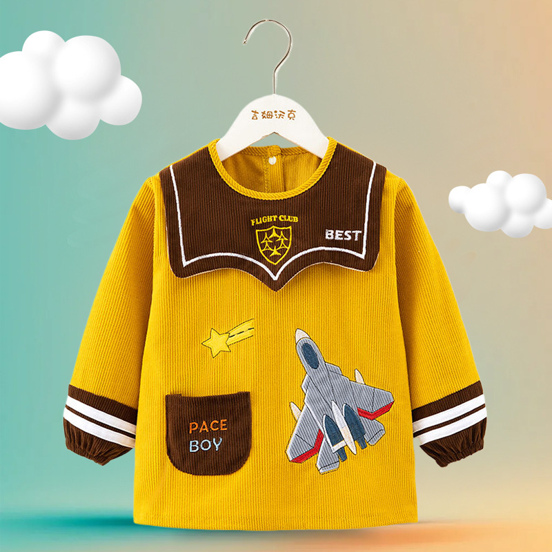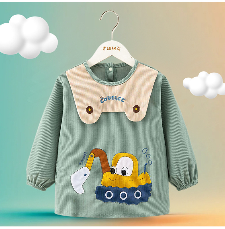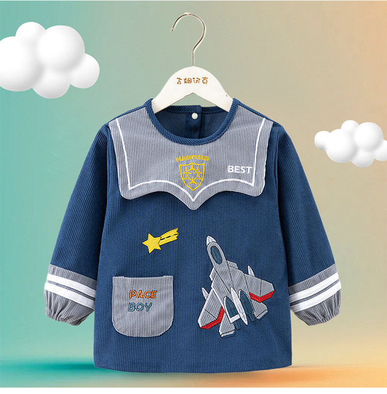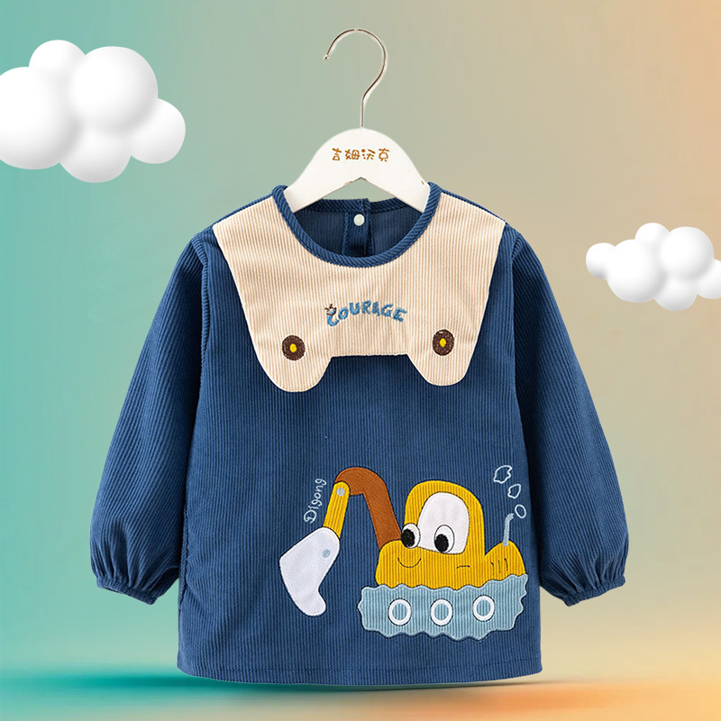 儿童罩衣宝宝吃饭围兜秋冬灯芯绒男宝宝围裙防水防脏幼儿园外穿衣