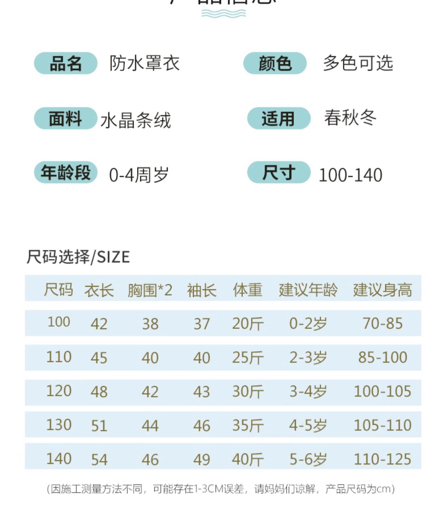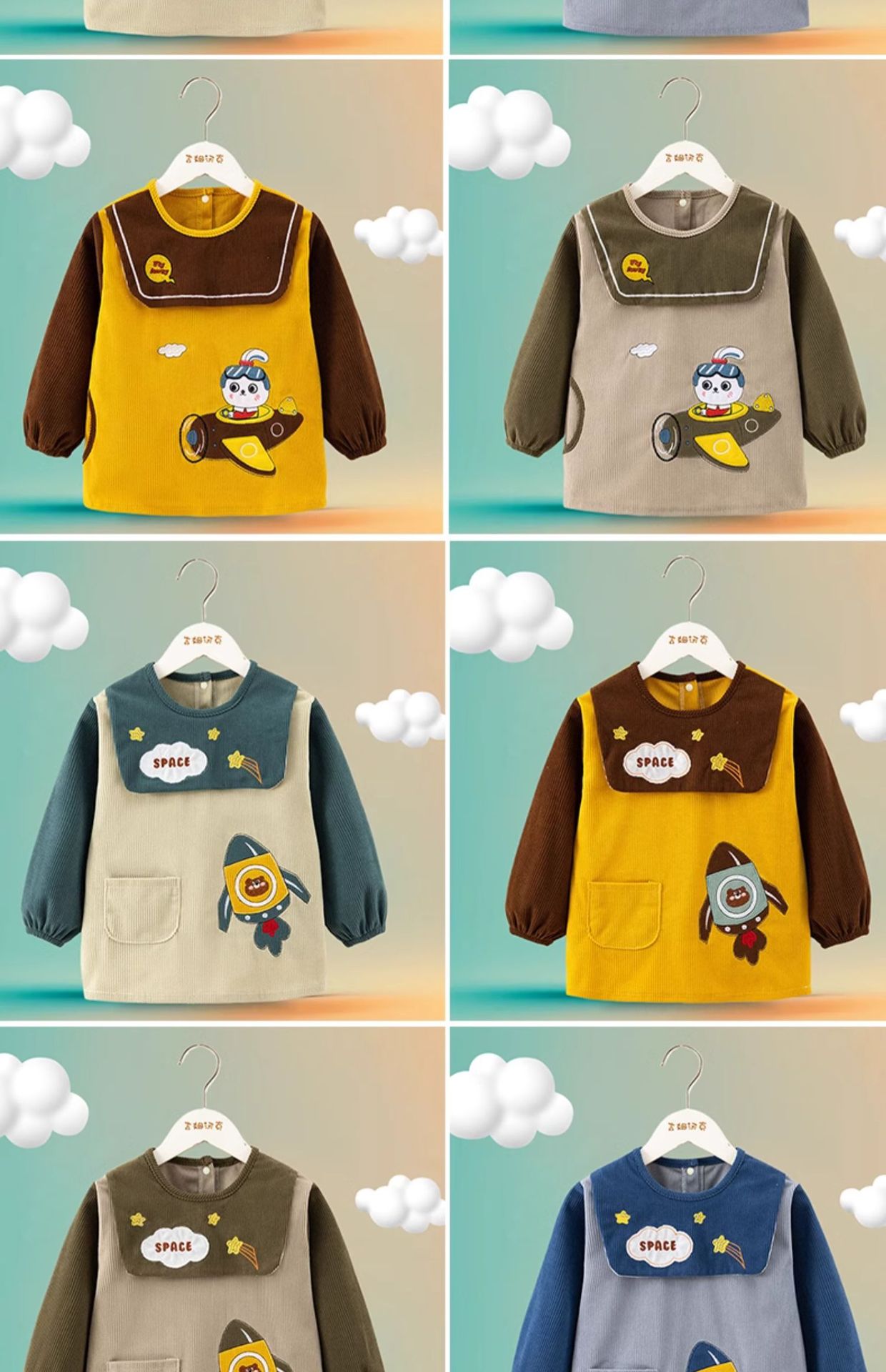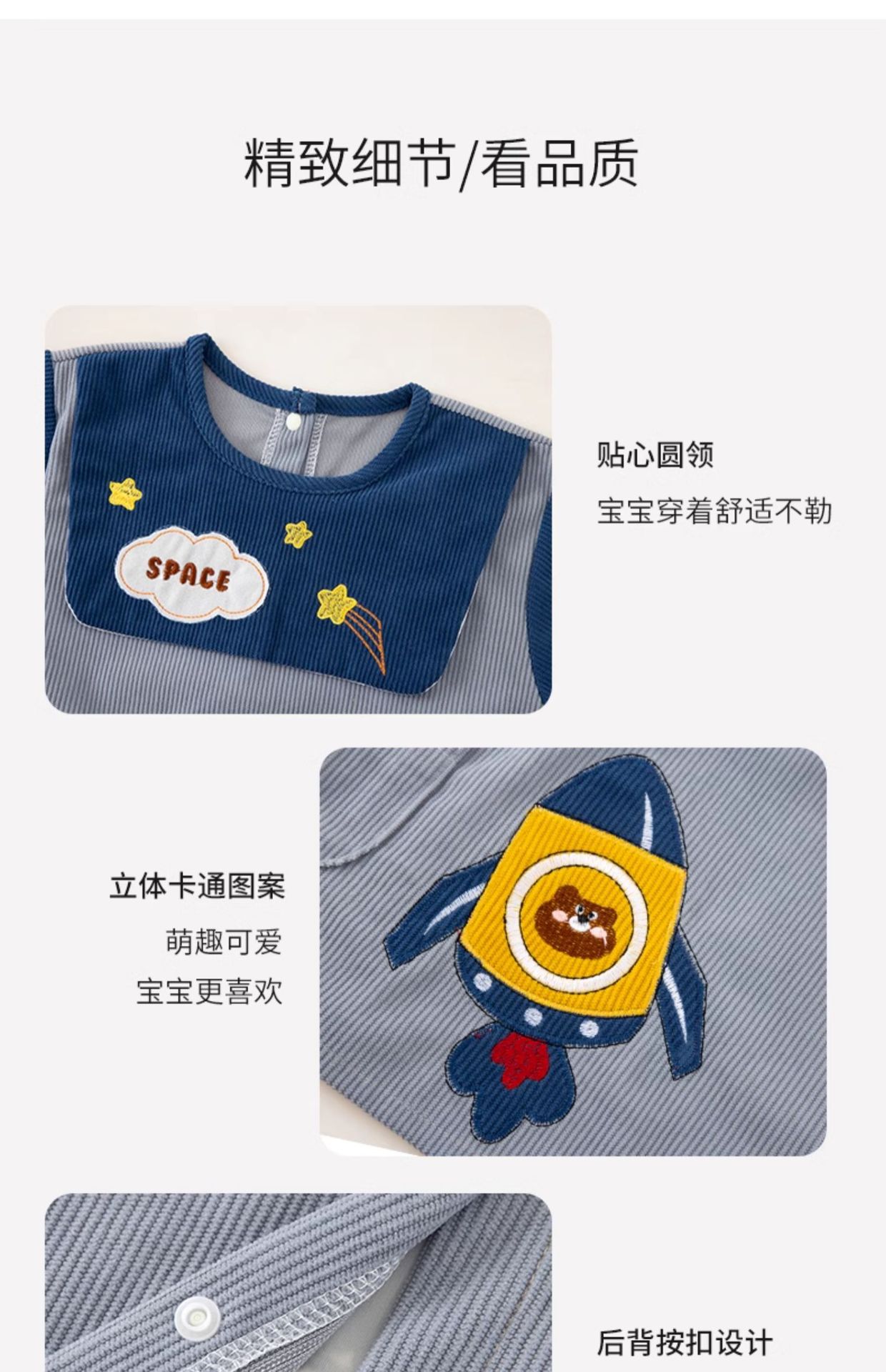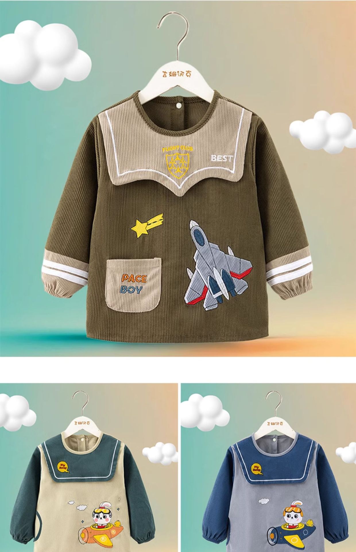 儿童罩衣宝宝吃饭围兜秋冬灯芯绒男宝宝围裙防水防脏幼儿园外穿衣