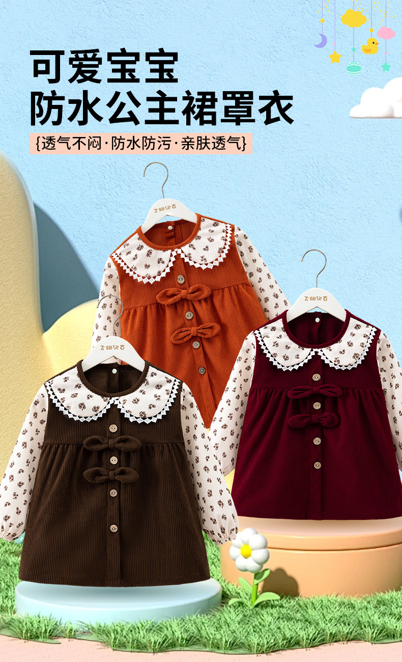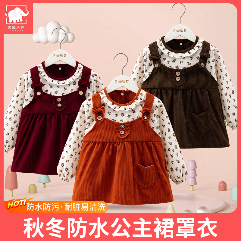 罩衣女宝宝秋冬儿童围裙公主裙吃饭围兜防水防脏婴儿反穿护衣外穿