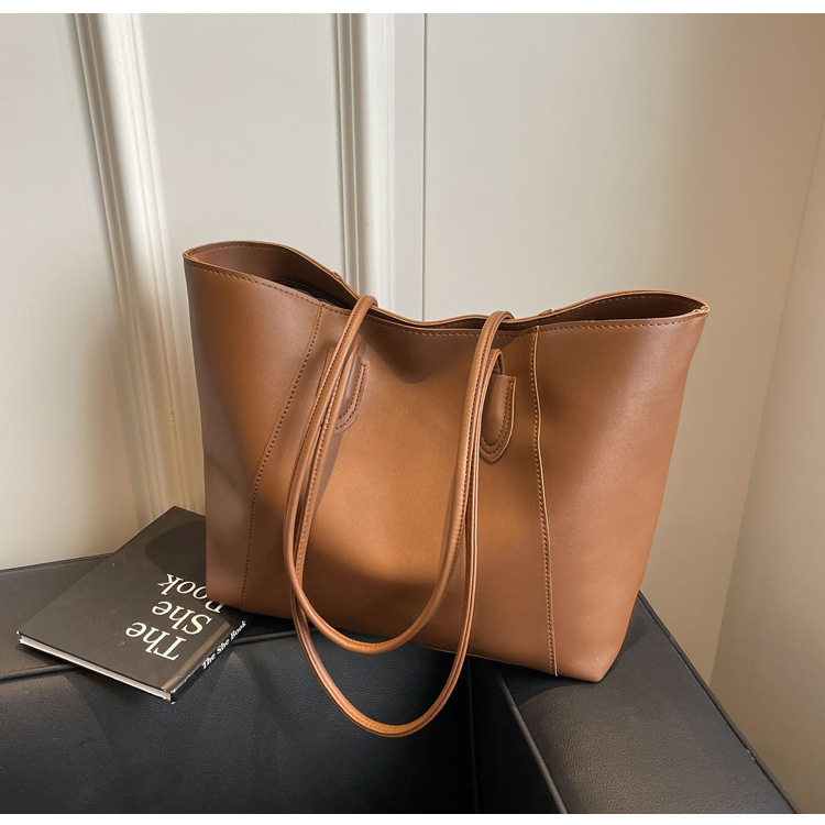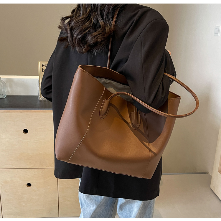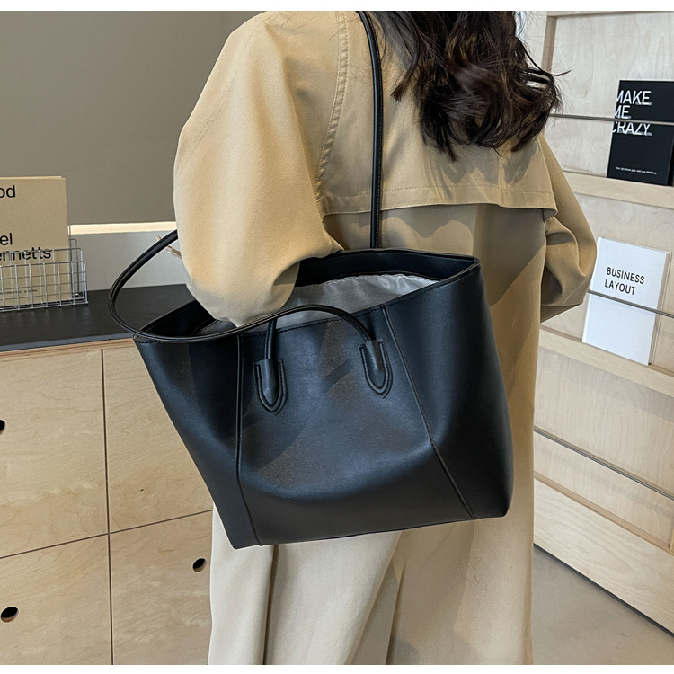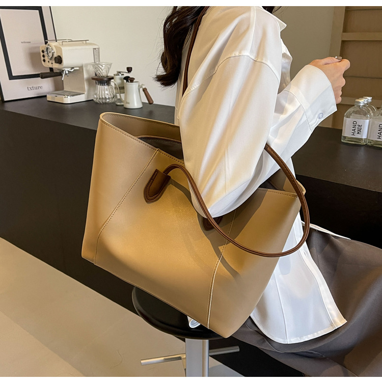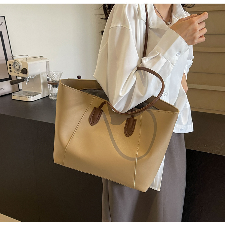 跨境托特包女2025新款大容量通勤包包秋季感百搭单肩包简约上课包