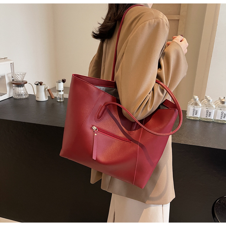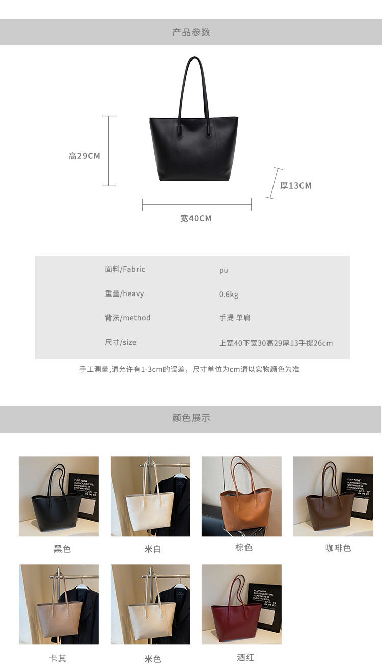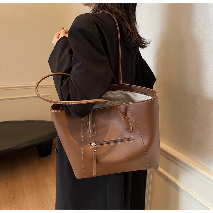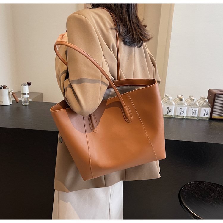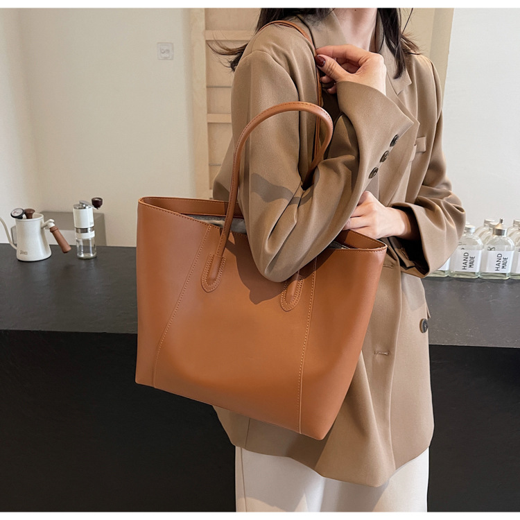 跨境高级感简约美拉德托特包女2025秋季新款大容量通勤韩系单肩包