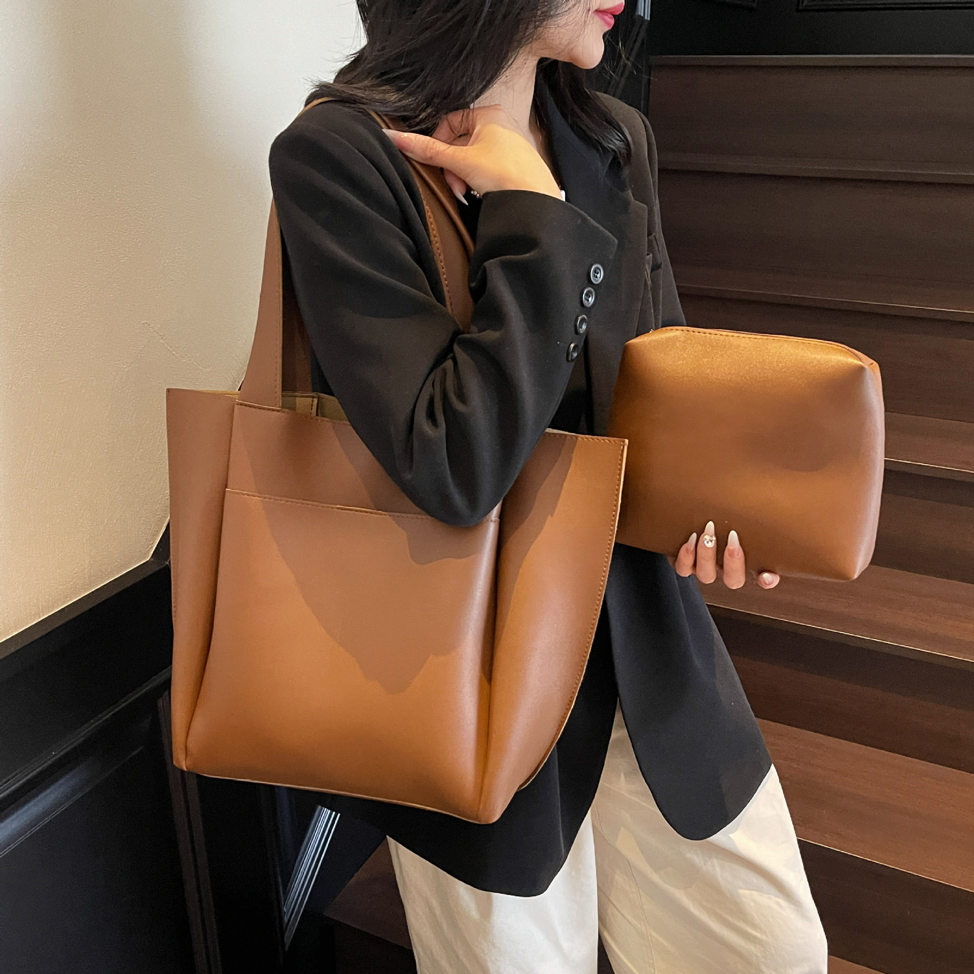 跨境容量通勤包包2025新款时尚百搭休闲洋气托特包韩版简约单肩包