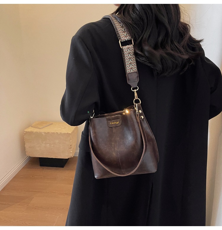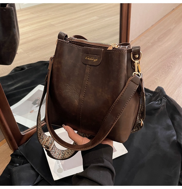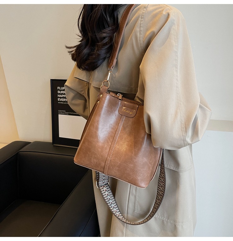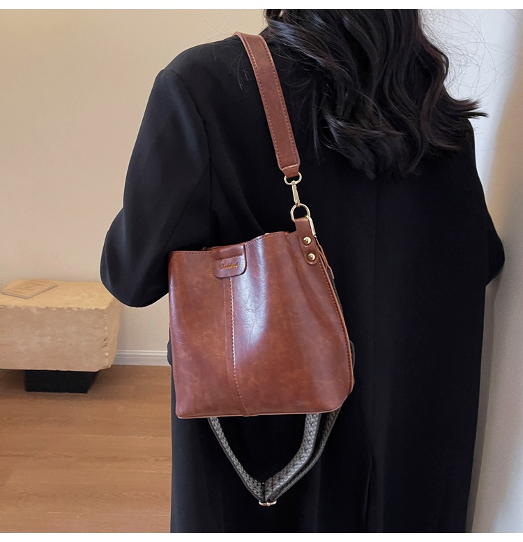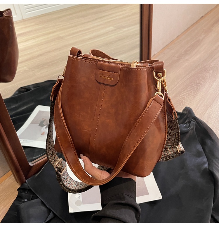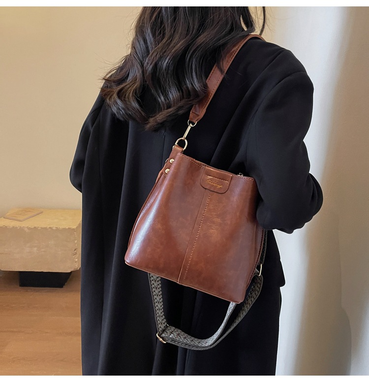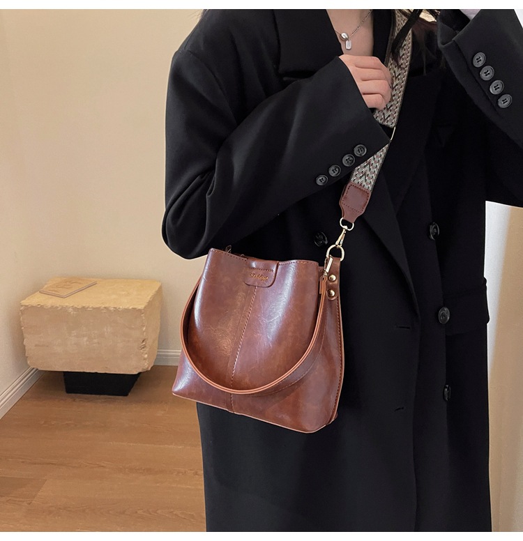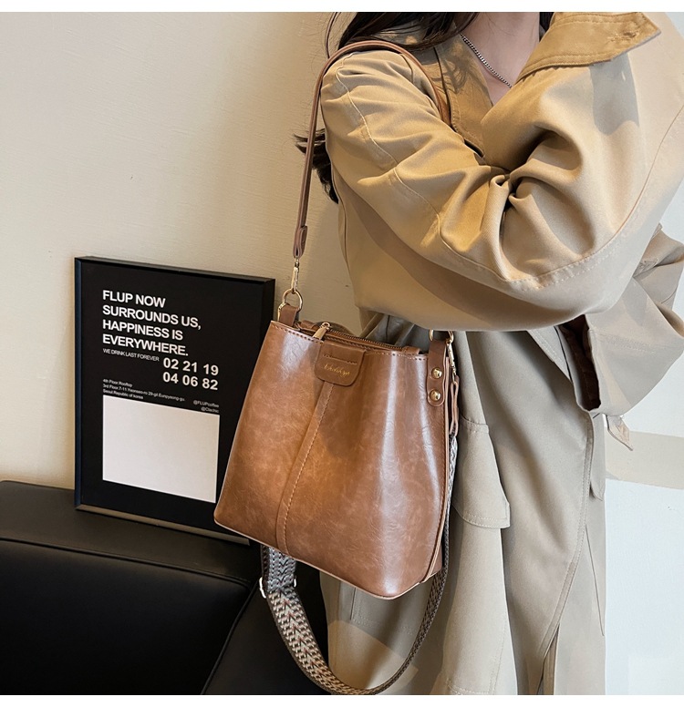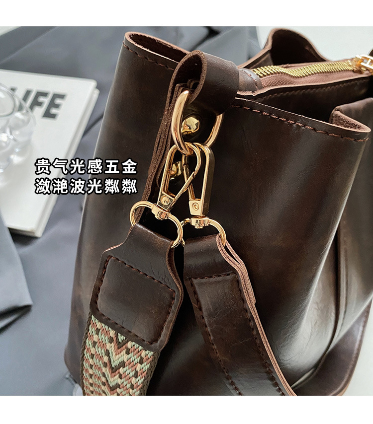包包女2025新款韩系百搭新款潮春夏复古单肩大容量宽带斜挎水桶包