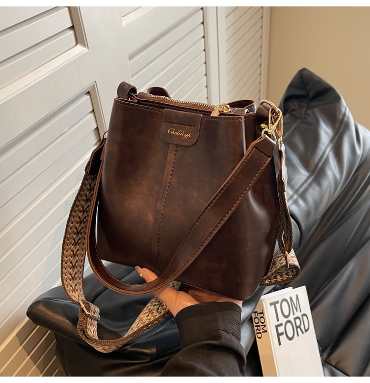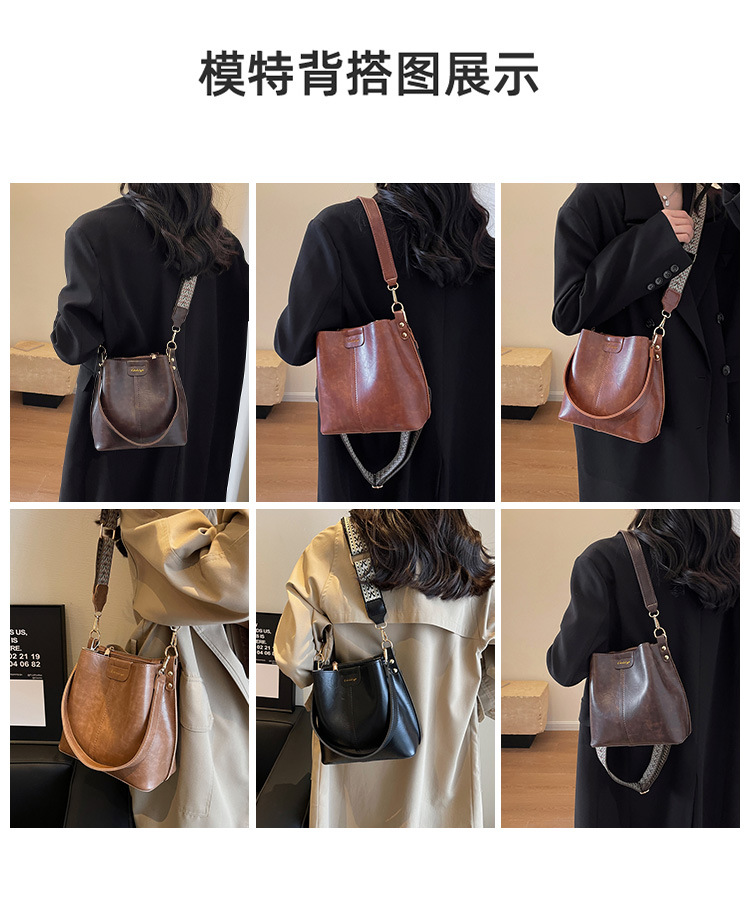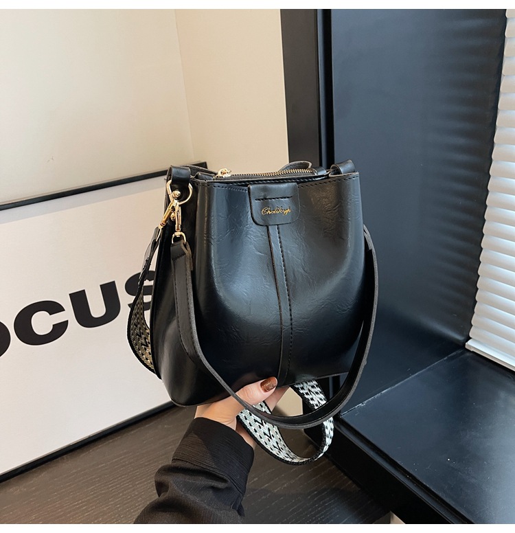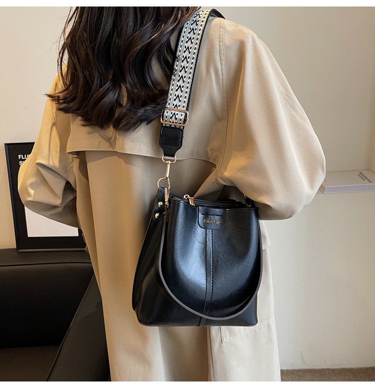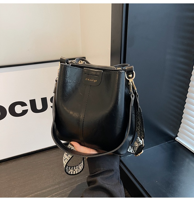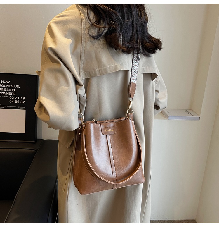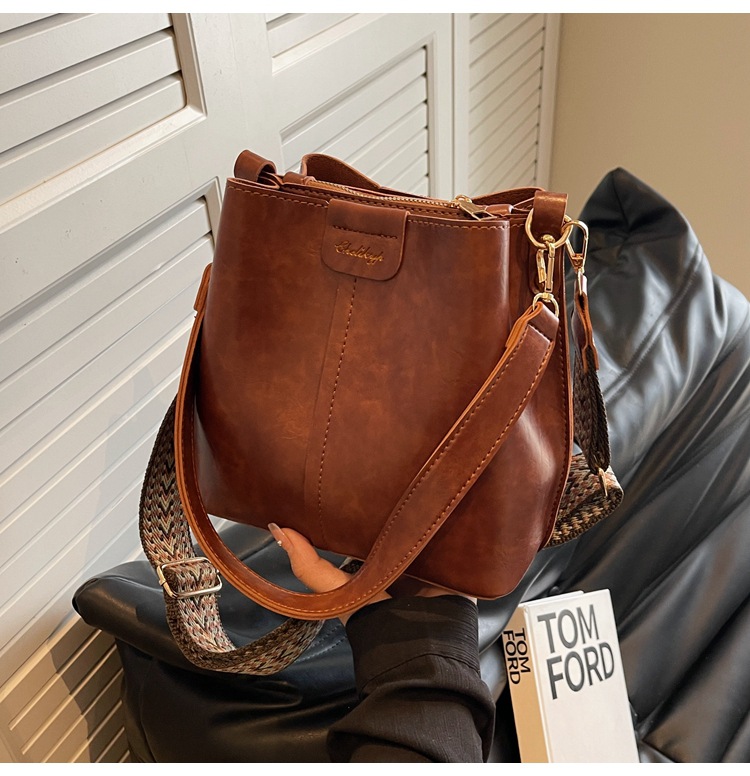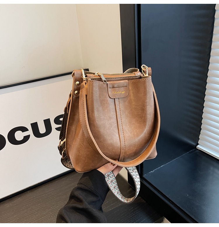 包包女2025新款韩系百搭新款潮春夏复古单肩大容量宽带斜挎水桶包