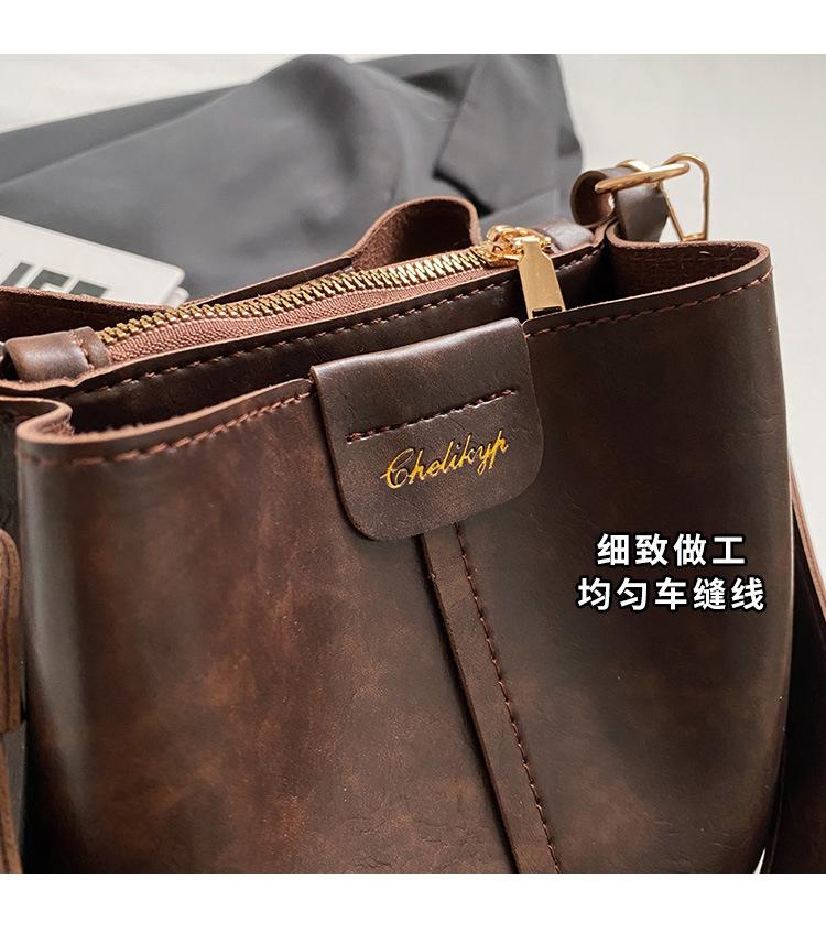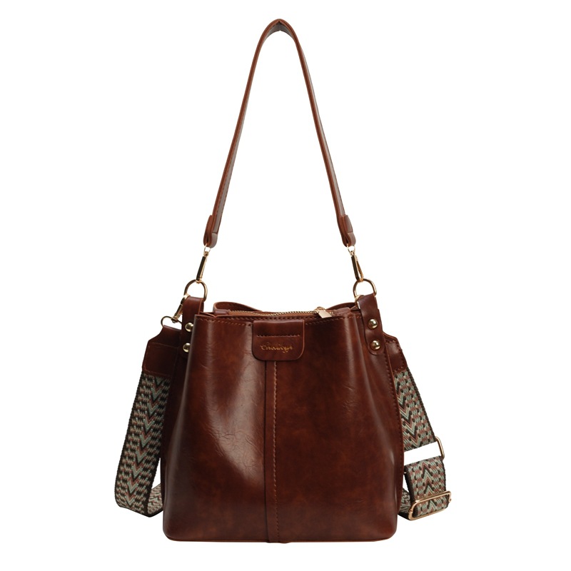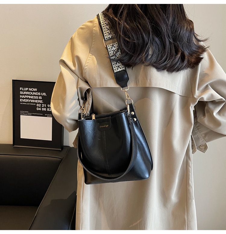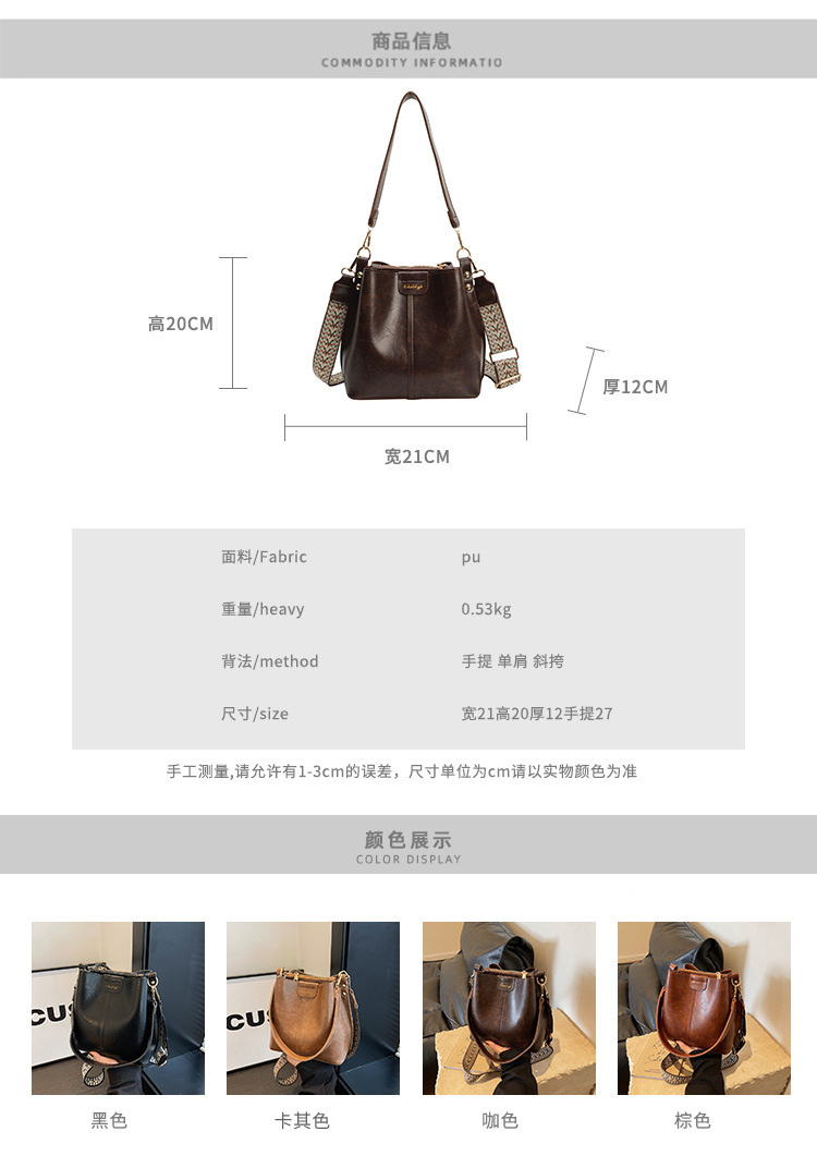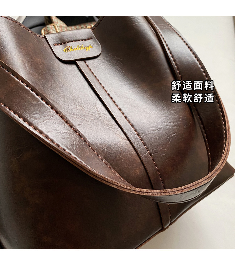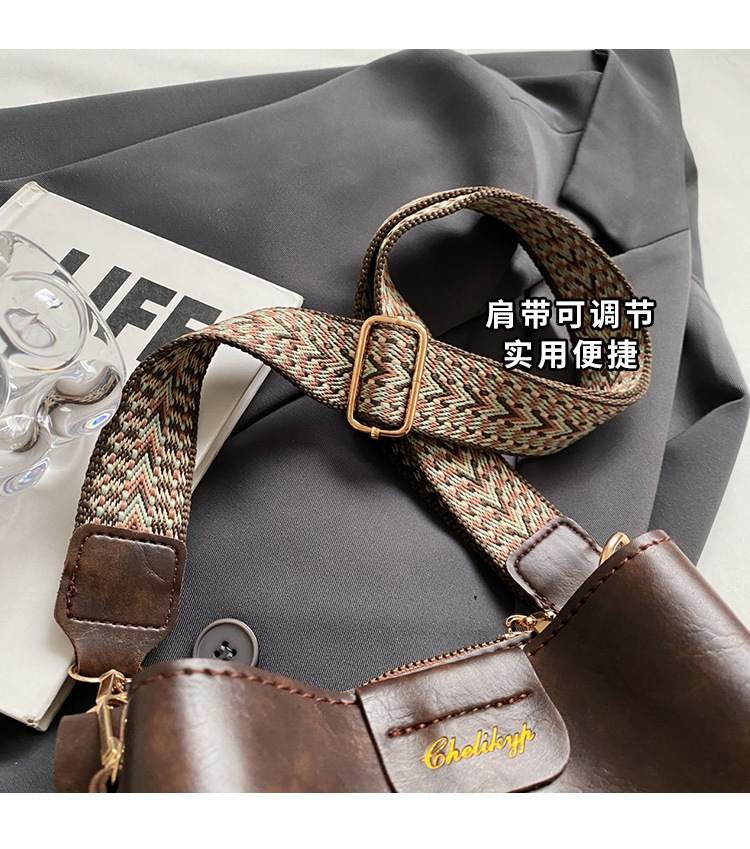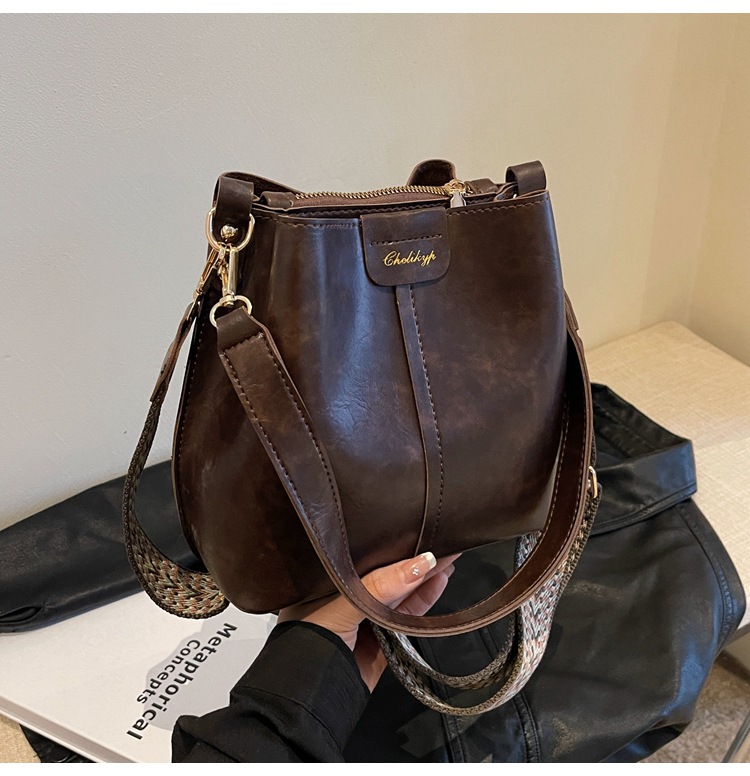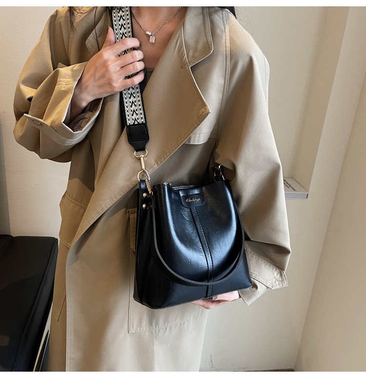包包女2025新款韩系百搭新款潮春夏复古单肩大容量宽带斜挎水桶包