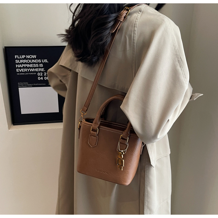 女包2025新款斜挎包秋冬水桶包复古百搭高级感小众单肩手提包