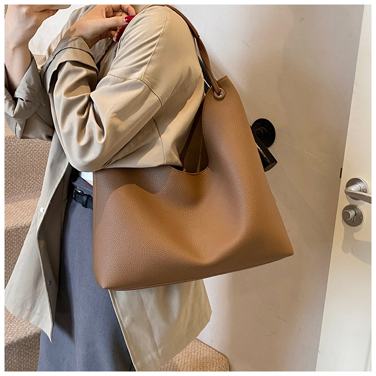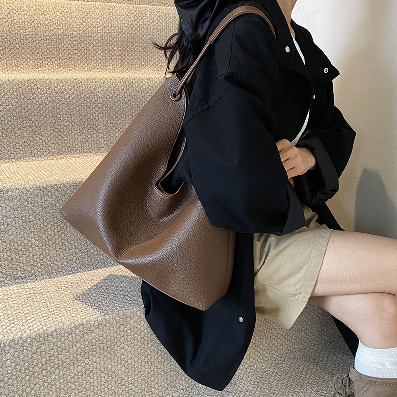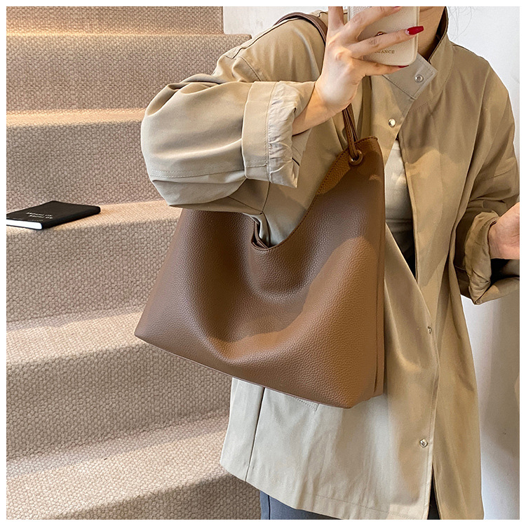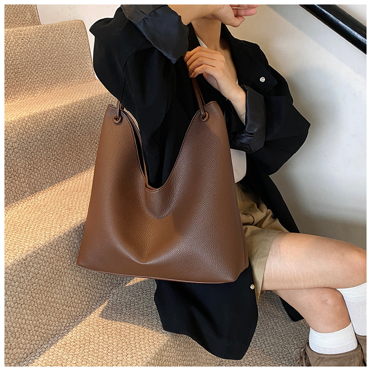 高级感复古大容量包包女士2025新款休闲百搭单肩包托特水桶包