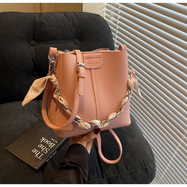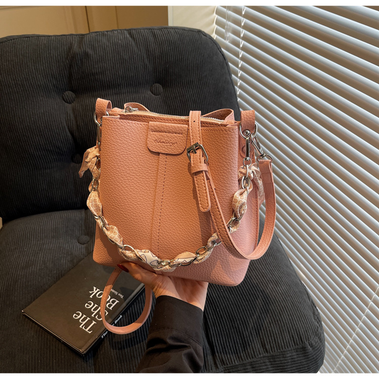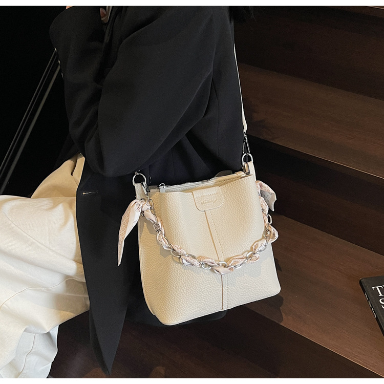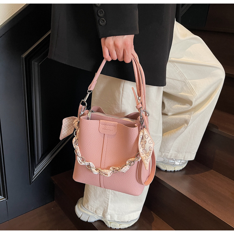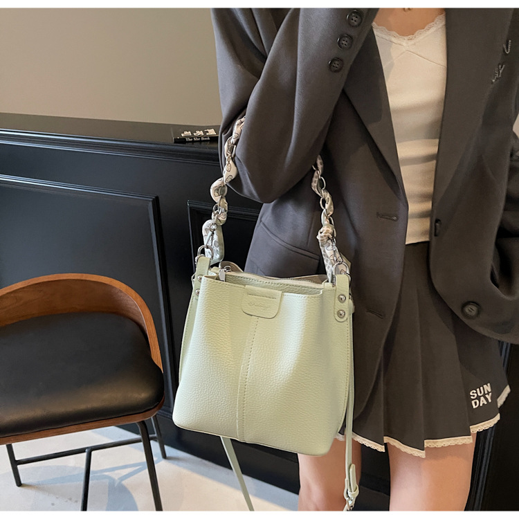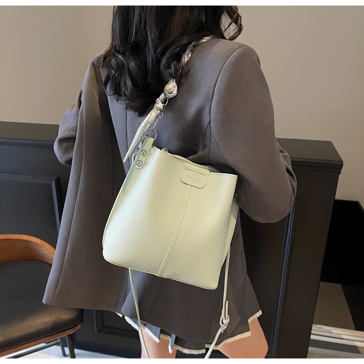 跨境流行复古小众配色手提水桶包包女2025新款通勤百搭单肩斜挎包
