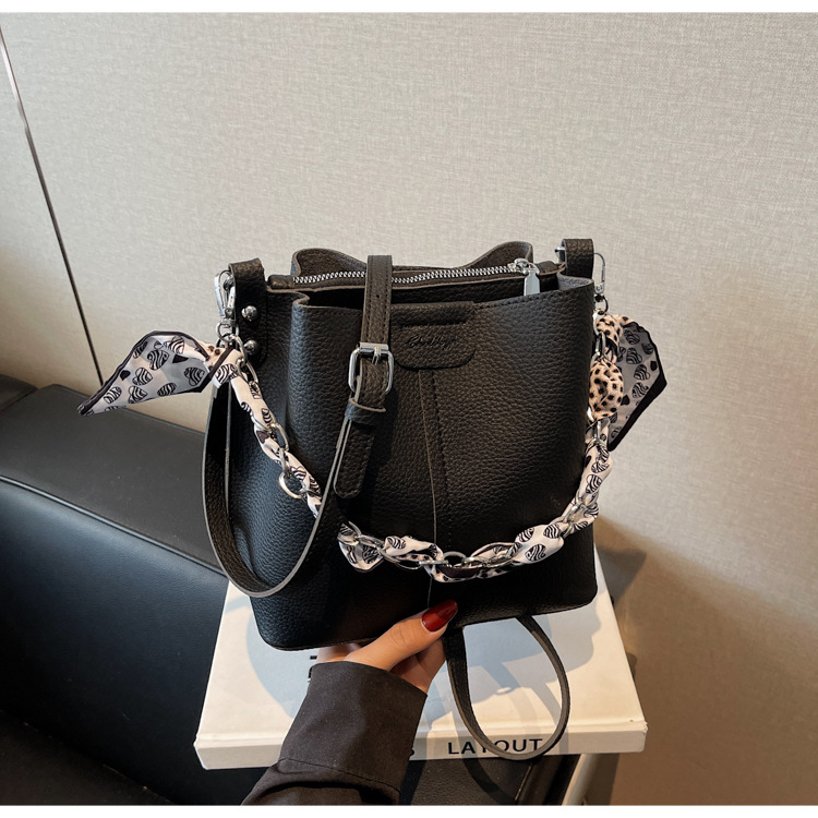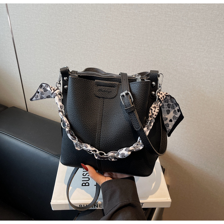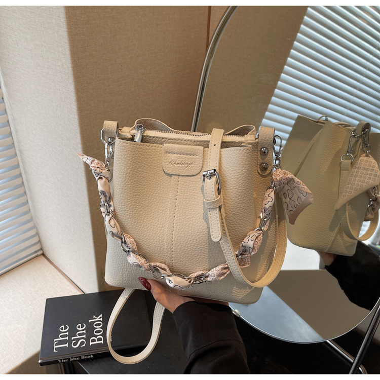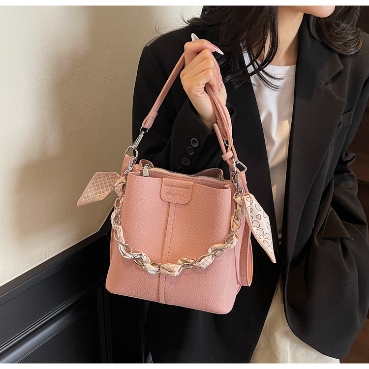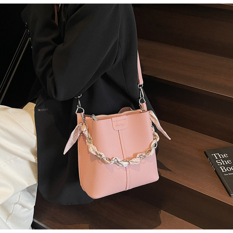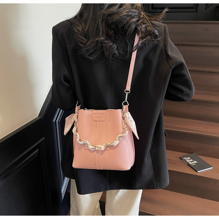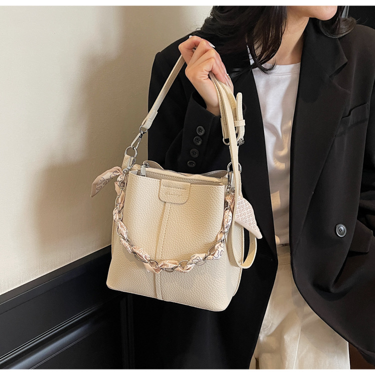 跨境流行复古小众配色手提水桶包包女2025新款通勤百搭单肩斜挎包