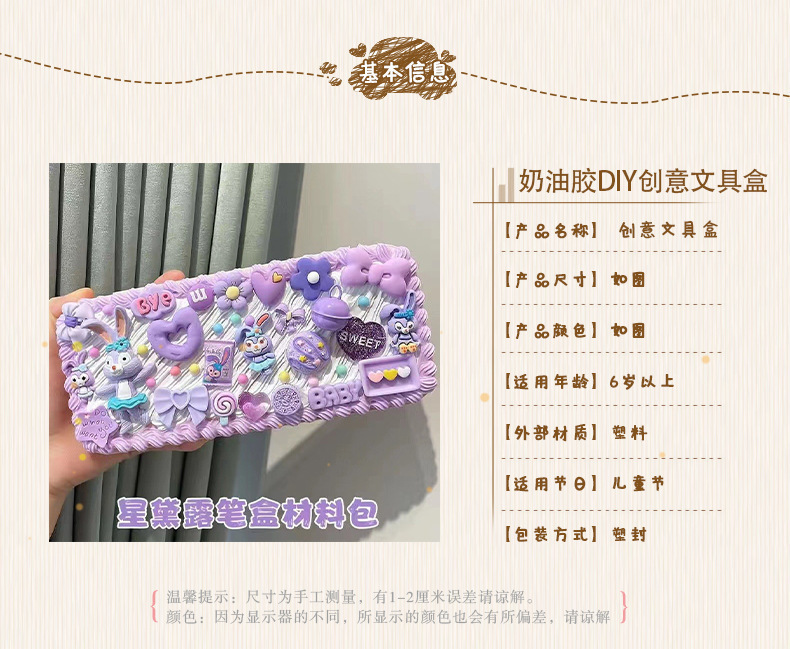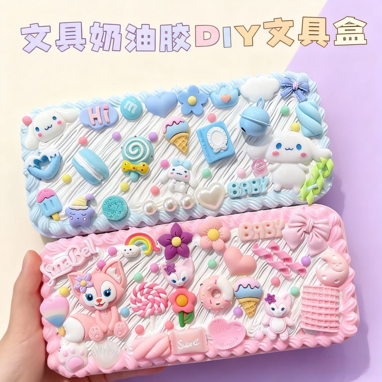 儿童文具盒奶油胶diy手工笔盒创意粘贴男女可爱小学生桌面铅笔盒