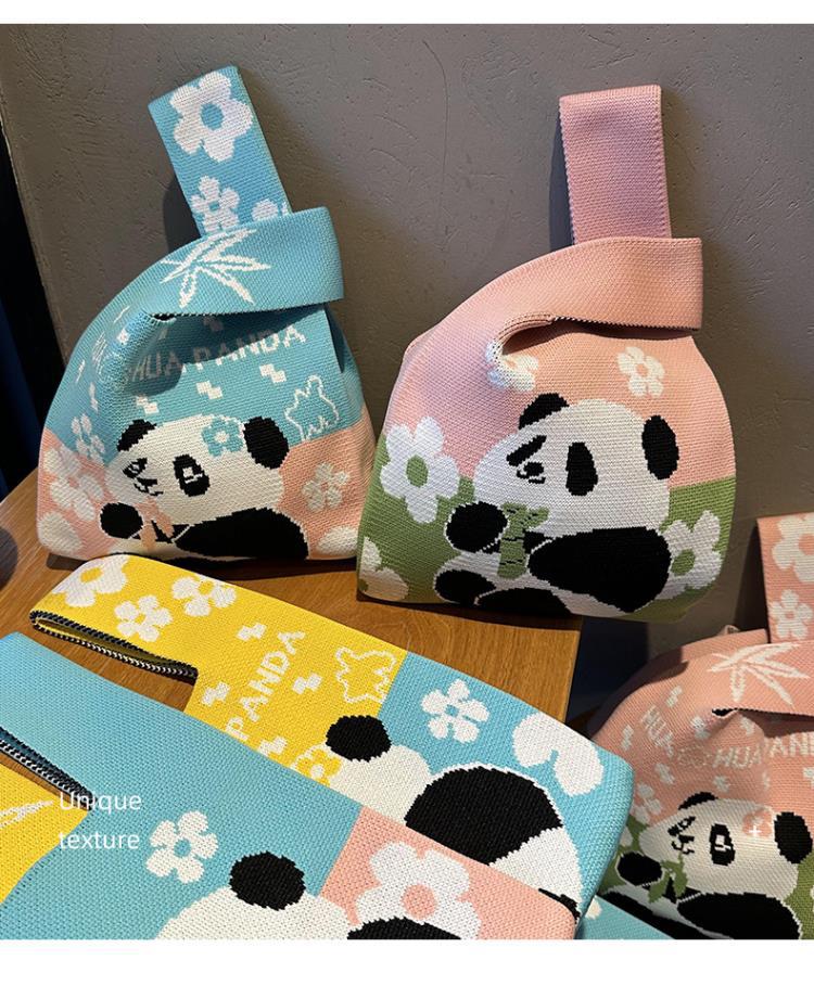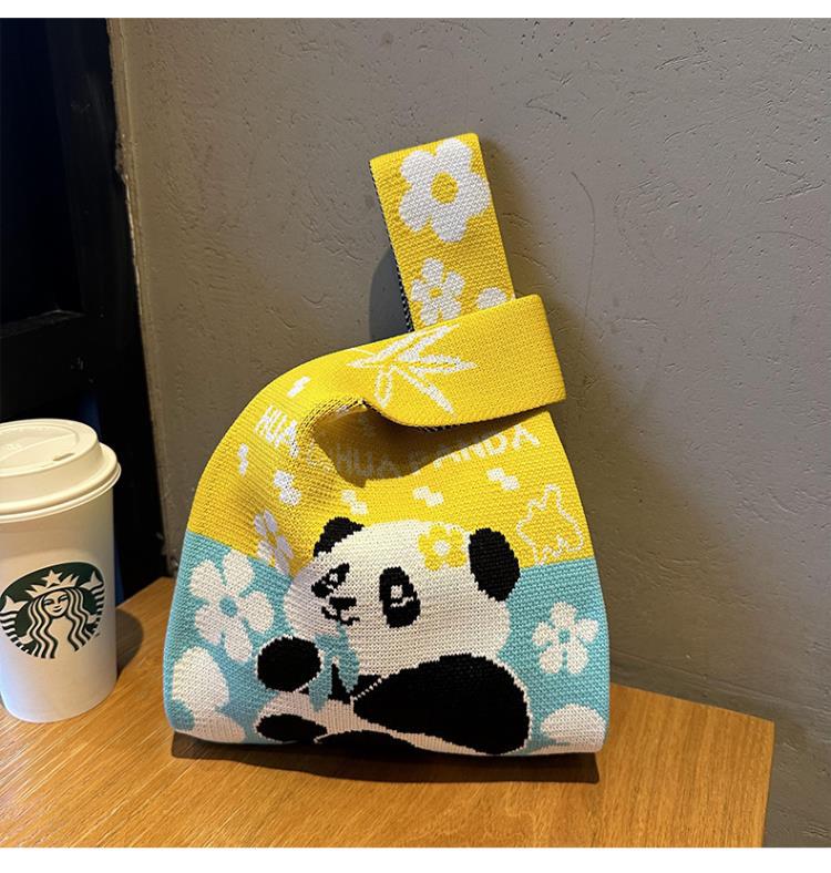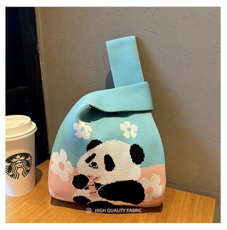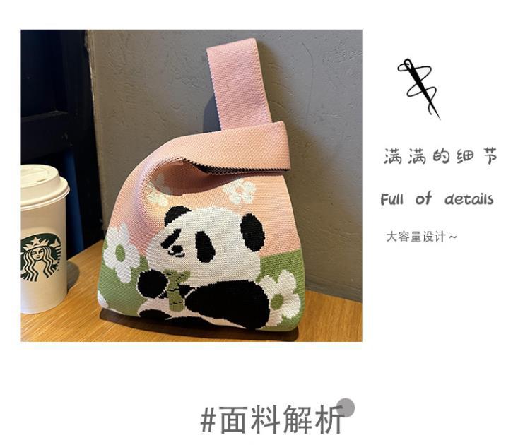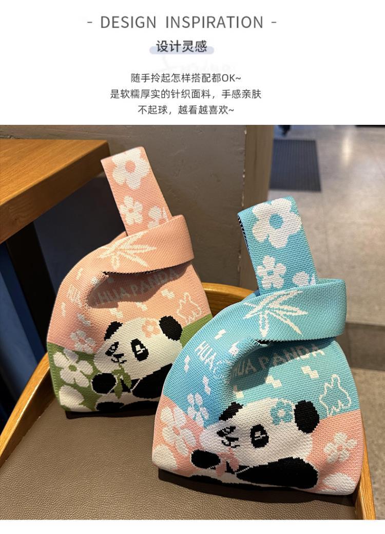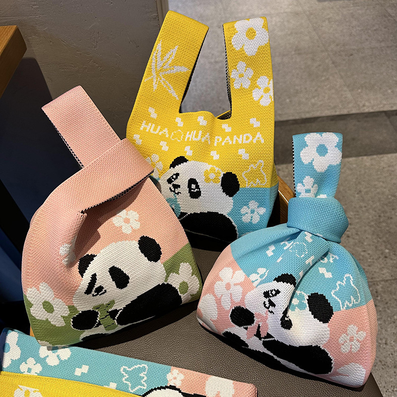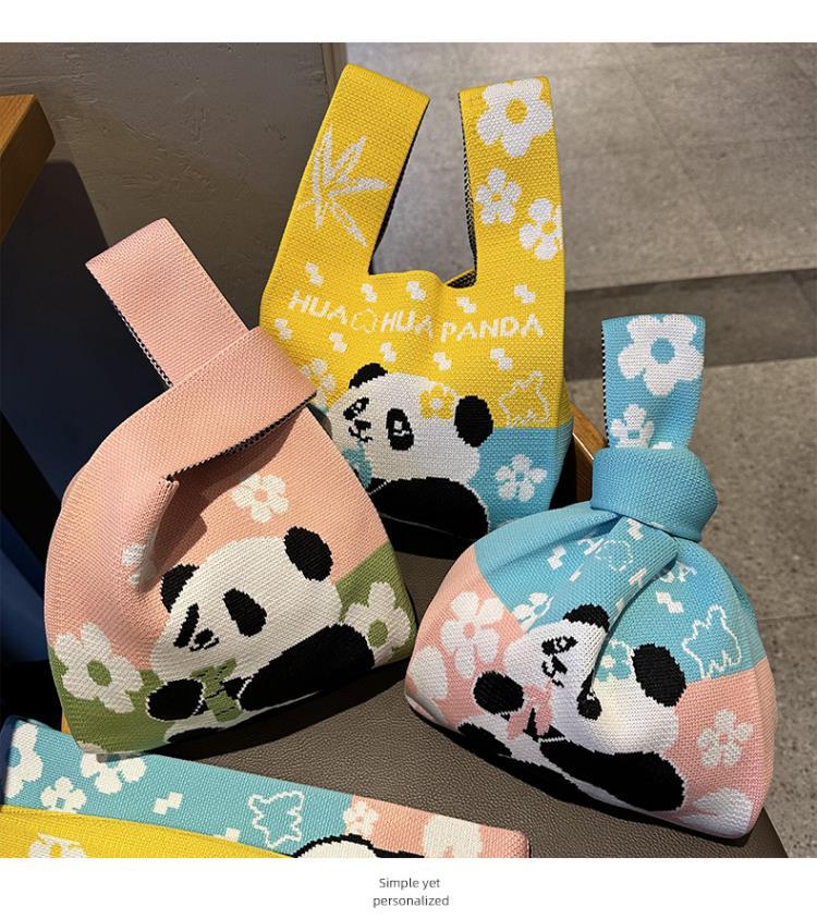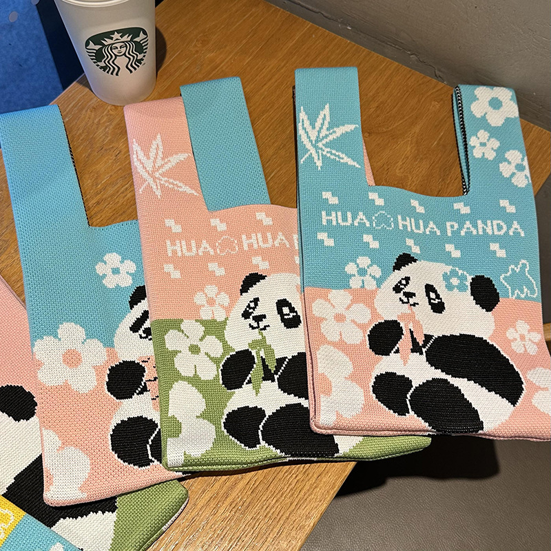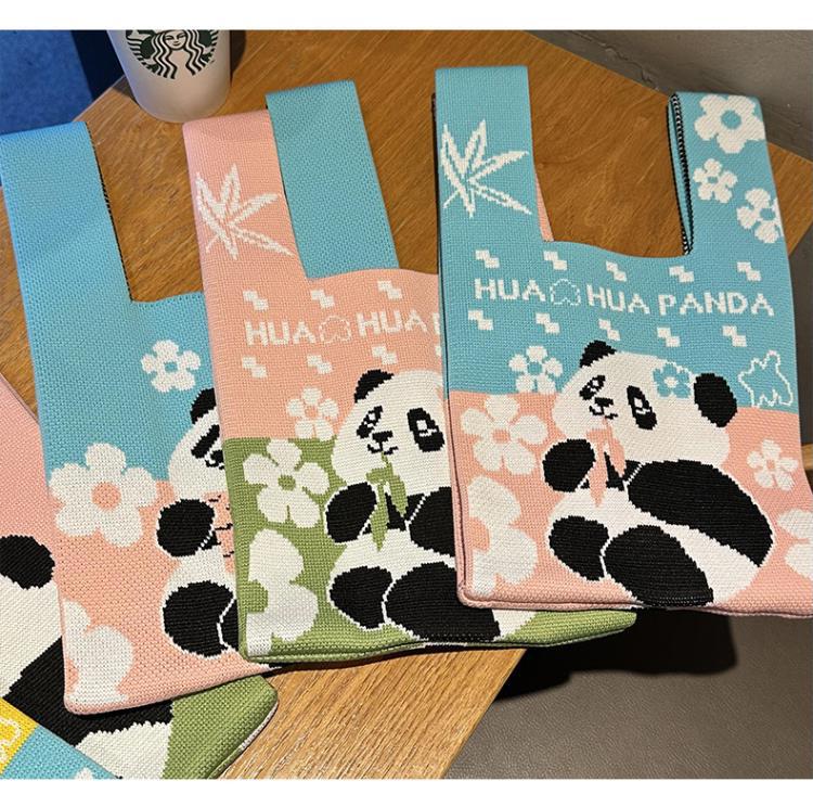 熊猫针织包可定制加logo儿童生日伴手礼袋编织手拎马甲背心包批发