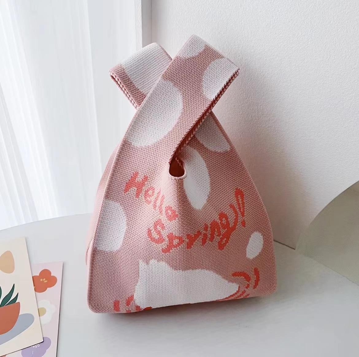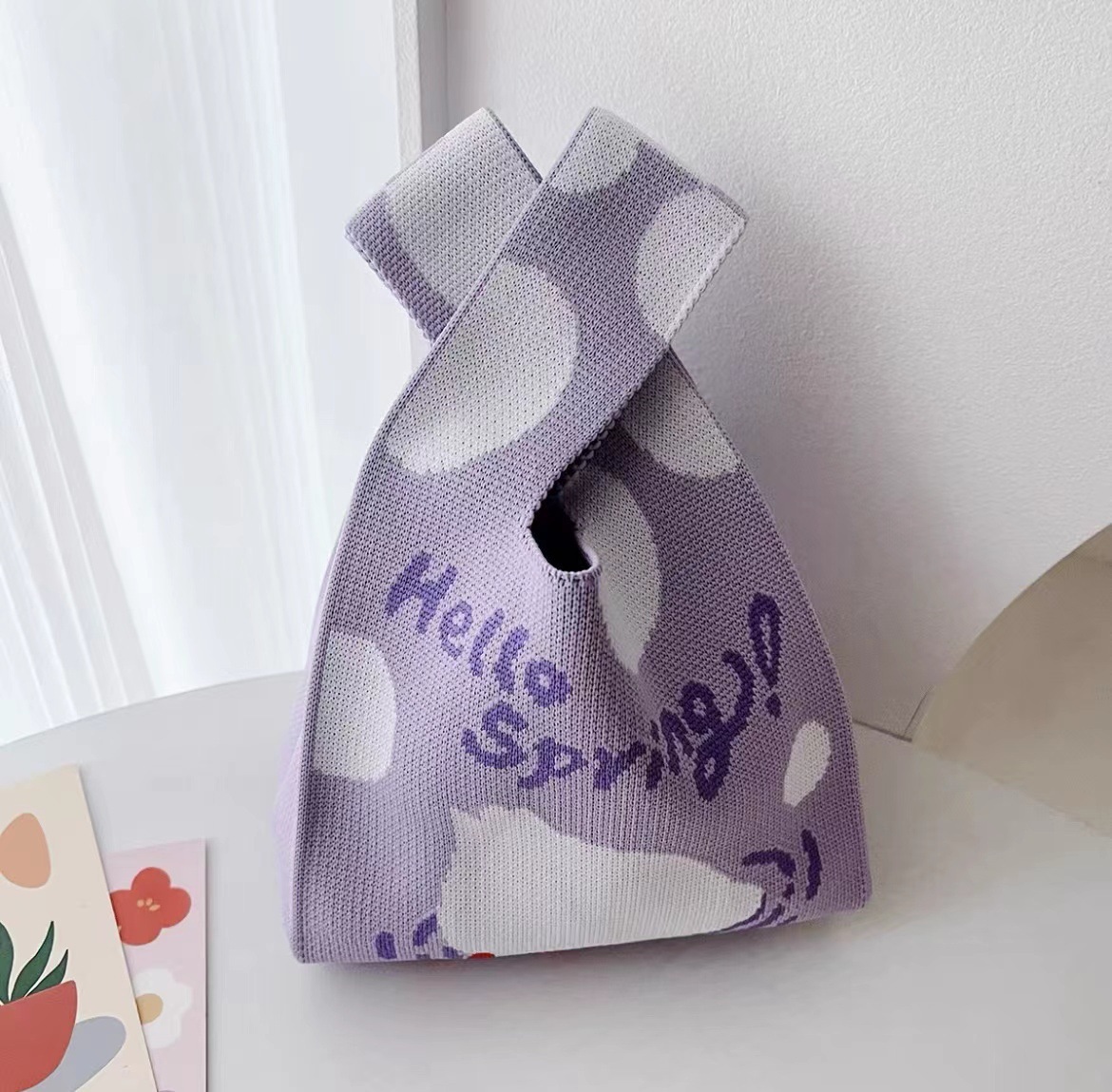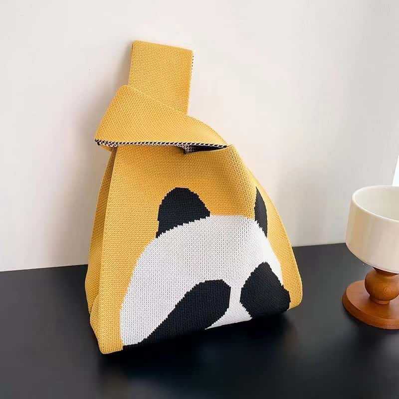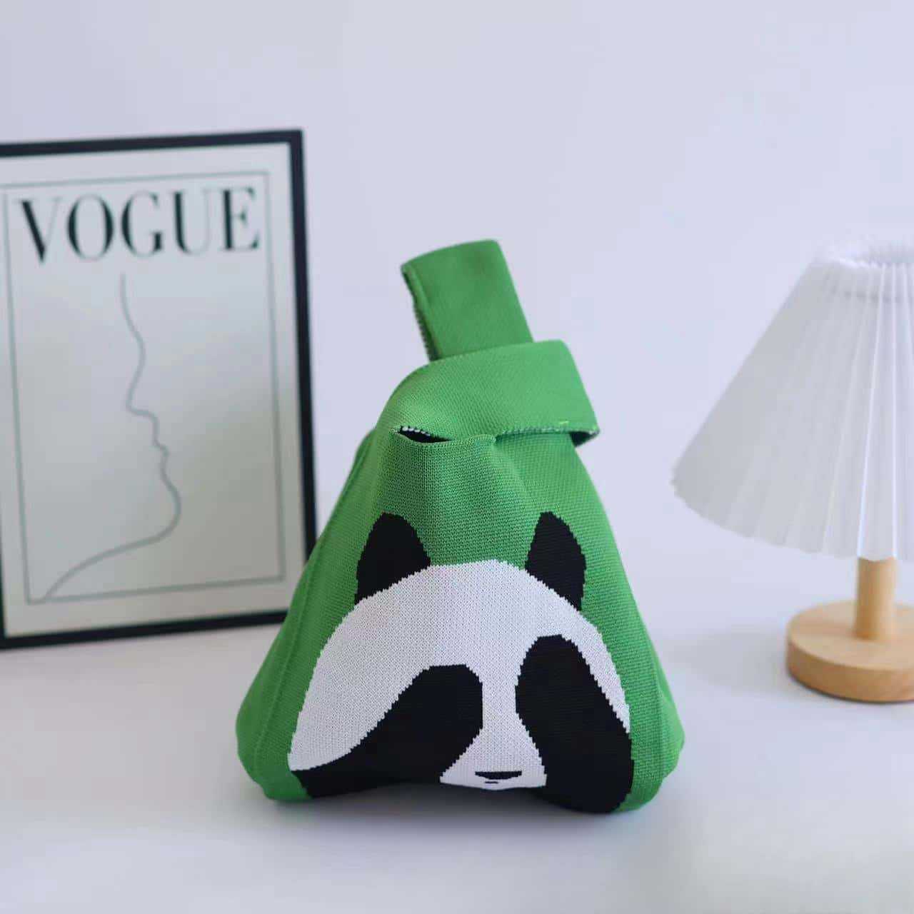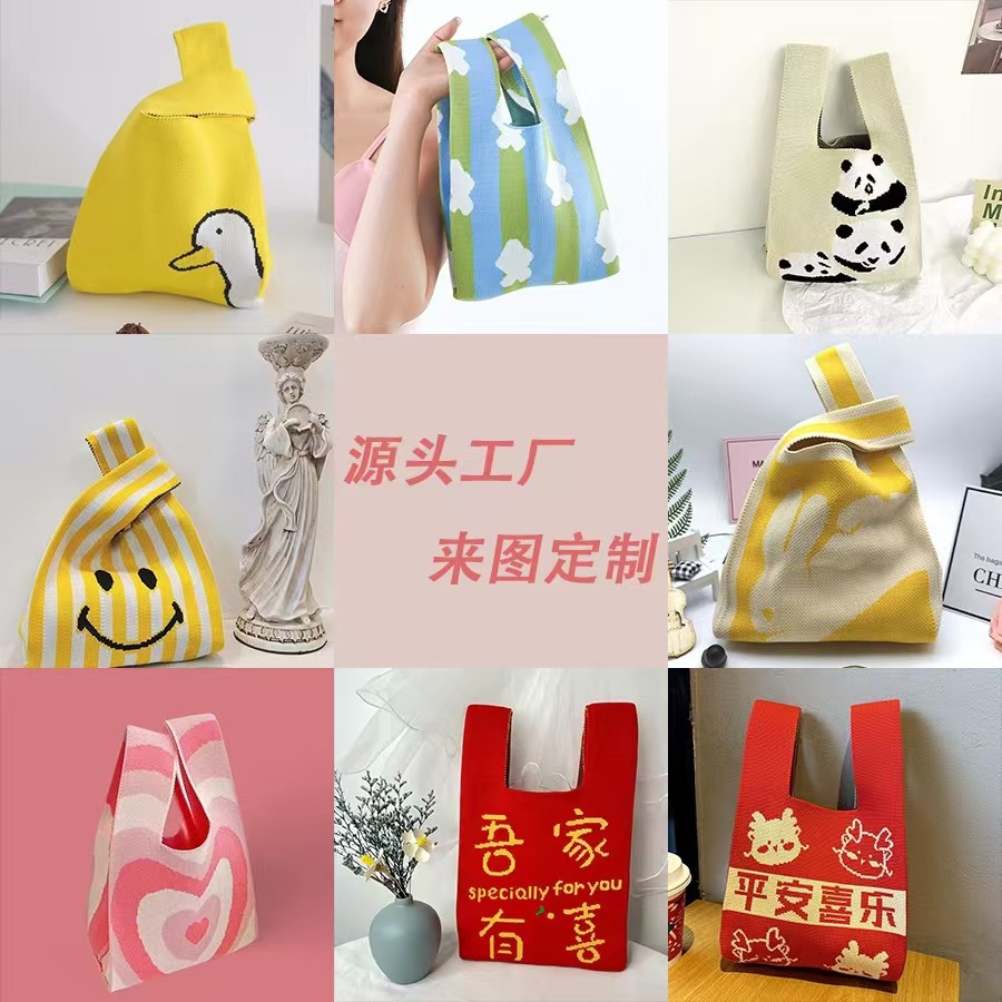 熊猫针织包可定制加logo儿童生日伴手礼袋编织手拎马甲背心包批发