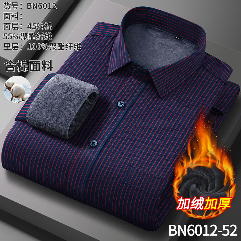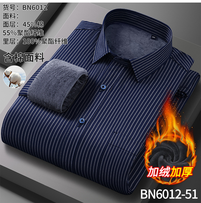 秋冬新款商务休闲保暖衬衫新疆棉抗皱免烫衬衣轻奢级条纹正装