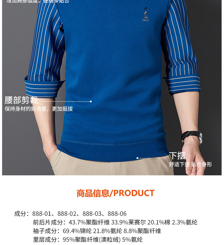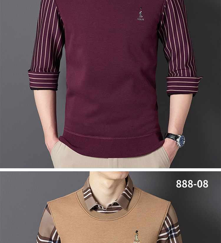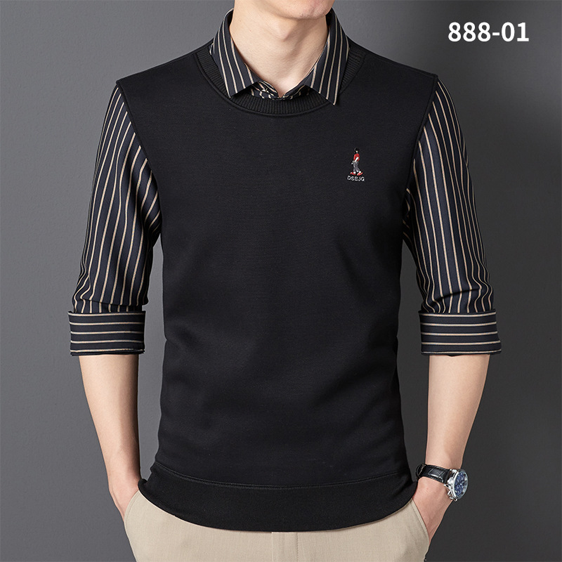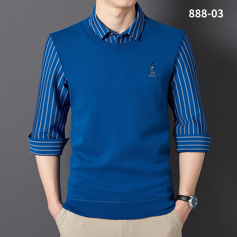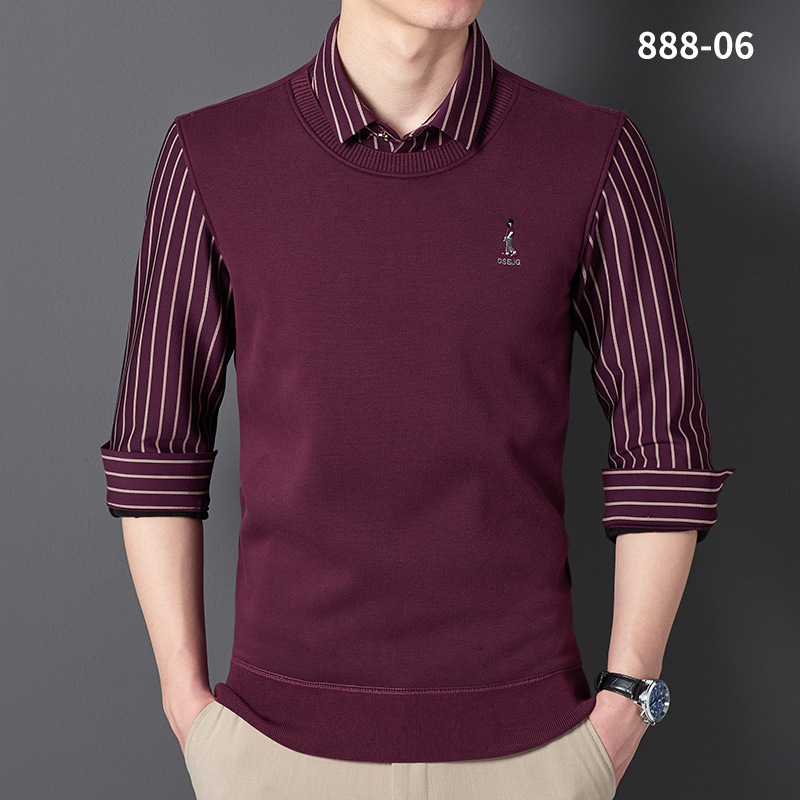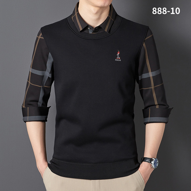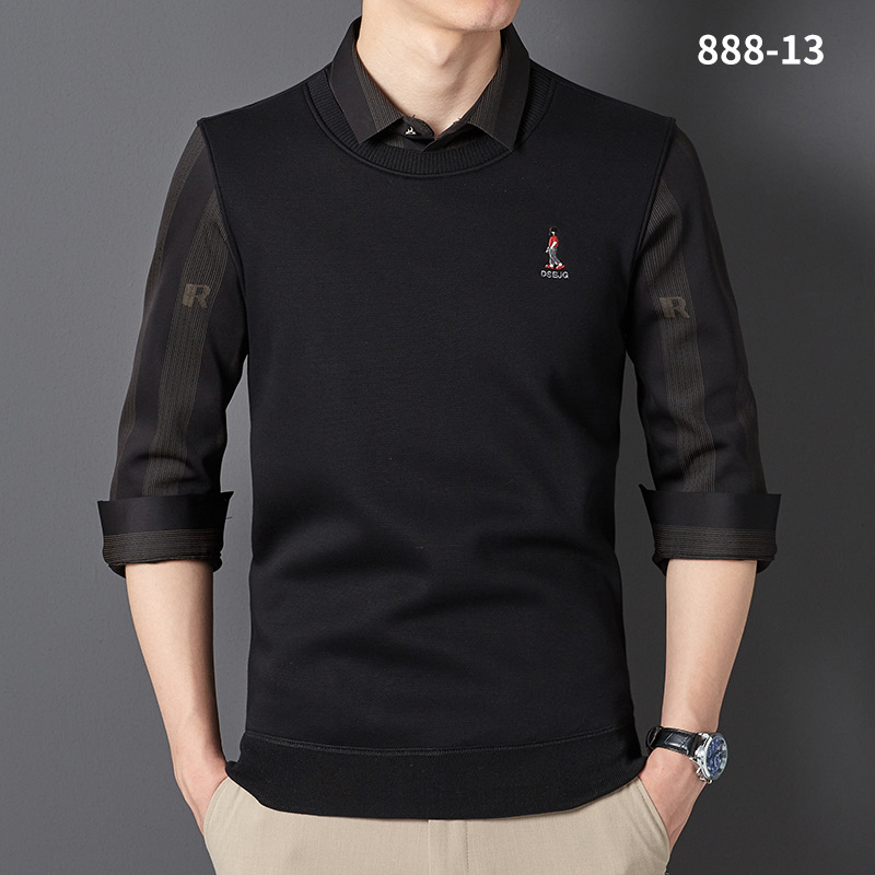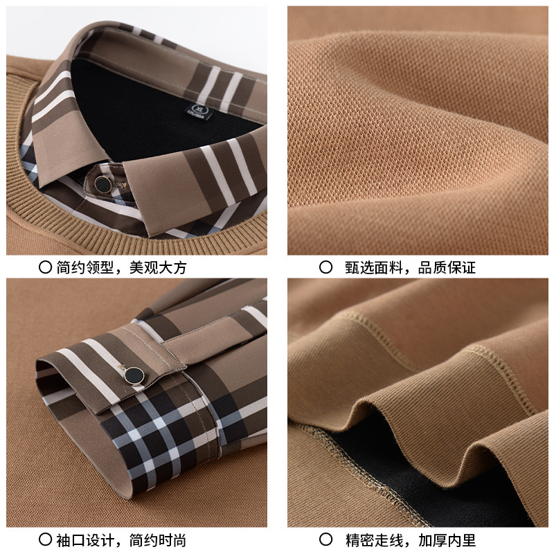 秋冬新款男士一体绒假两件商务休闲保暖衬衫潮流衬衫领针织打底衫