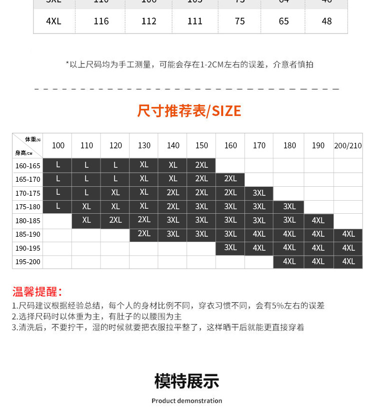 | 4XL(180-210斤) | USD $0.0 | 500 piece available |