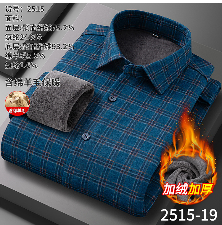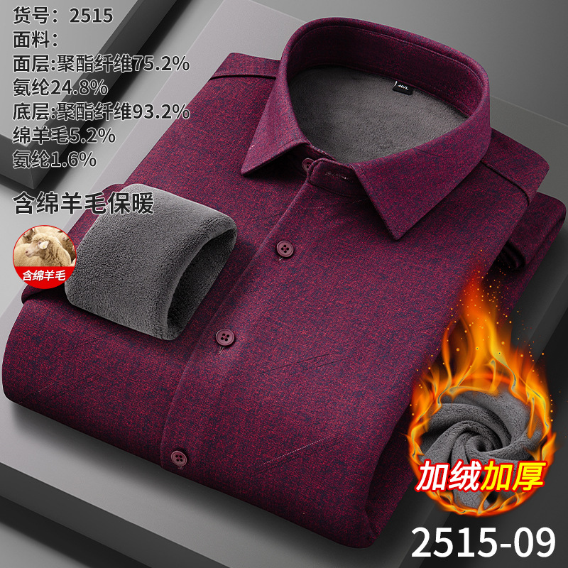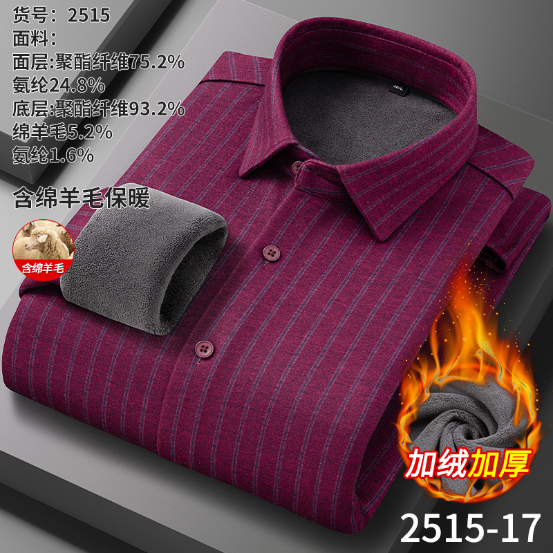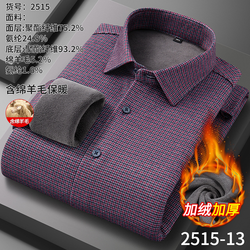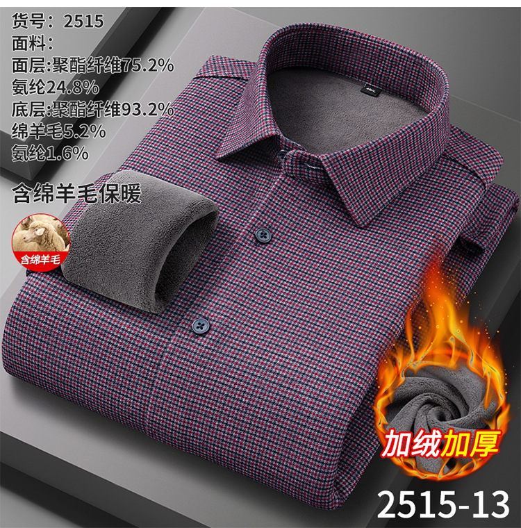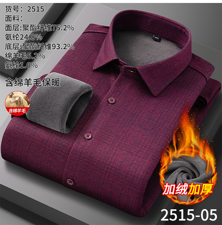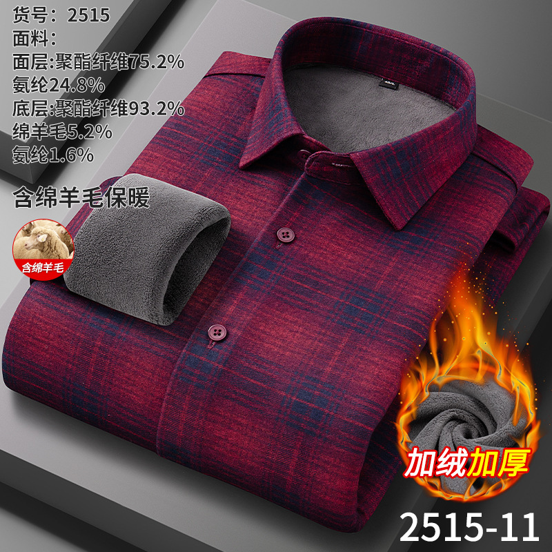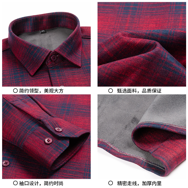 轻奢绵羊毛商务保暖衬衣秋冬休闲免烫红色格纹一体绒内搭衬衫新款