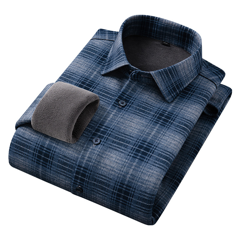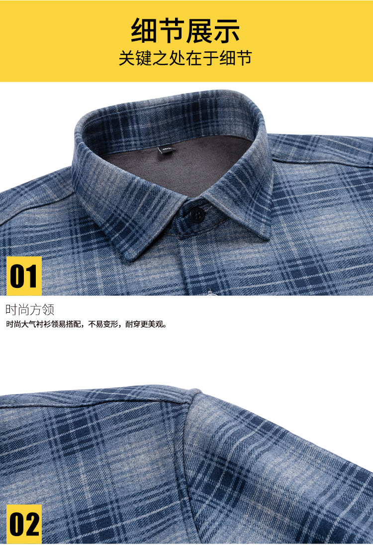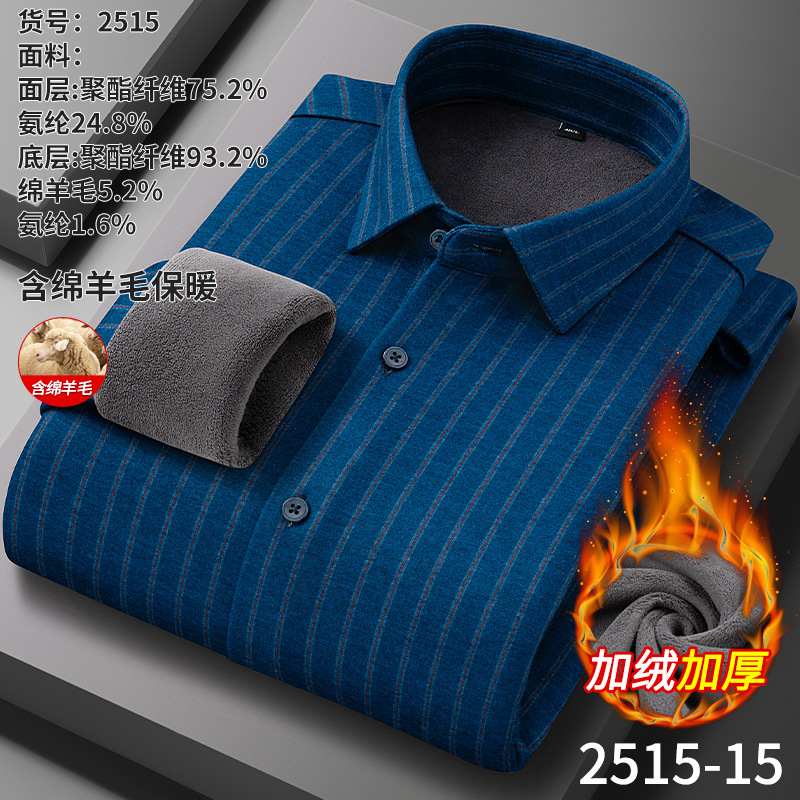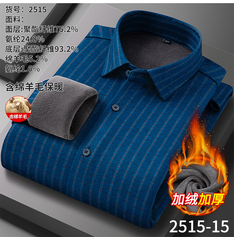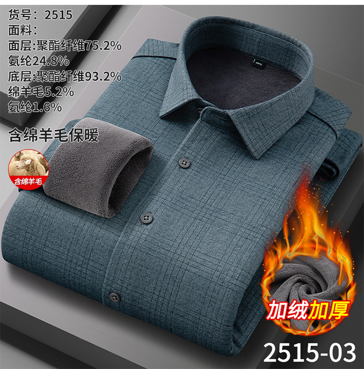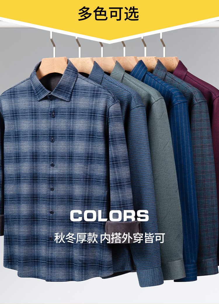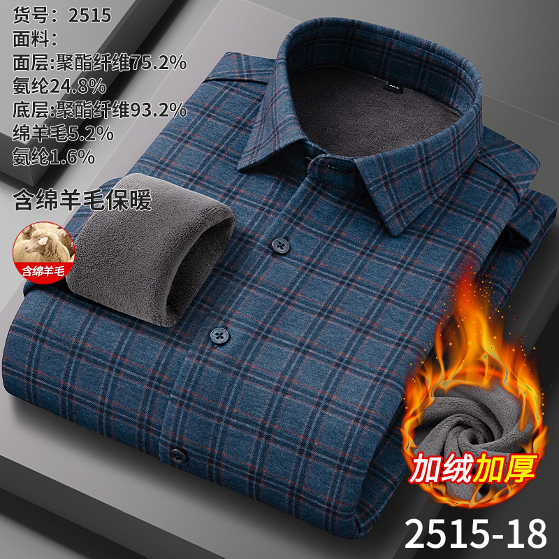 轻奢绵羊毛商务保暖衬衣秋冬休闲免烫红色格纹一体绒内搭衬衫新款