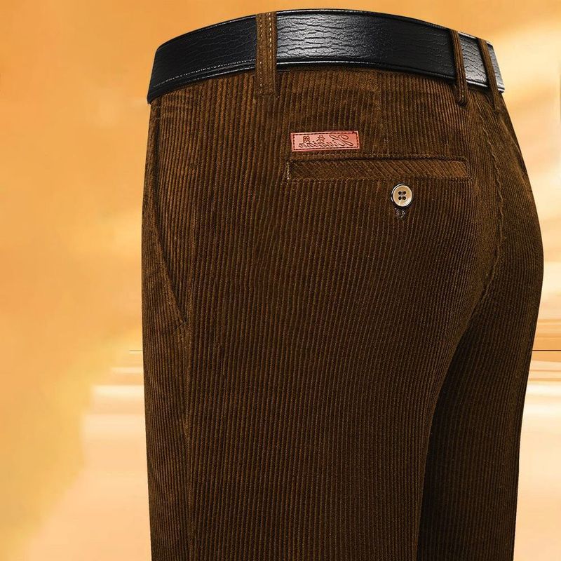 新款男士灯芯绒裤子中老年高腰厚款直筒裤高腰宽松粗条绒休闲长裤