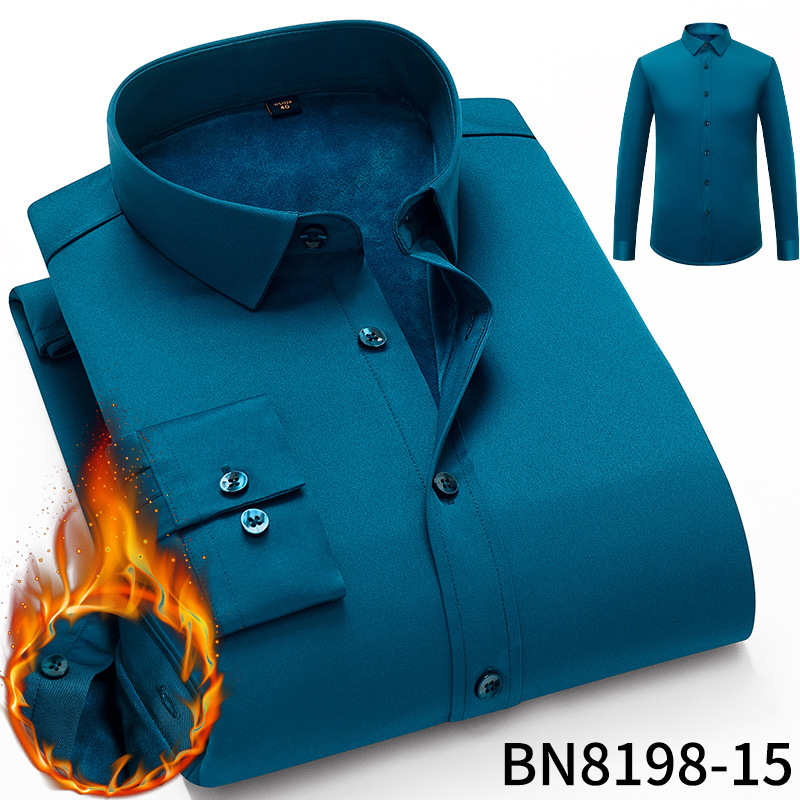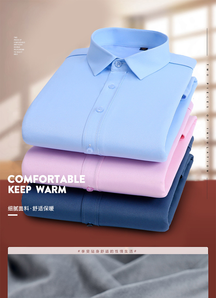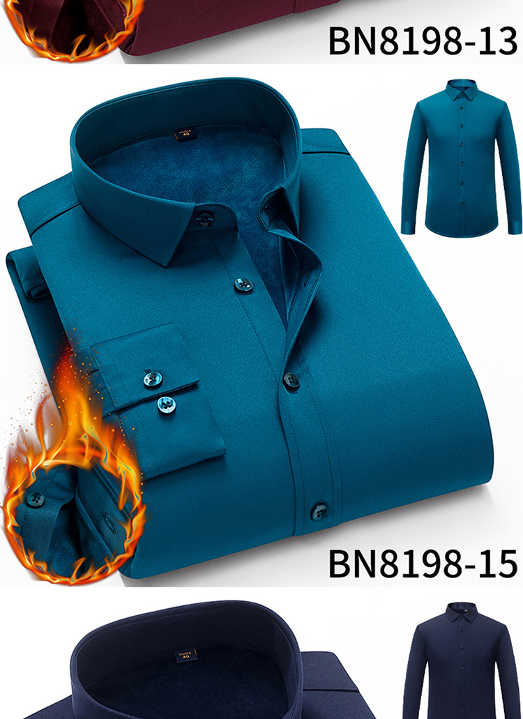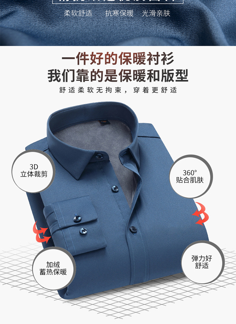 秋冬新款男士轻奢一体绒保暖衬衫加绒加厚长袖商务休闲抗皱男衬衫