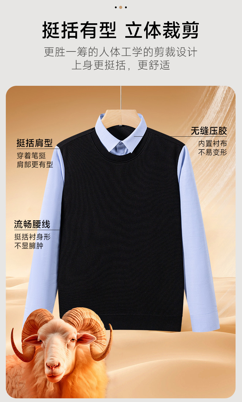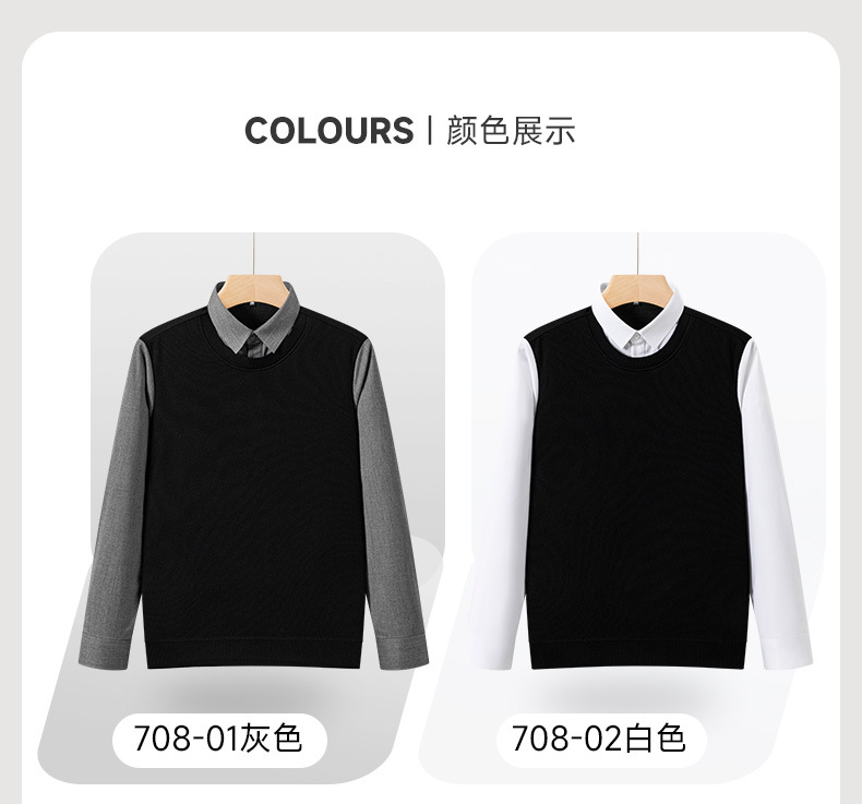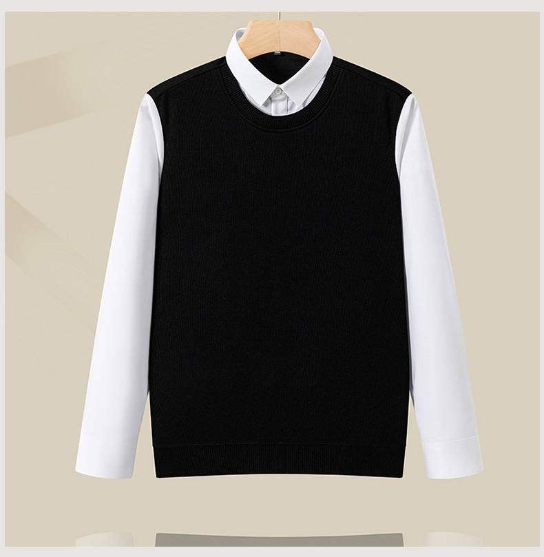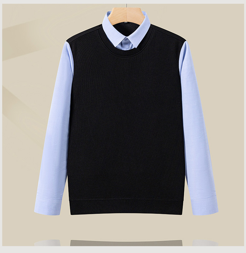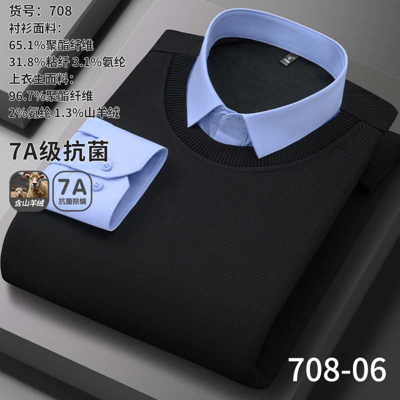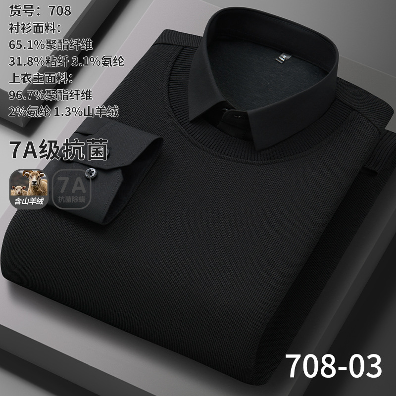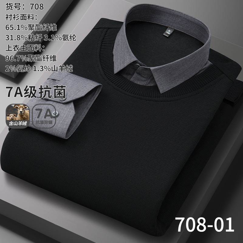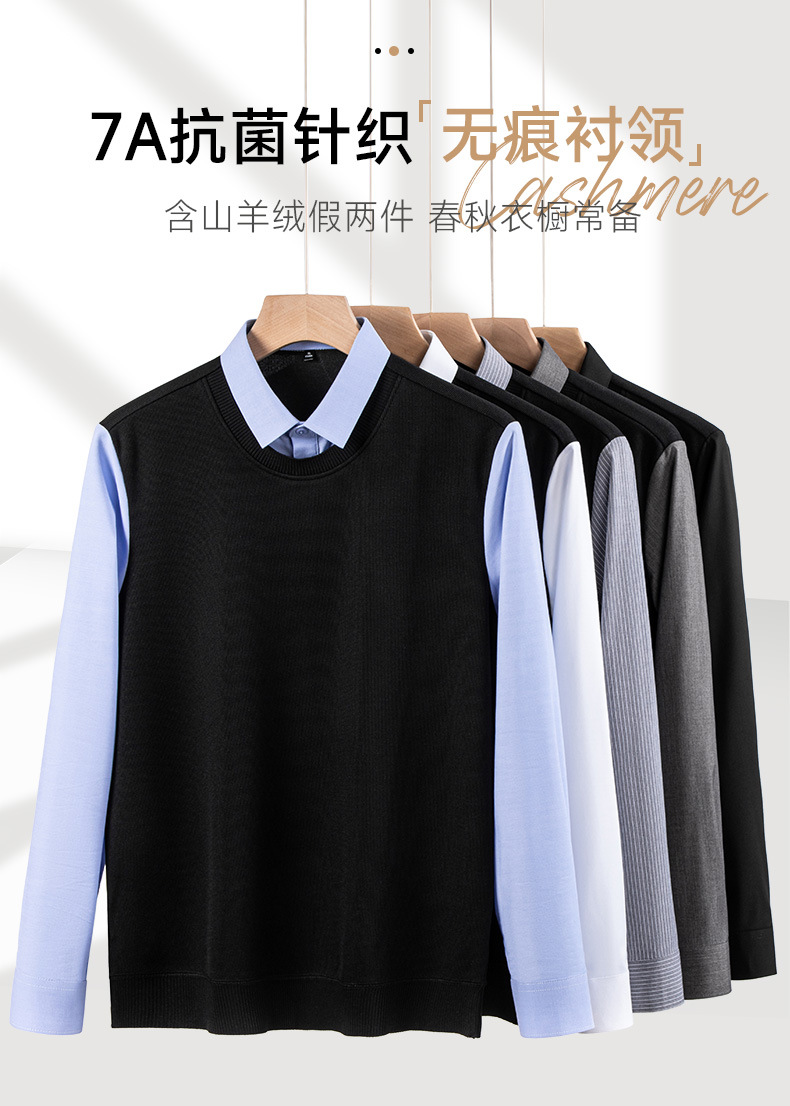 7A新款高端山羊绒针织衫衬衣男士商务免烫假两件打底衫内搭男