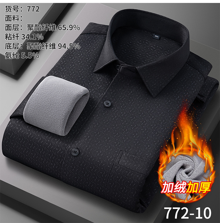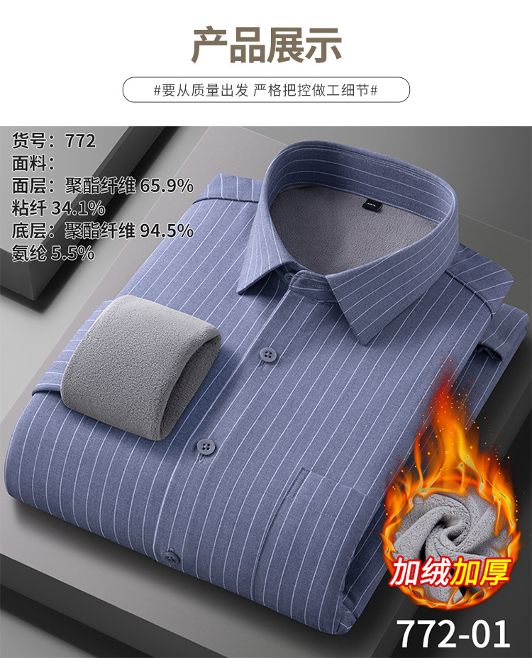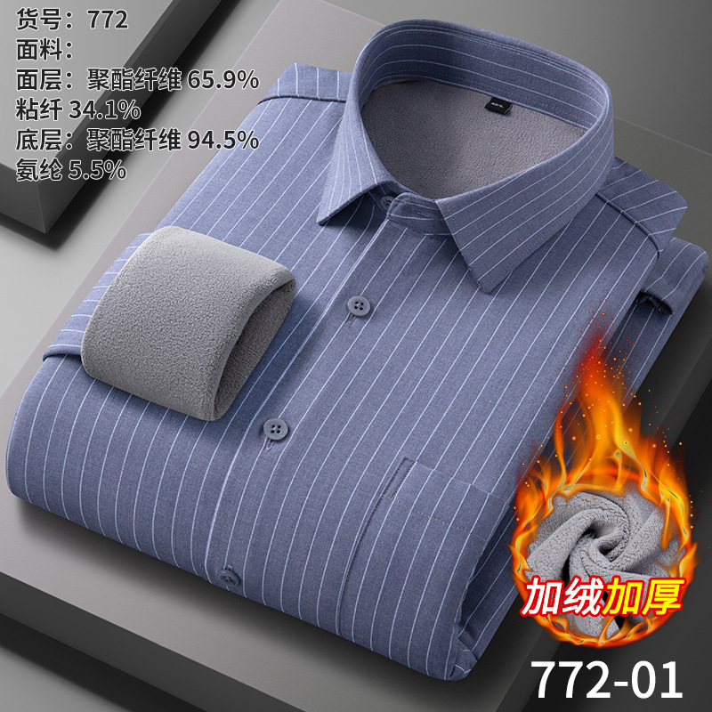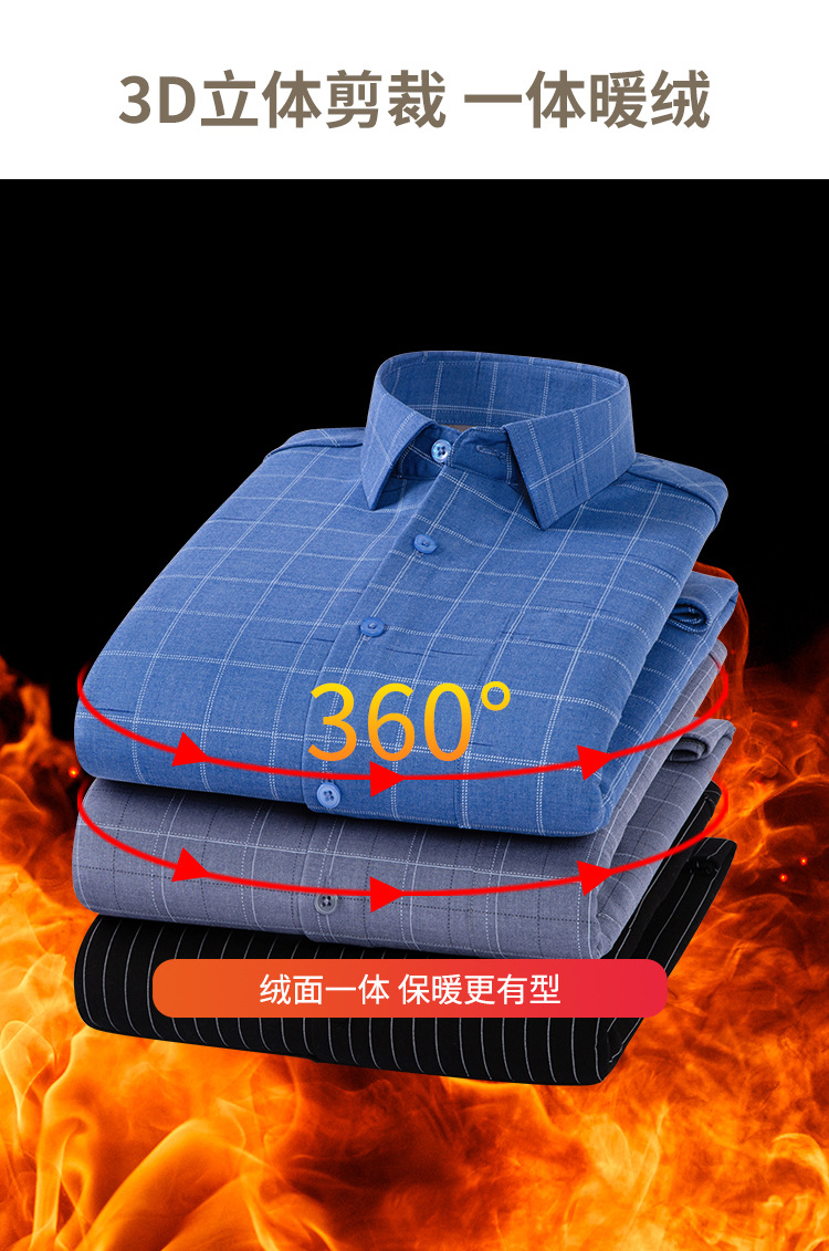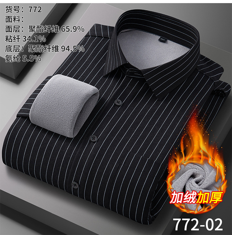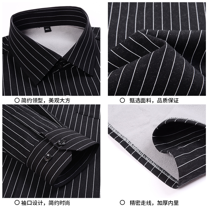 线下专柜同款保暖衬衣男士商务无痕免烫加绒加厚高端男装条纹衬衫