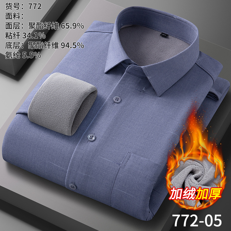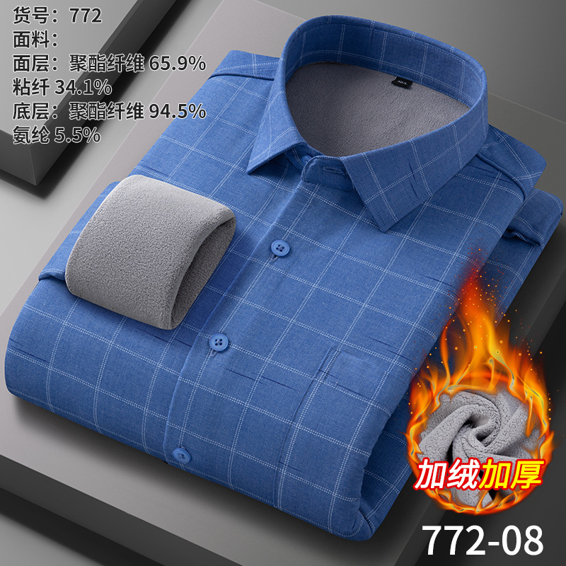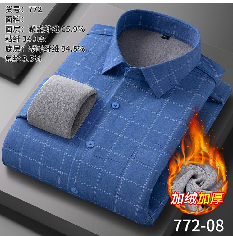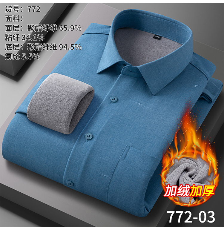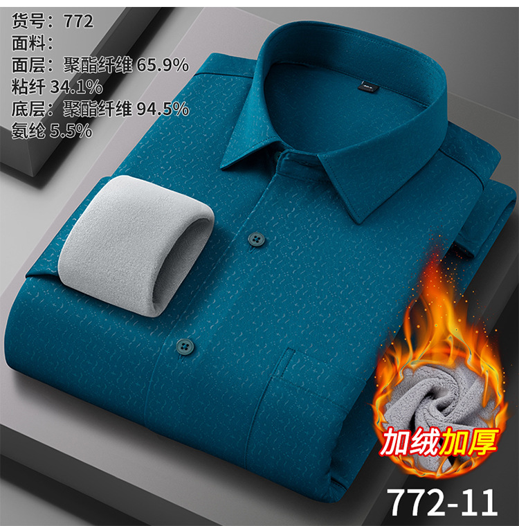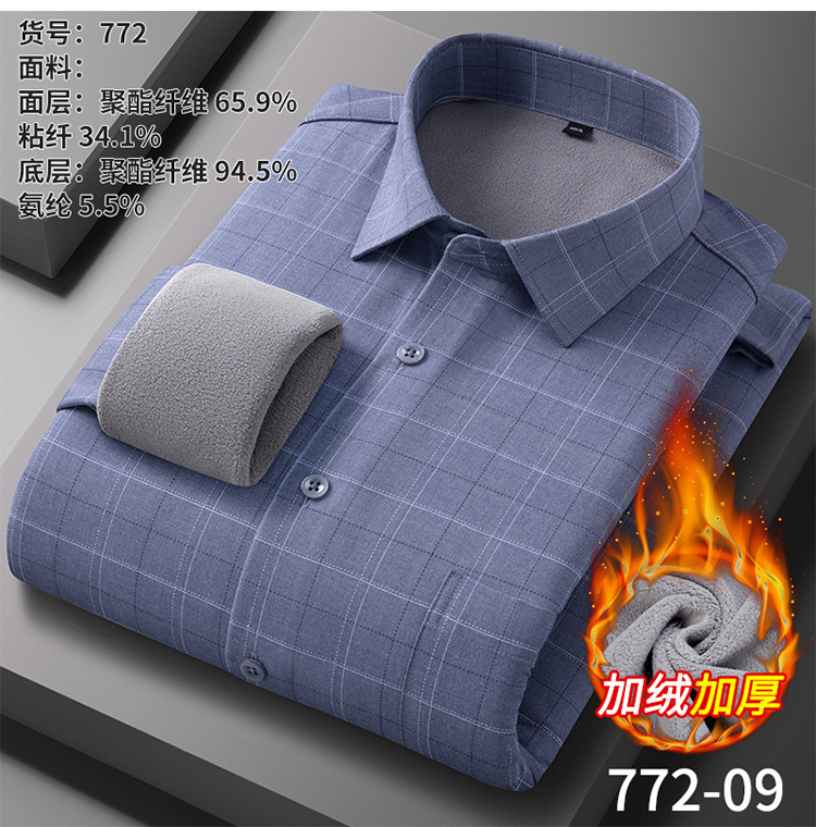 线下专柜同款保暖衬衣男士商务无痕免烫加绒加厚高端男装条纹衬衫