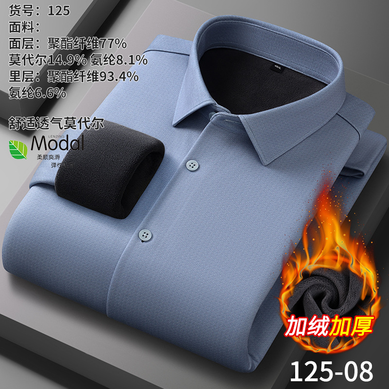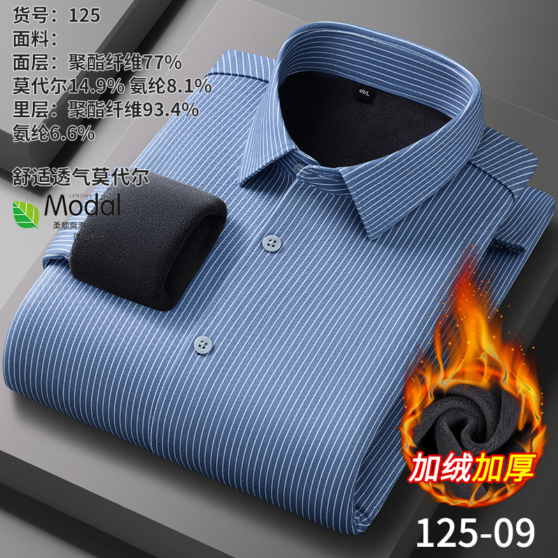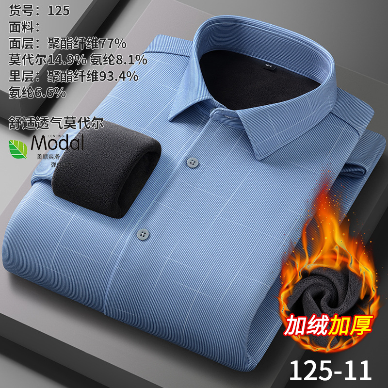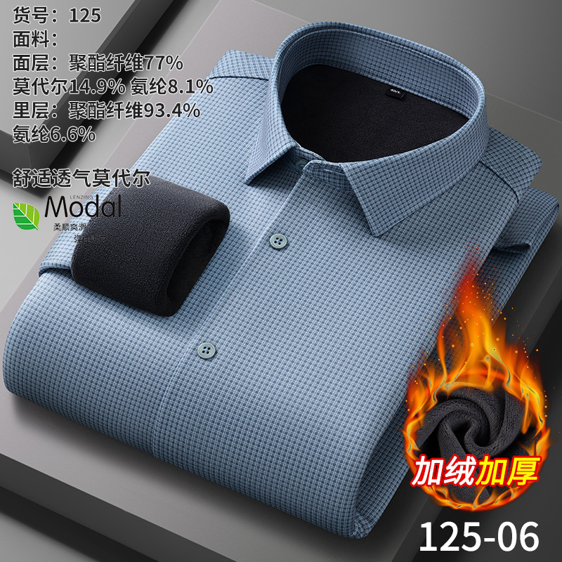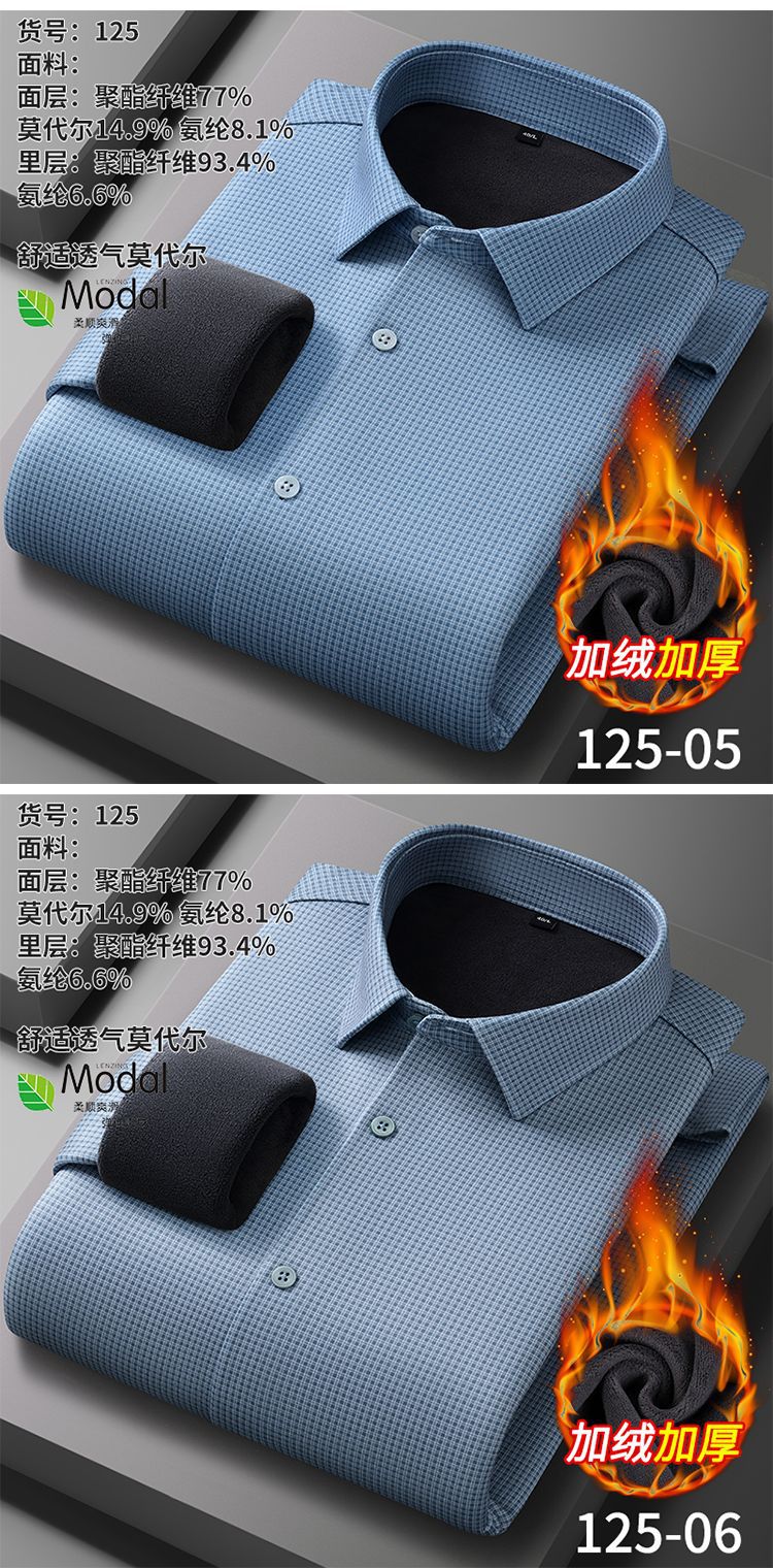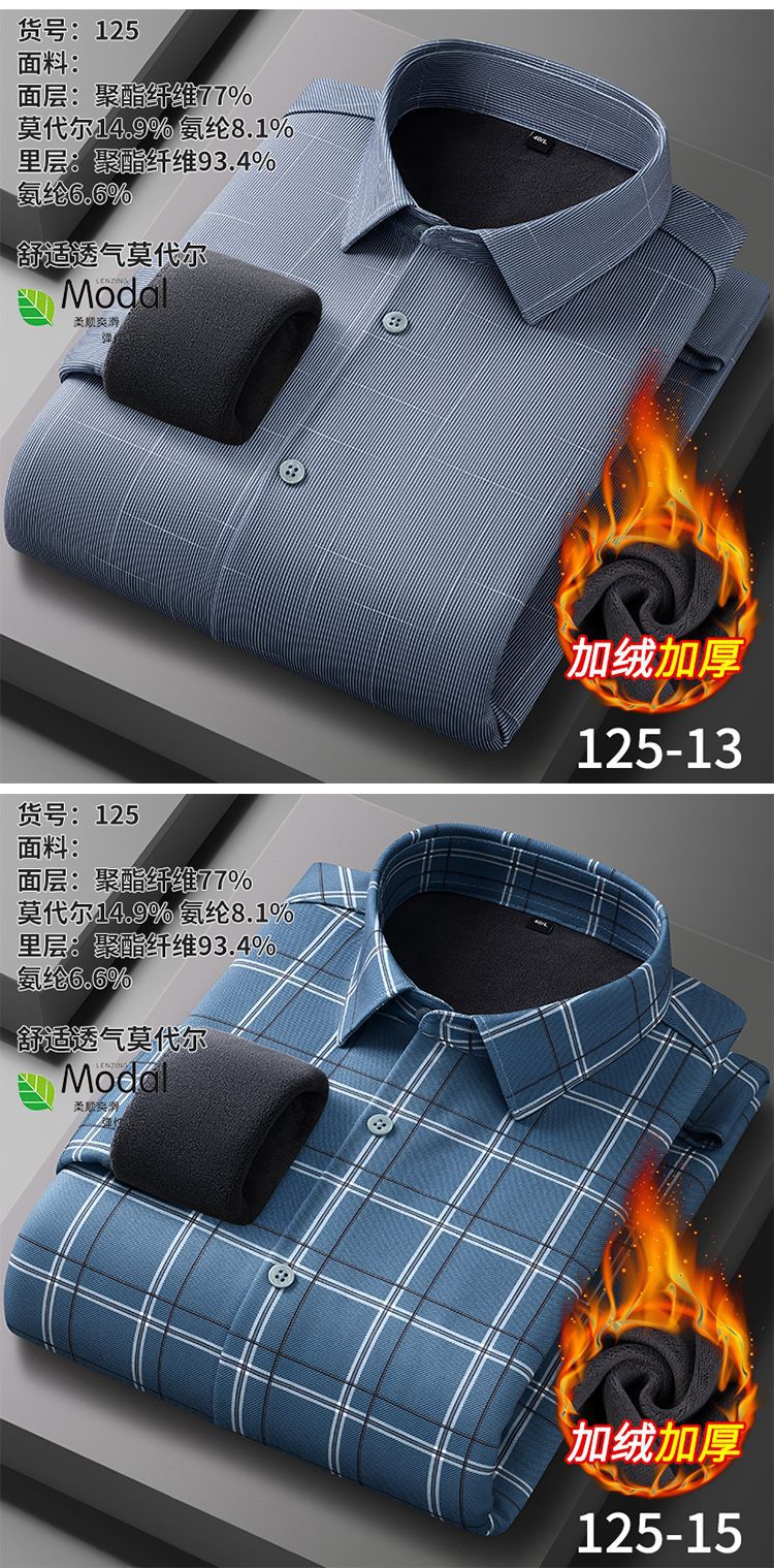 秋冬新款莫代尔男士保暖衬衫加绒加厚格纹衬衫商务休闲免烫衬衣男