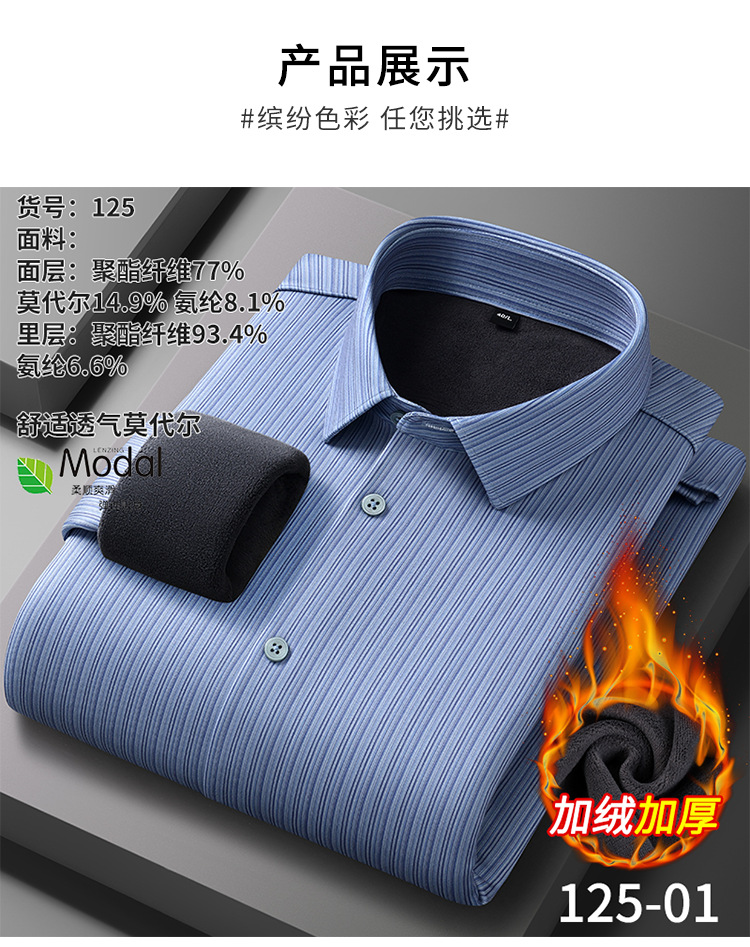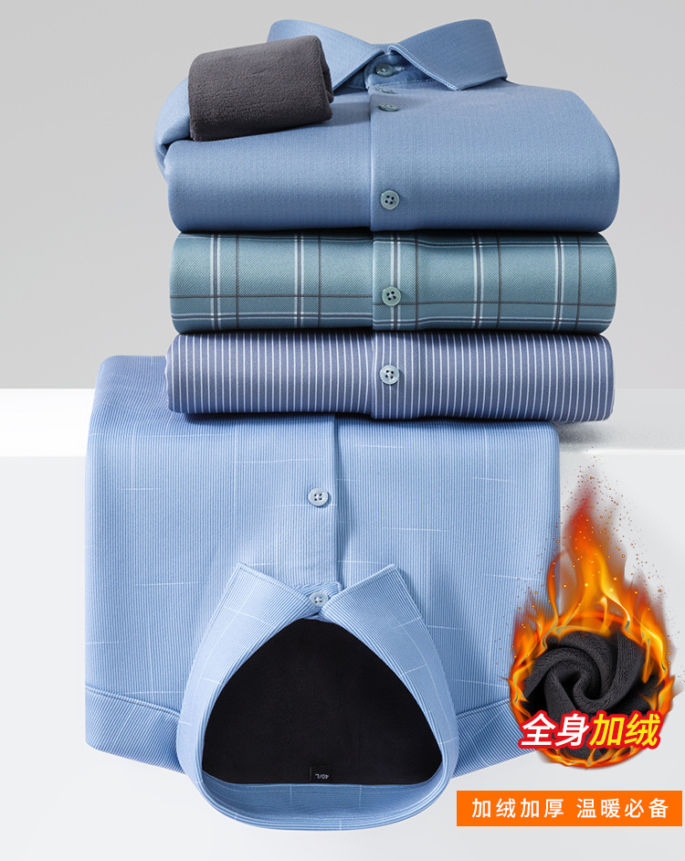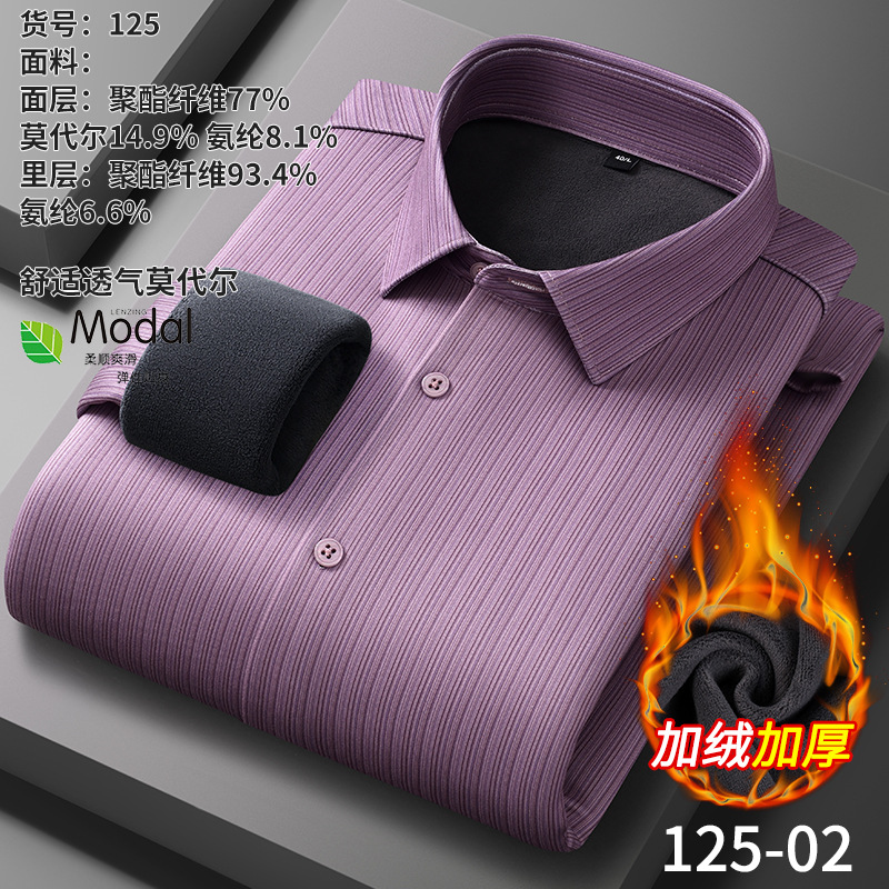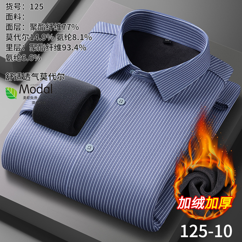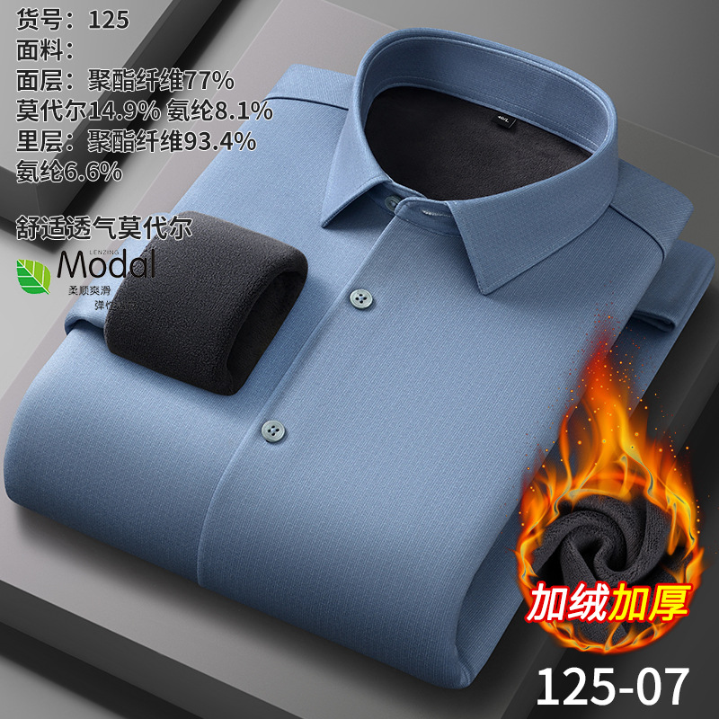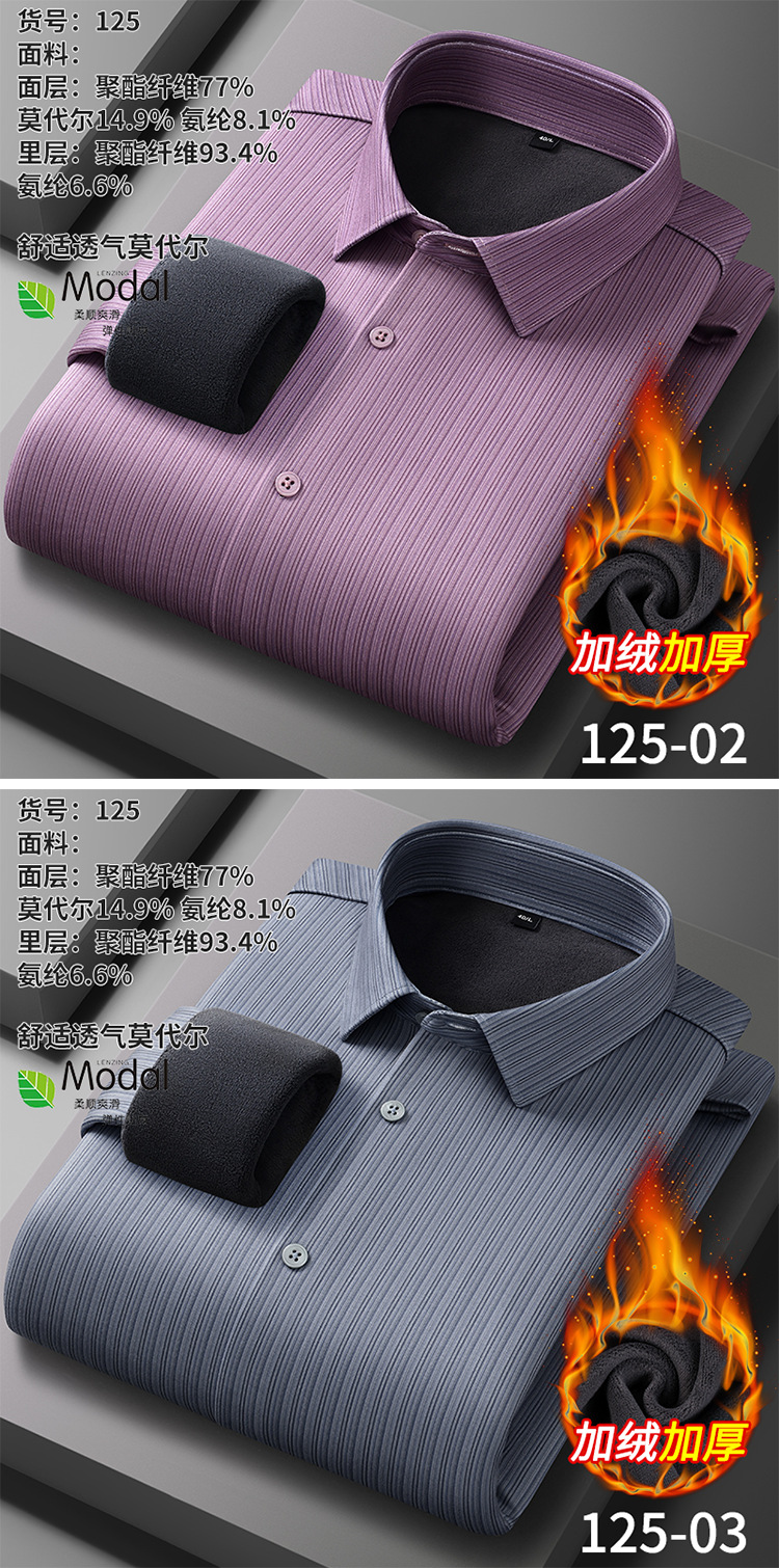秋冬新款莫代尔男士保暖衬衫加绒加厚格纹衬衫商务休闲免烫衬衣男
