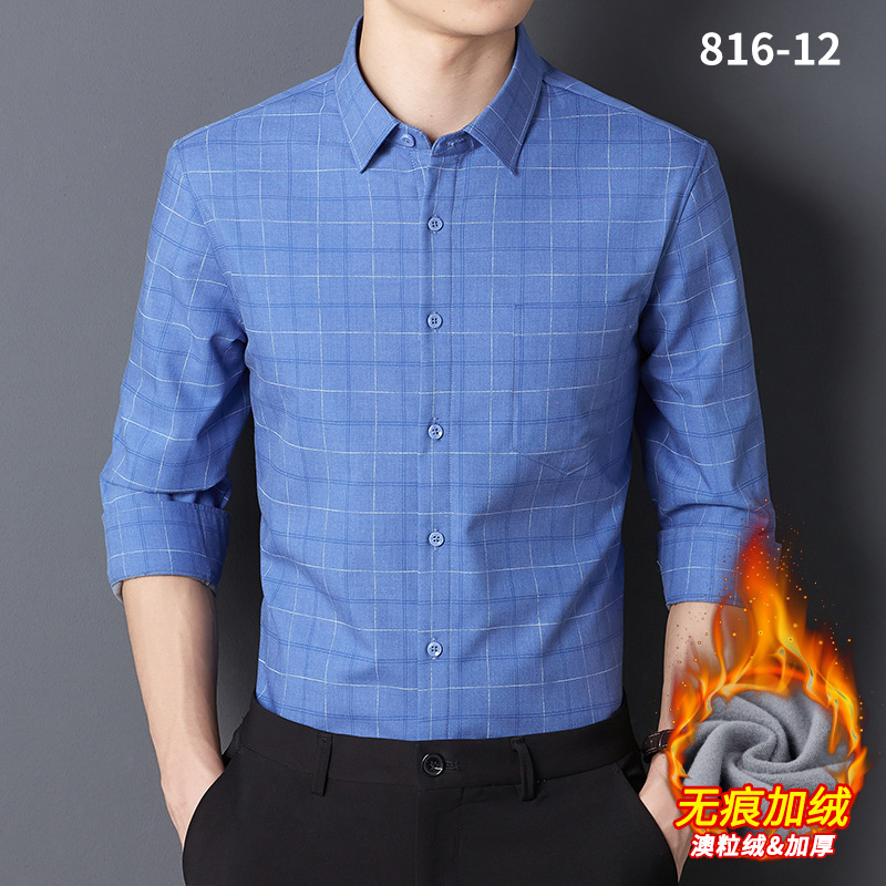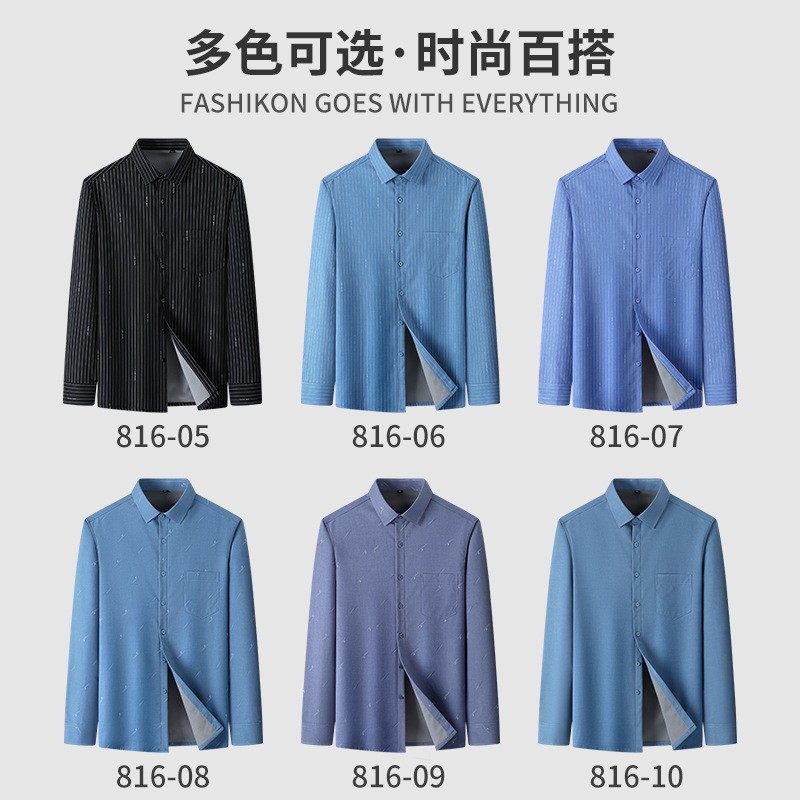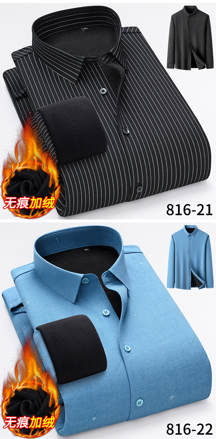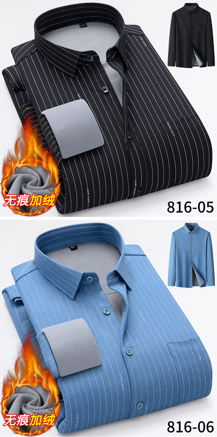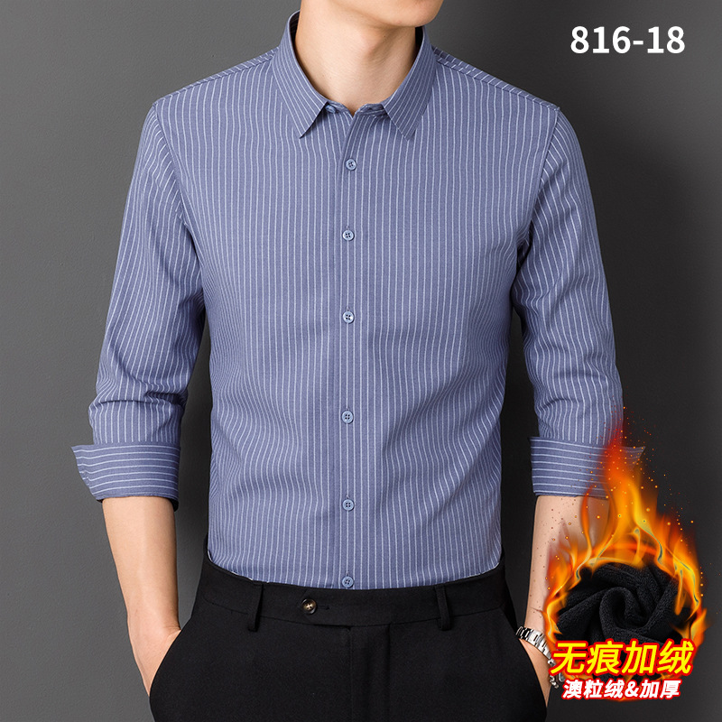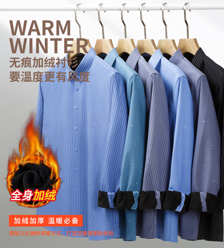 秋冬轻奢级男士新款无痕一体绒保暖衬衫高级感商务澳利绒条纹衬衣