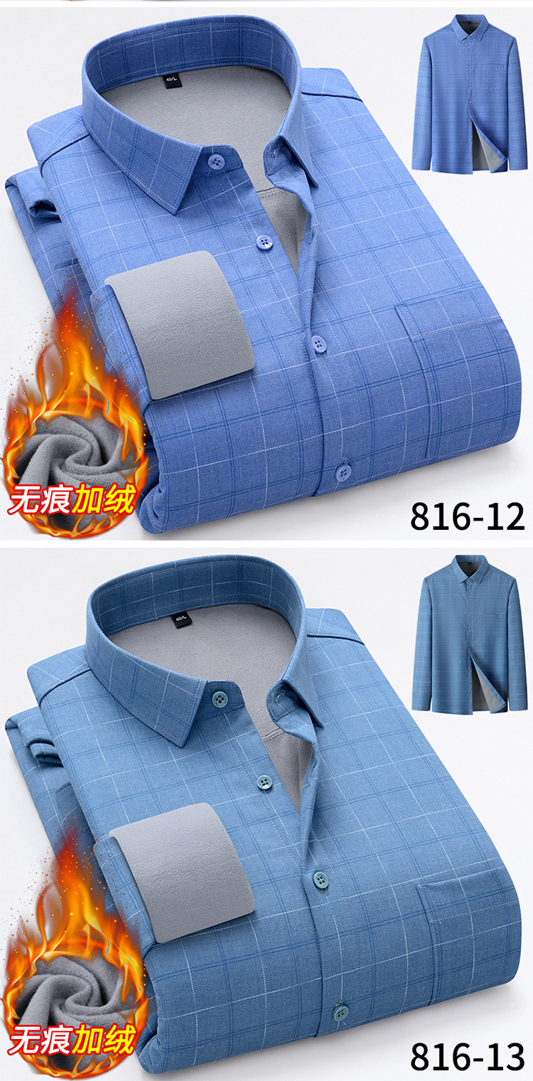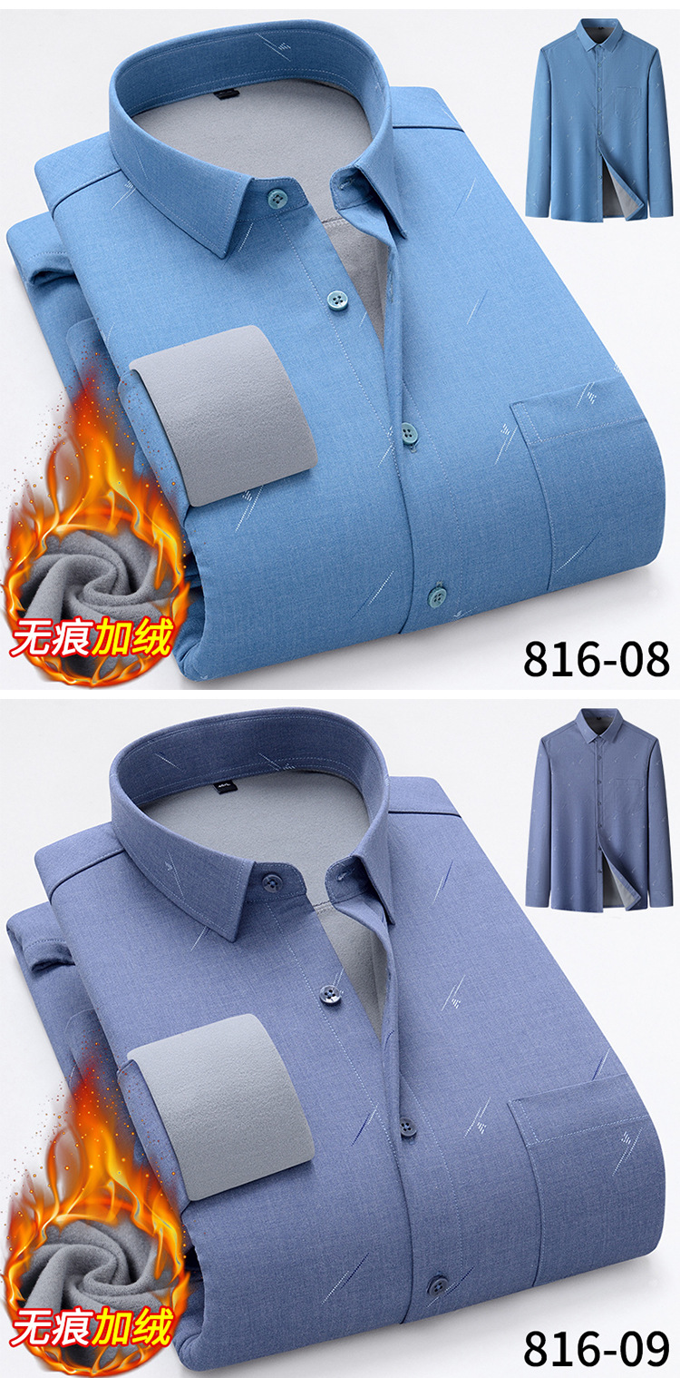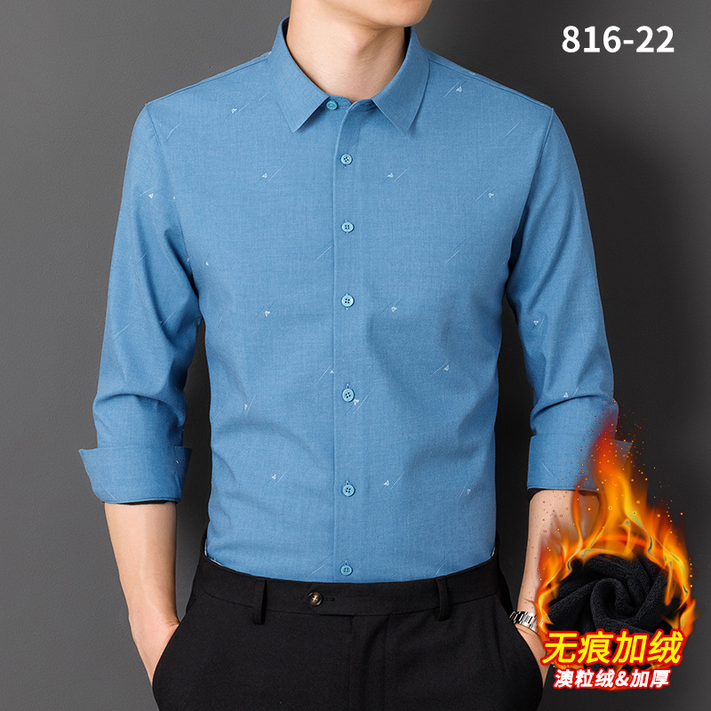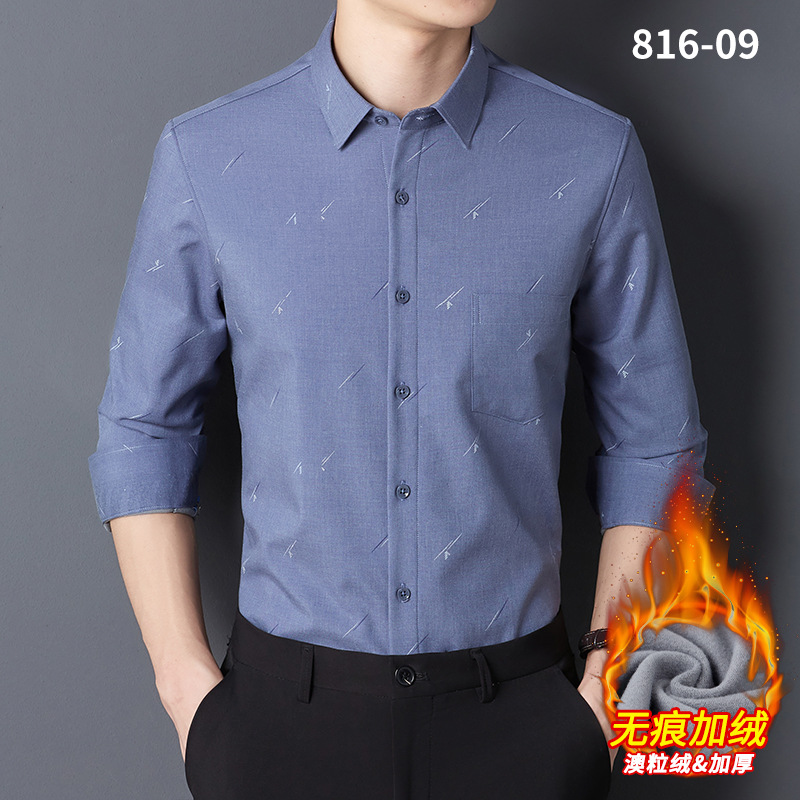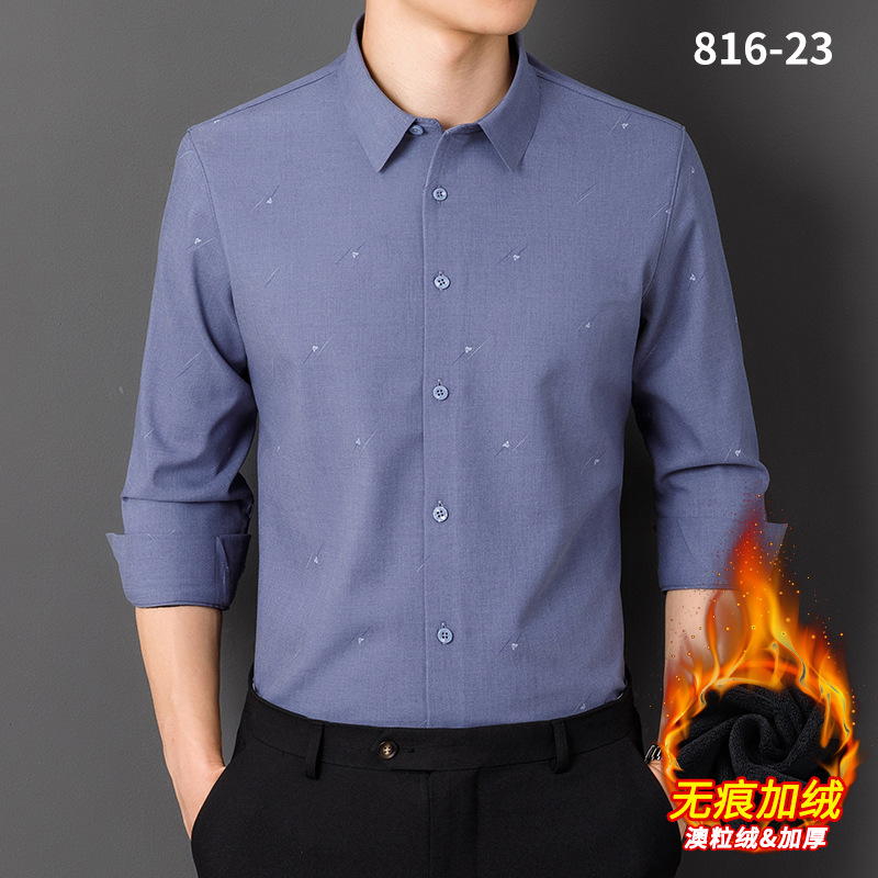 秋冬轻奢级男士新款无痕一体绒保暖衬衫高级感商务澳利绒条纹衬衣