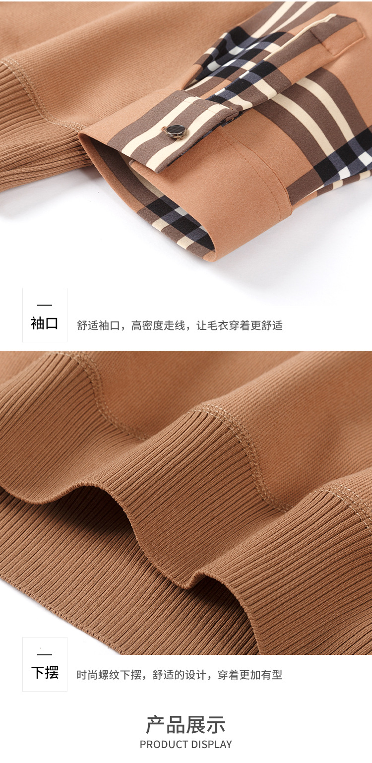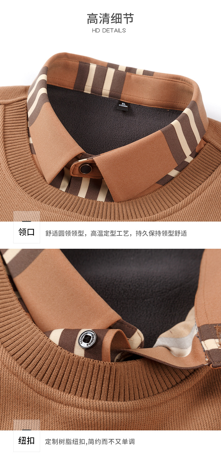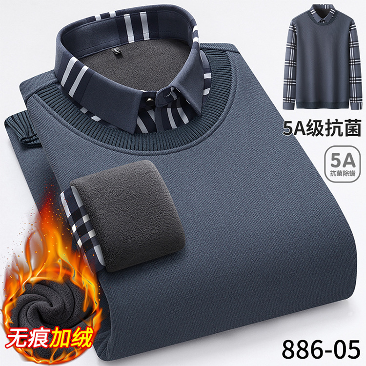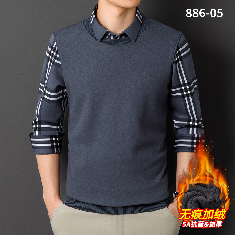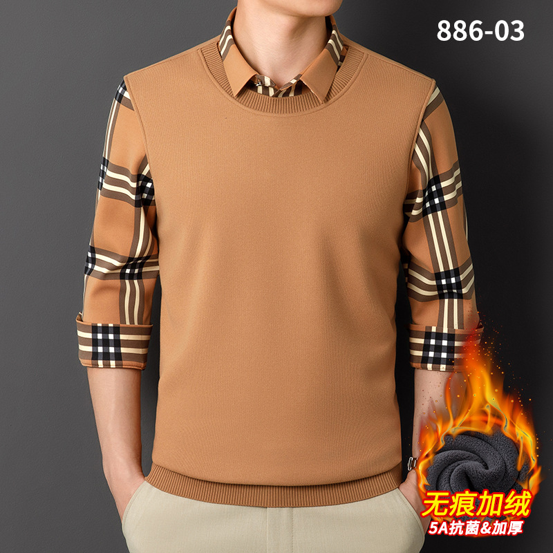 秋冬季男士新款保暖假两件毛衣衬衫领中老年时尚休闲针织打底上衣