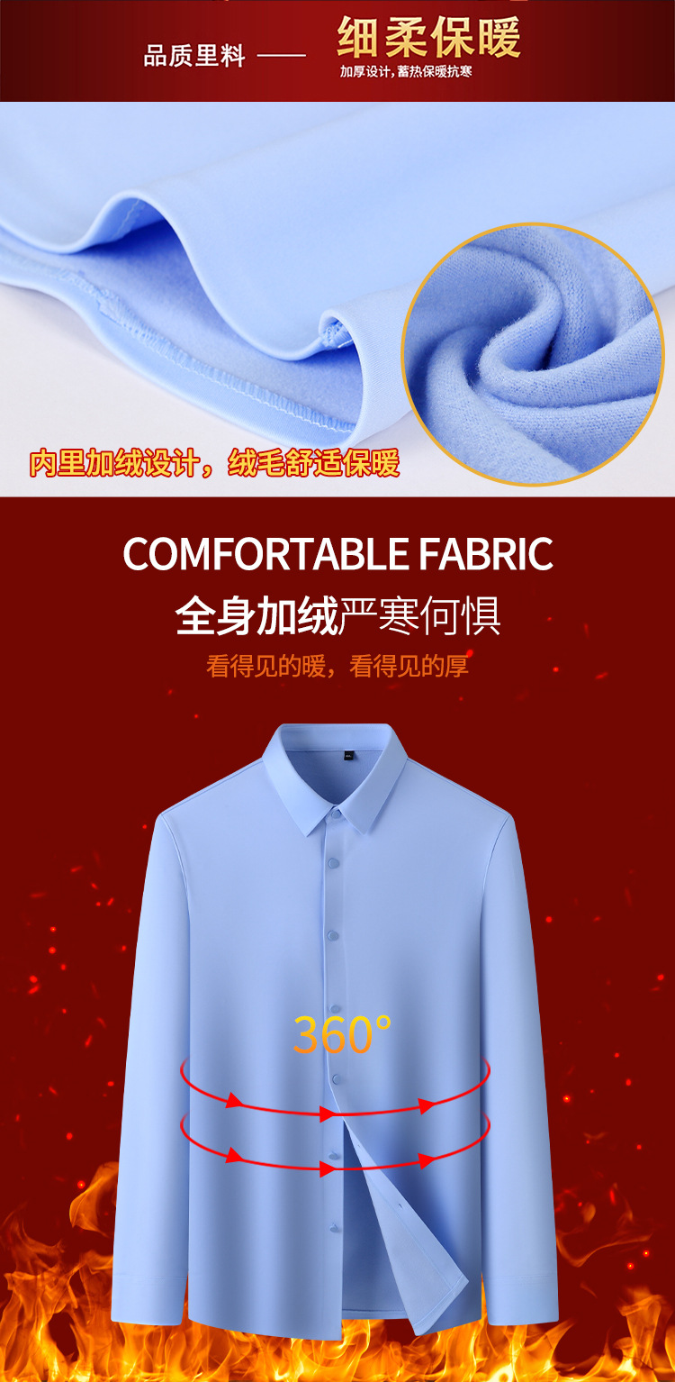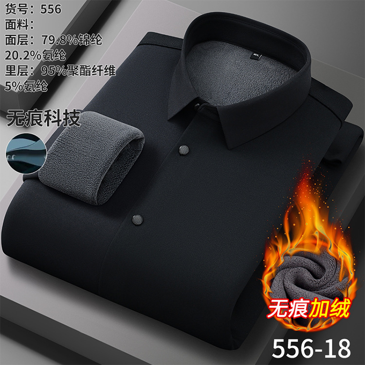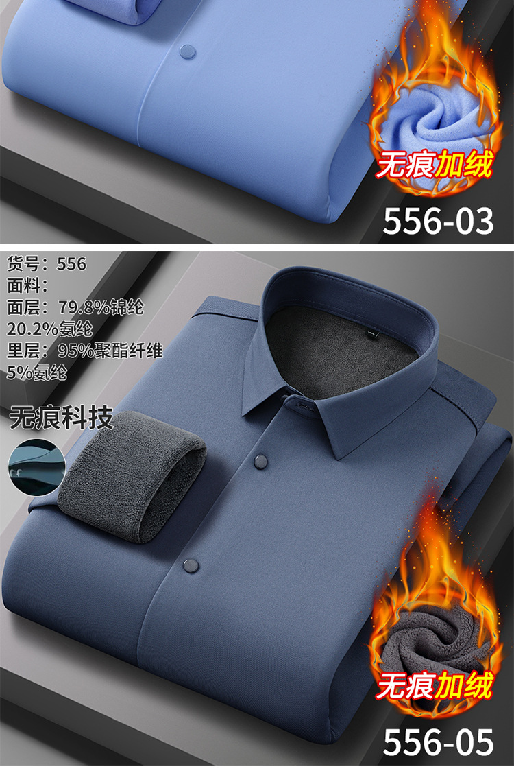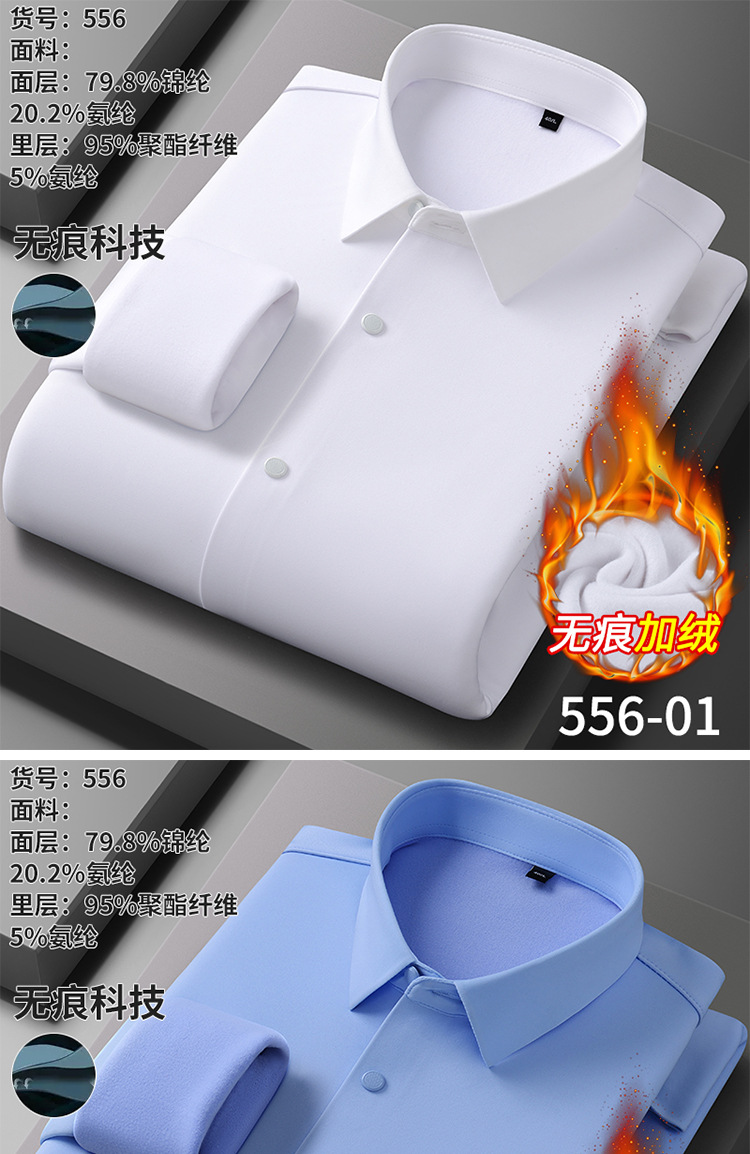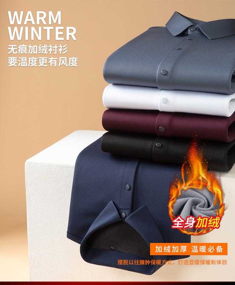 新款锦氨纶无痕免烫保暖衬衫一体绒商务休闲免烫衬衣加绒加厚男装