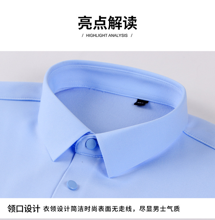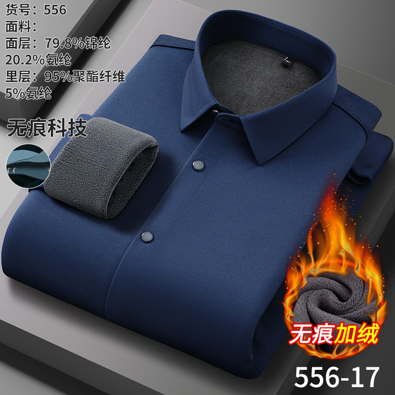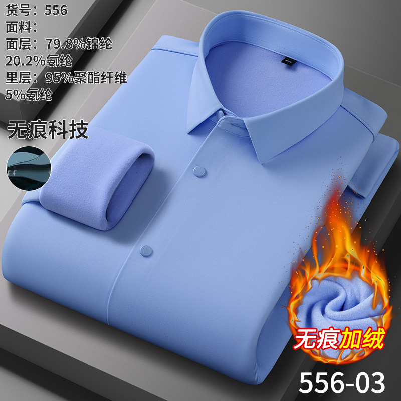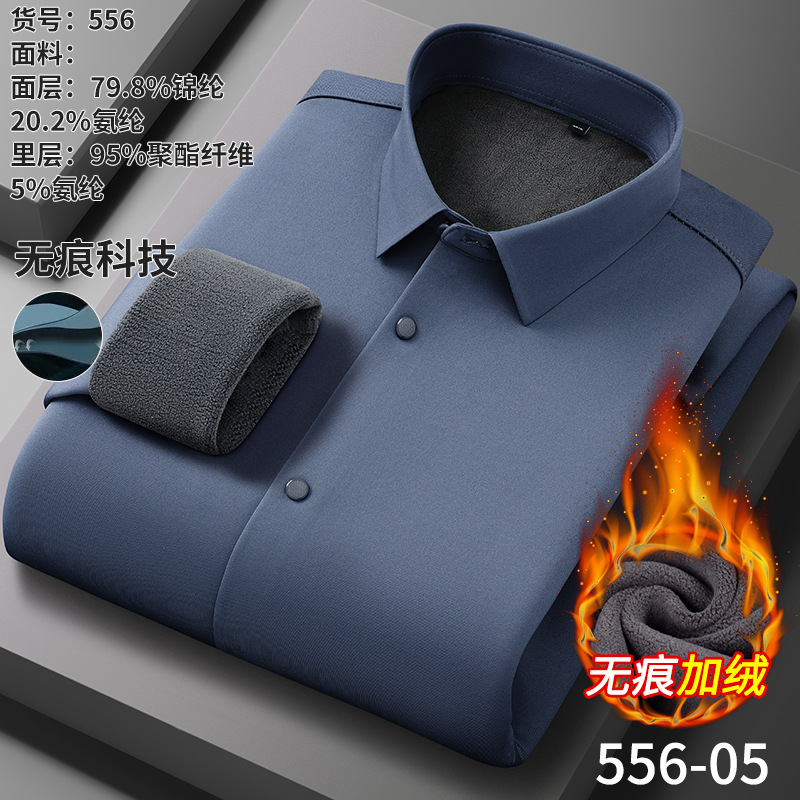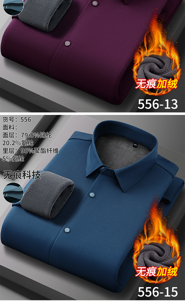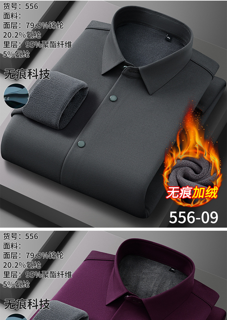 新款锦氨纶无痕免烫保暖衬衫一体绒商务休闲免烫衬衣加绒加厚男装
