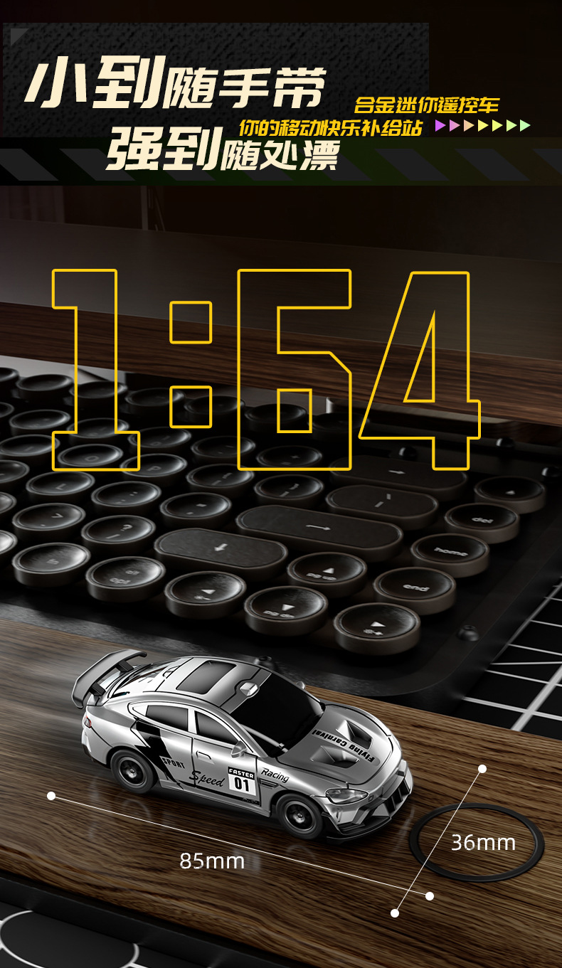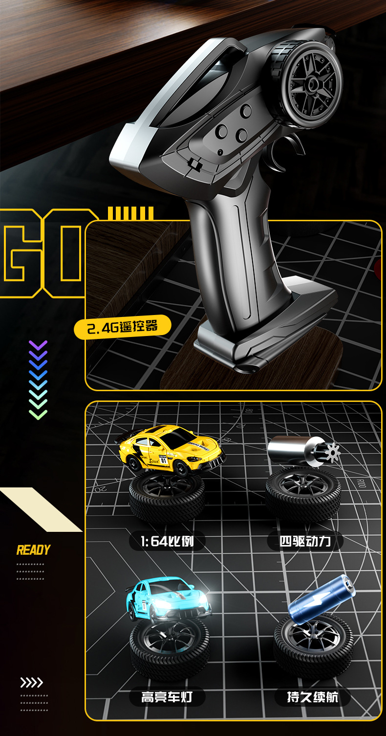 跨境新品1:64四驱遥控漂移车RC桌面迷你赛车2.4G仿真玩具模型车