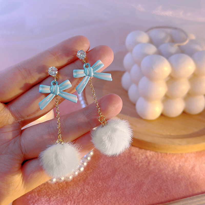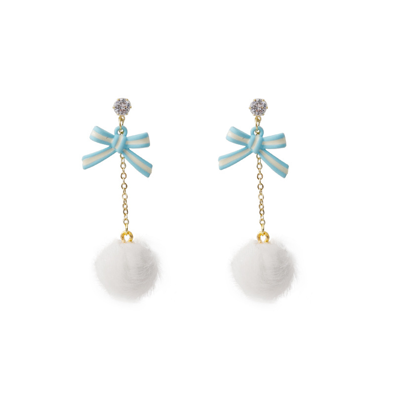 银针跨境彩色卡通小熊毛球耳环 简约可爱小熊云朵不对称创意耳饰