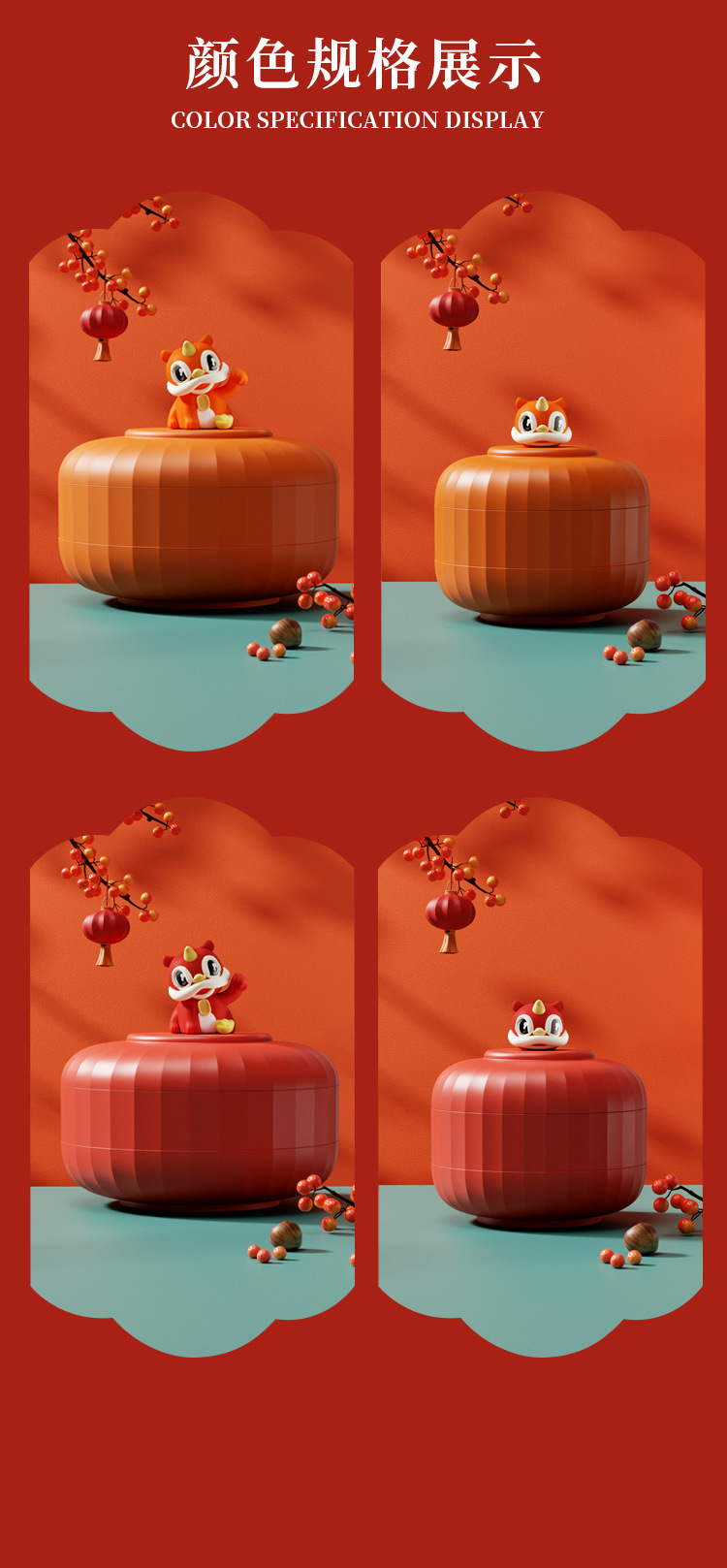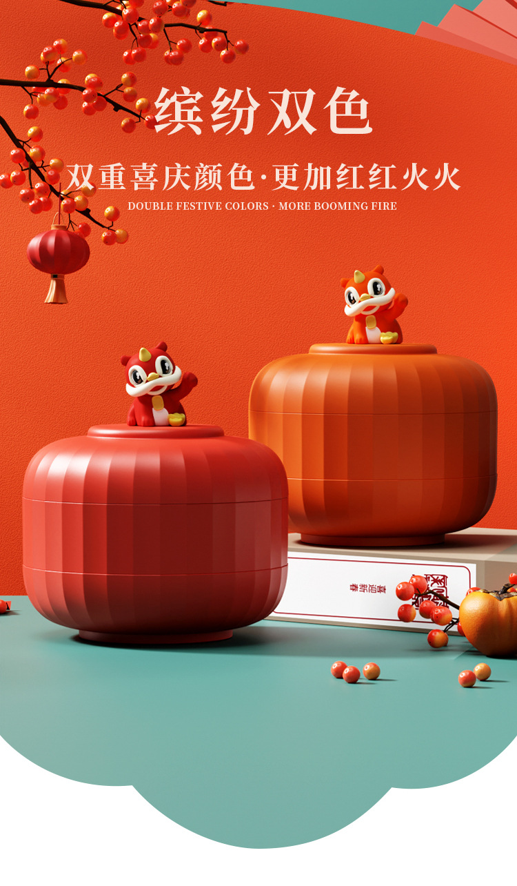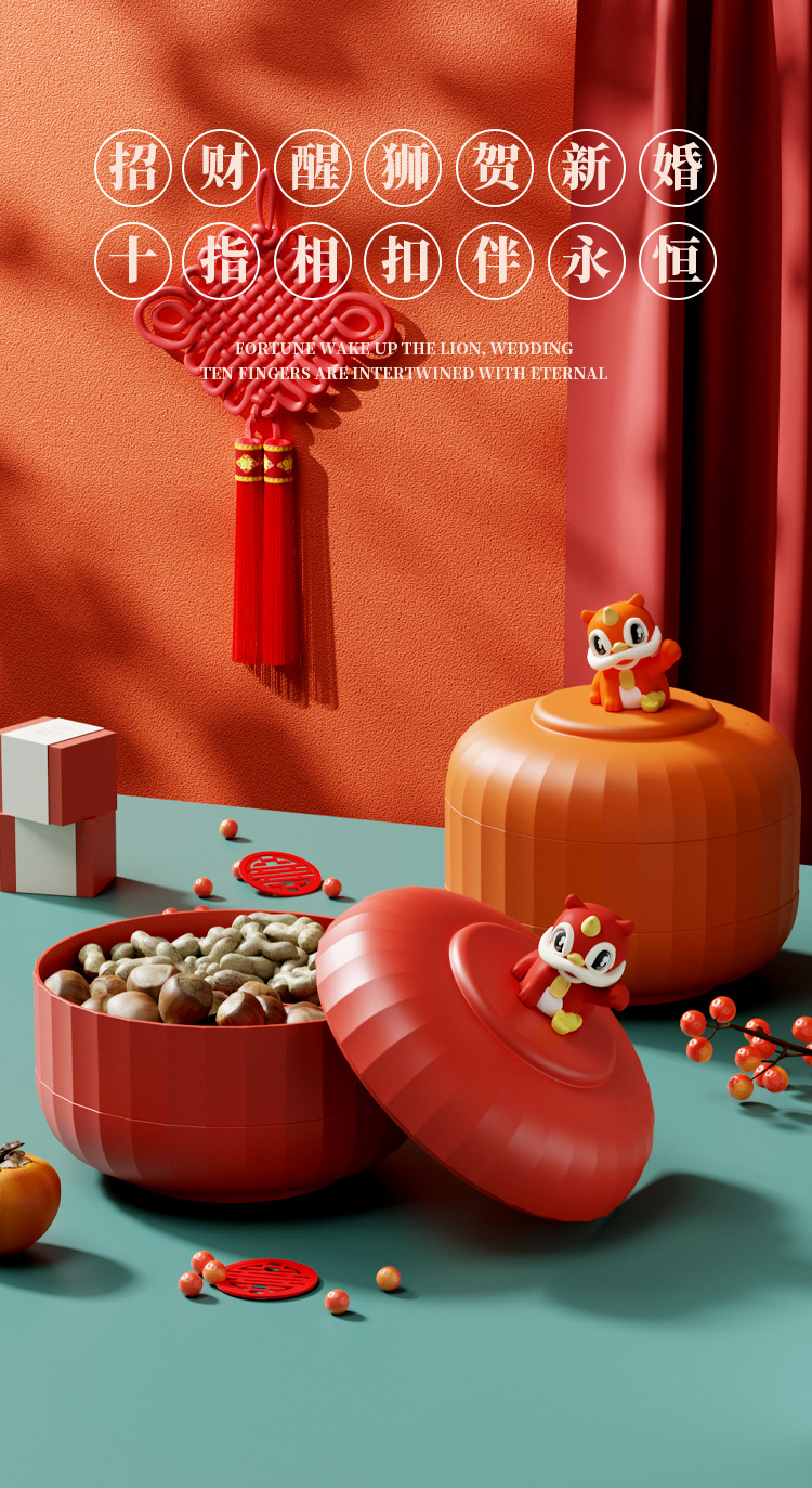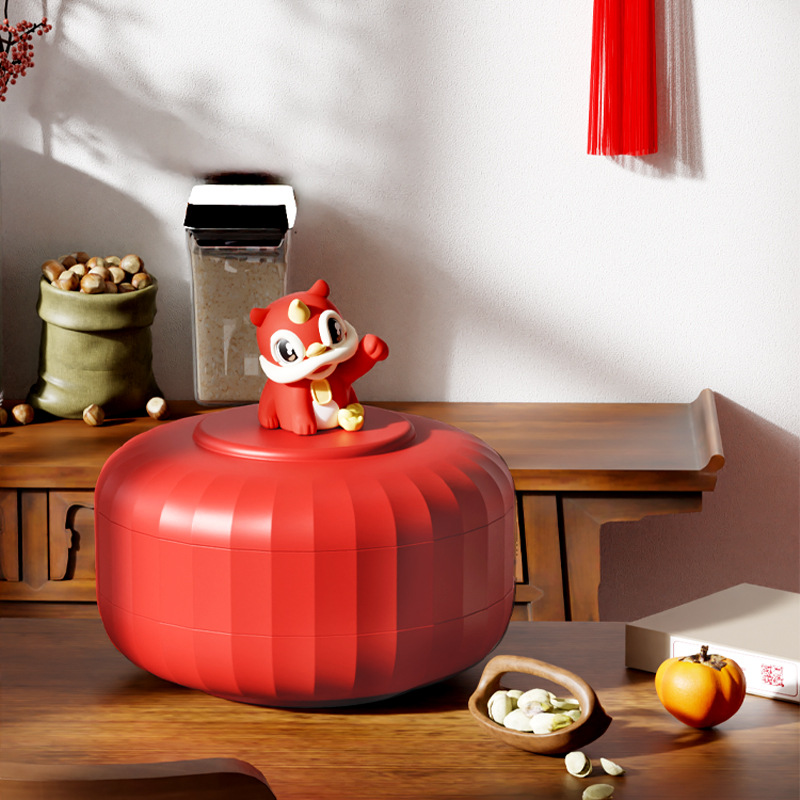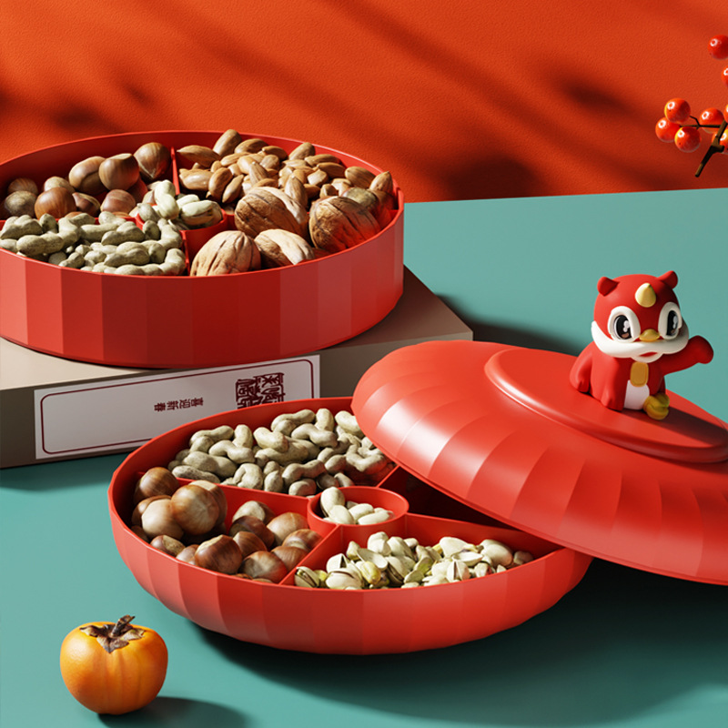 源头工厂醒狮新年干果盘多层喜庆糖果盘客厅高颜值坚果零食干果盒