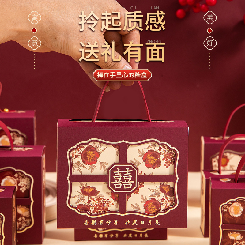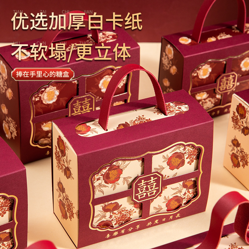 结婚喜糖盒子2024婚礼糖果礼盒订婚手提糖袋空盒折叠必备礼品盒